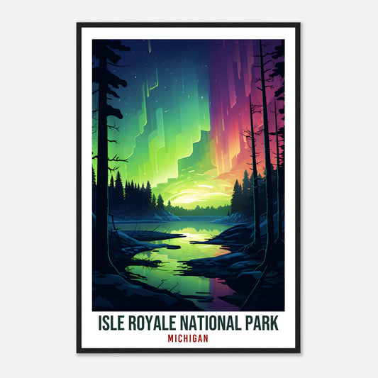 Isle Royale National Park Travel Print Michigan Northern Lights Wall Art Wall Hanging Travel Art Gift Isle Royale Travel Poster Michigan Art
