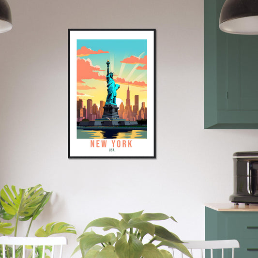 New York Travel Print Wall Art New York Art Gift New York Wall Hanging New York Home Decor New York State Art Print Travel Poster USA Statue