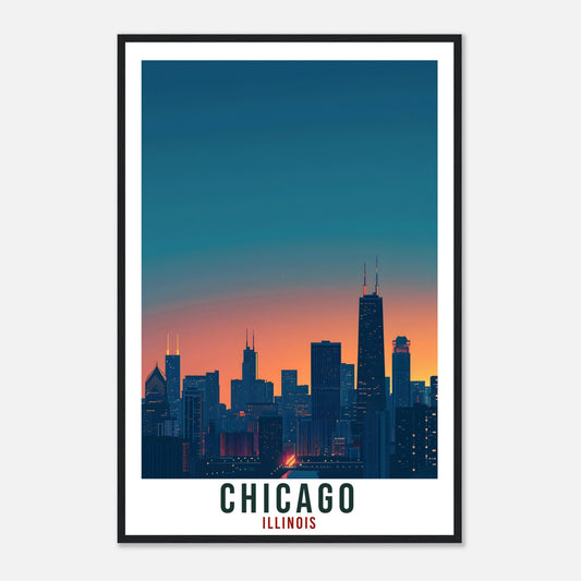 Chicago Travel Print Illinois Home Decoration USA City Wall Art Gift Wall Hanging Art Lover Illinois Artwork Chicago Skyline Travel Poster