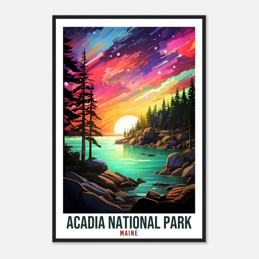 Acadia National Park Travel Print Maine Northern Lights Wall Art Wall Hanging Travel Art Gift Acadia Maine Travel Poster Artwork Art Lover