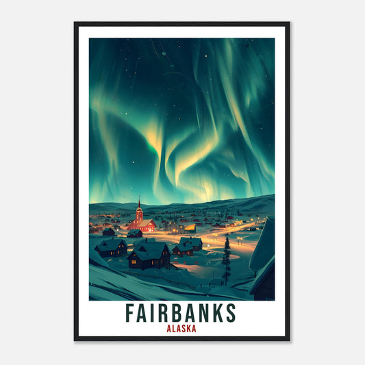 Fairbanks Travel Print Alaska Northern Lights Wall Art Wall Hanging Travel Gift Fairbanks Travel Poster Alaska Landscape Artwork Art Lover