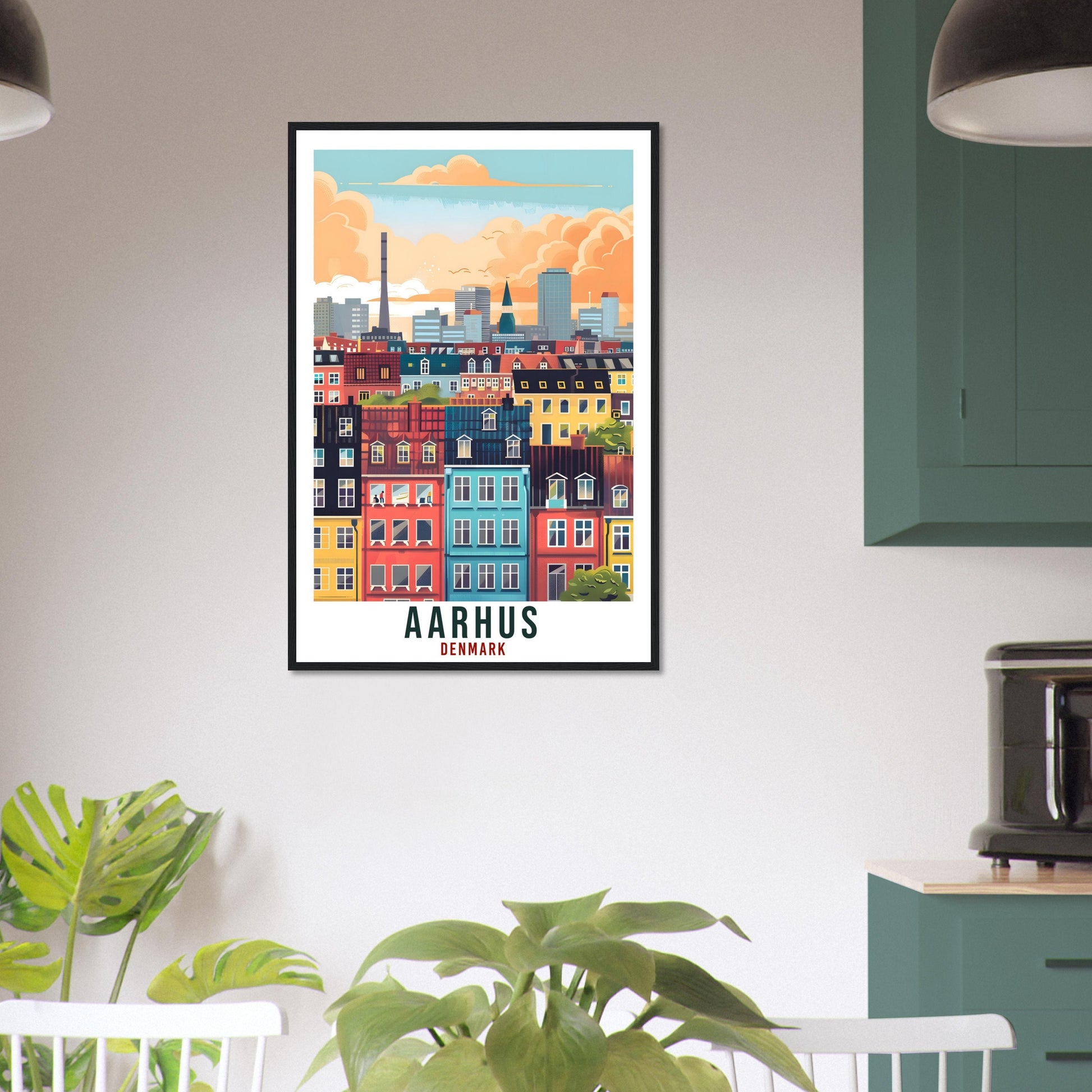 Transport yourself back to Aarhus, Denmark. Whether you lived there, visited there or are from there, travel back with this Aarhus travel poster. Visit the sounds, smells, tastes, colors and culture every time you look at your new travel print.