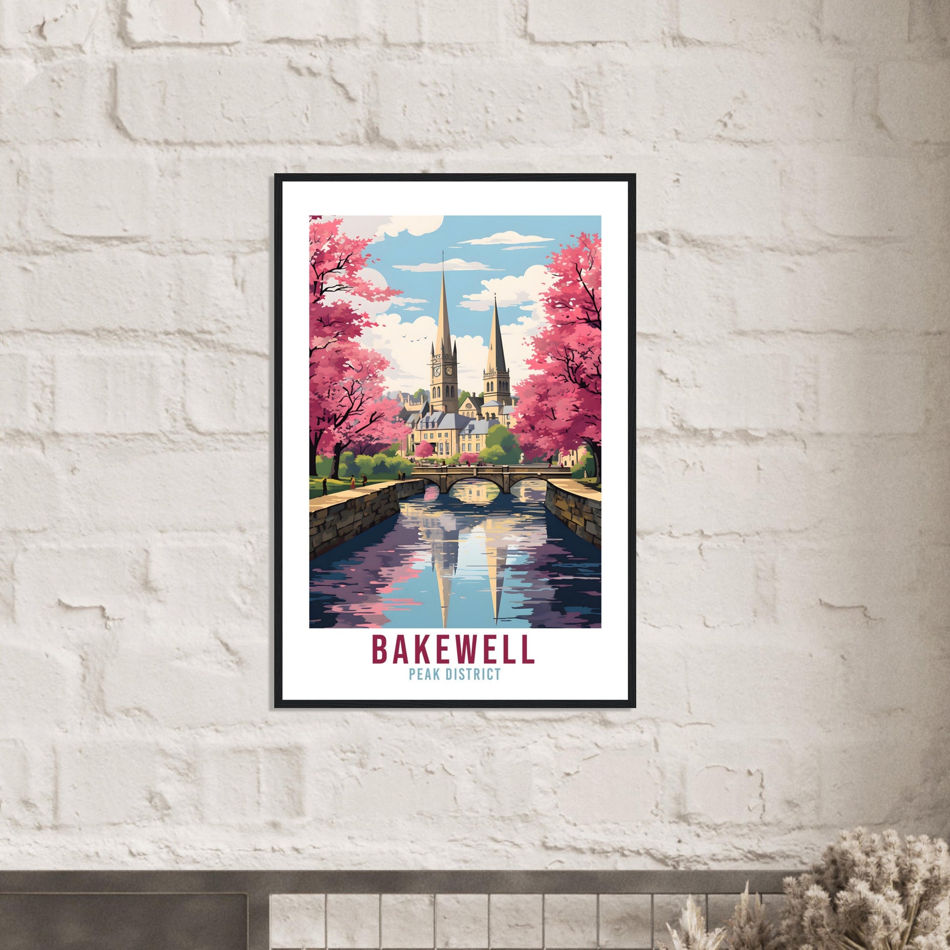 Transport yourself back to Bakewell, Derbyshire. Whether you lived there, visited there or are from there, travel back with this Bakewell travel poster. Visit the sounds, smells, tastes, colors and culture every time you look at your new travel print.