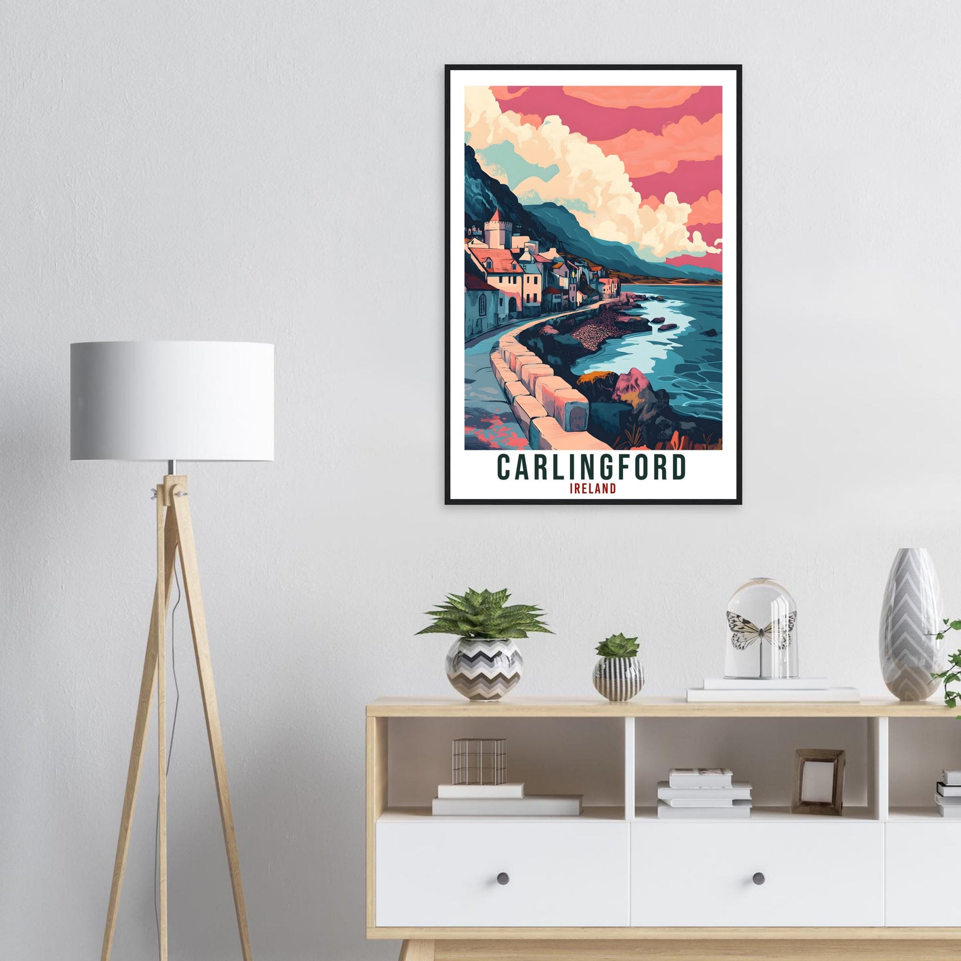 Transport yourself back to Carlingford, Ireland. Whether you lived there, visited there or are from there, travel back with this Carlingford travel poster. Visit the sounds, smells, tastes, colors and culture every time you look at your new travel print. Each design is an imaginative recreation of the area to illicit memories of travelling there.