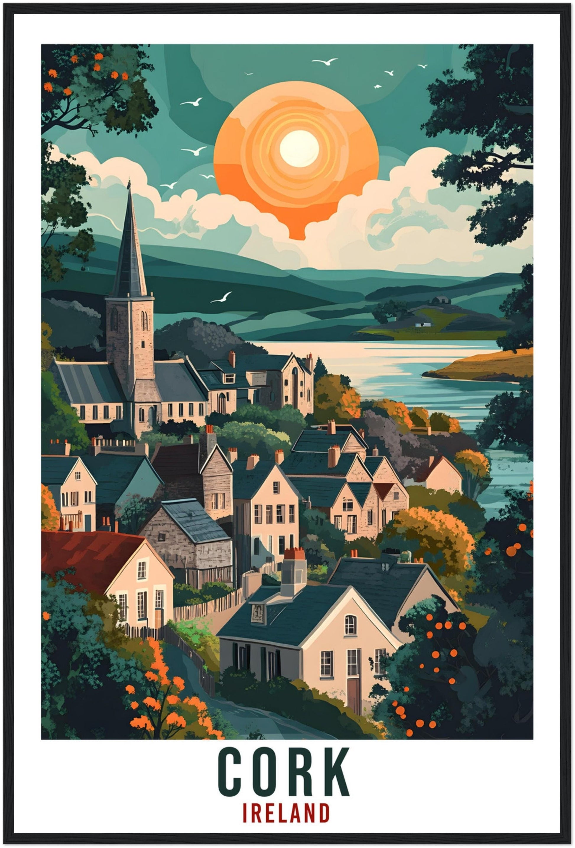 Transport yourself back to Cork, Ireland. Whether you lived there, visited there or are from there, travel back with this Cork travel poster. Visit the sounds, smells, tastes, colors and culture every time you look at your new travel print. Each design is an imaginative recreation of the area to illicit memories of travelling there.