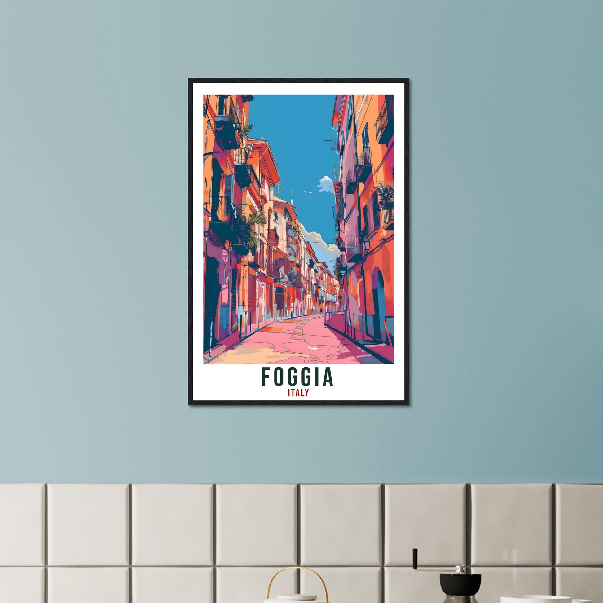 Transport yourself back to Foggia, Italy. Whether you lived there, visited there or are from there, travel back with this Foggia travel poster. Visit the sounds, smells, tastes, colors and culture every time you look at your new travel print.