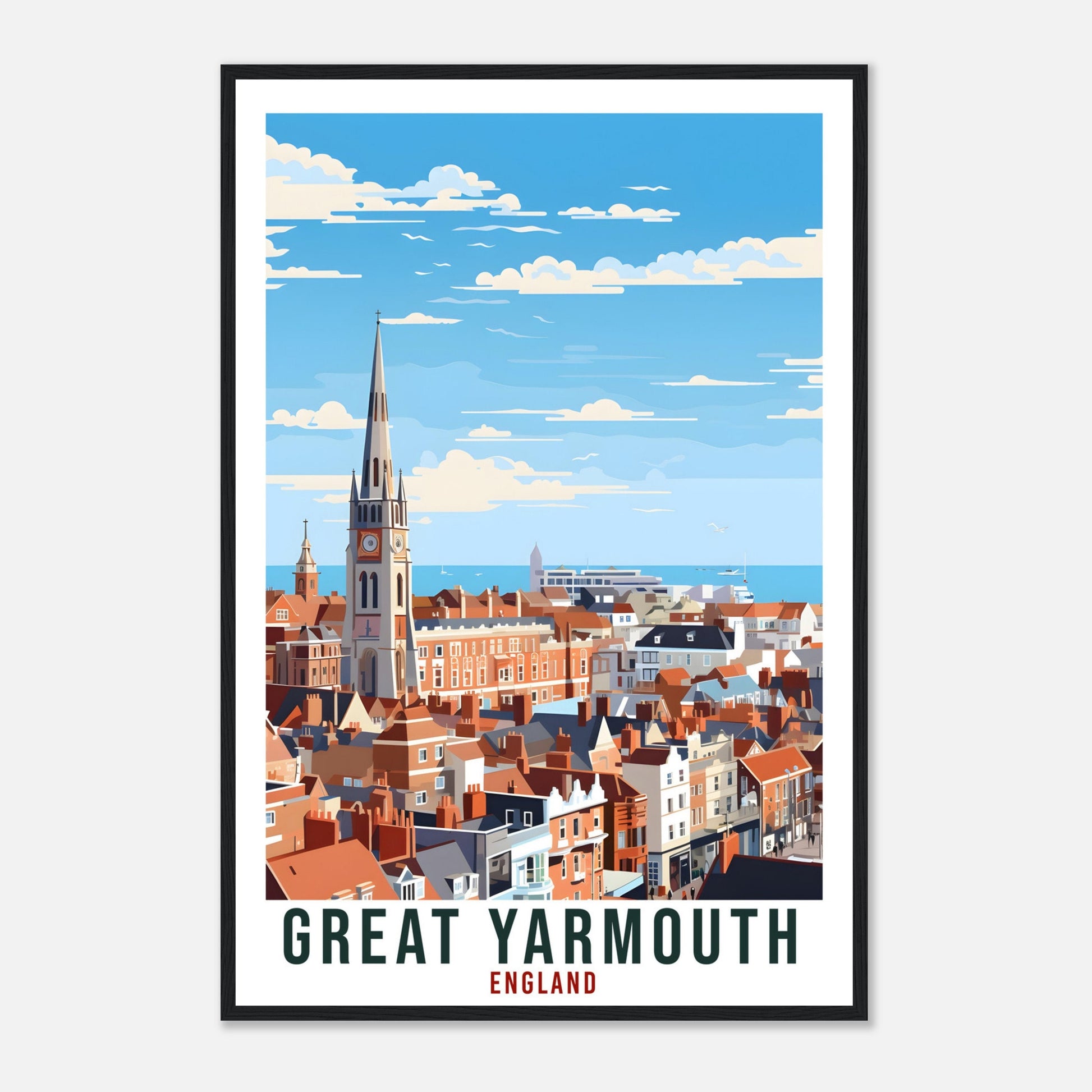 Transport yourself back to Great Yarmouth, England, United Kingdom. Whether you lived there, visited there or are from there, travel back with this Great Yarmouth travel poster. Visit the sounds, smells, tastes, colors and culture every time you look at your new travel print.