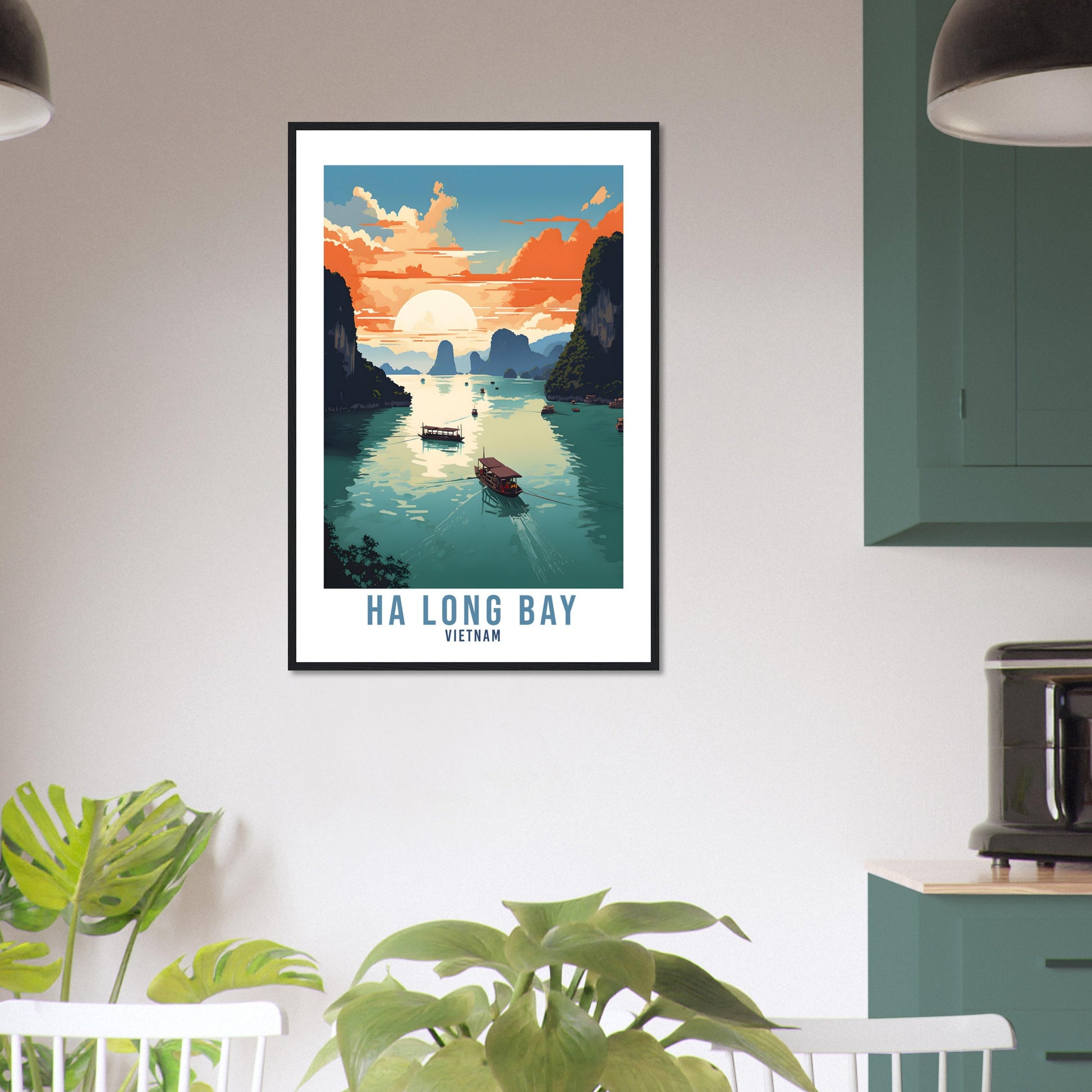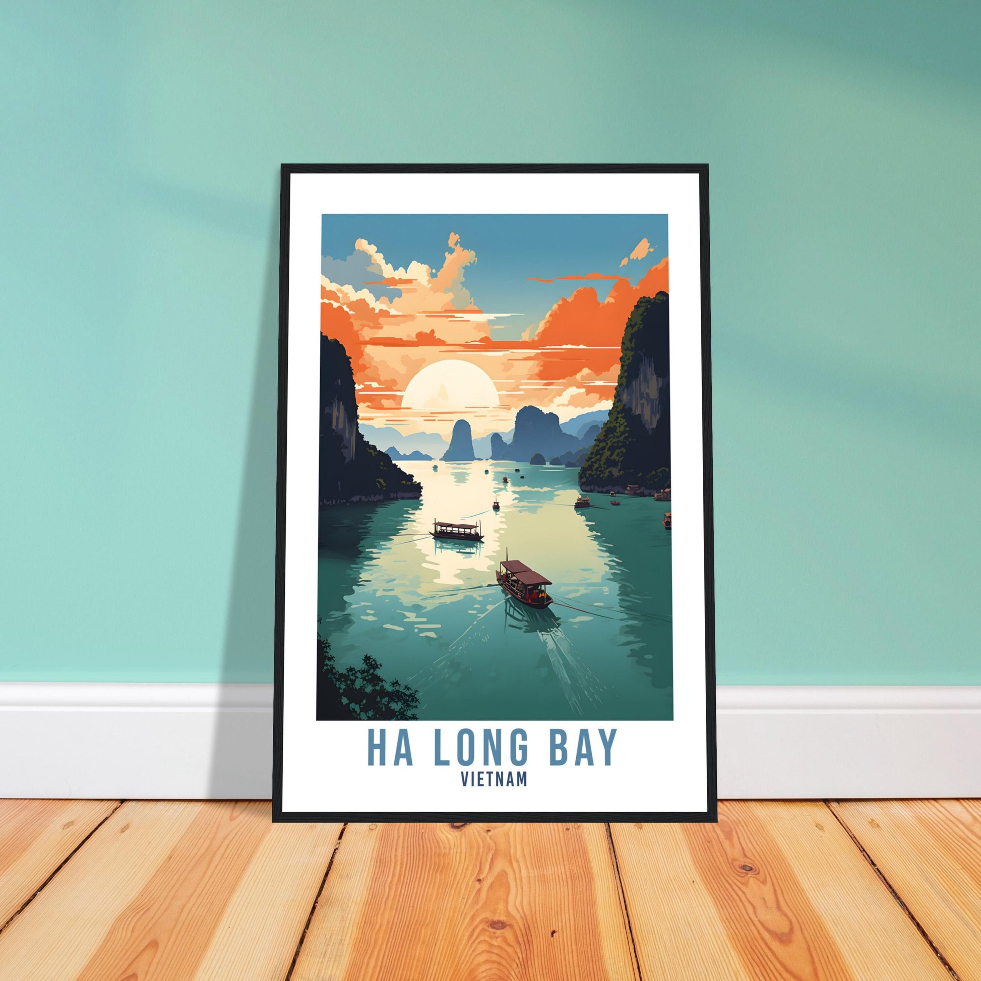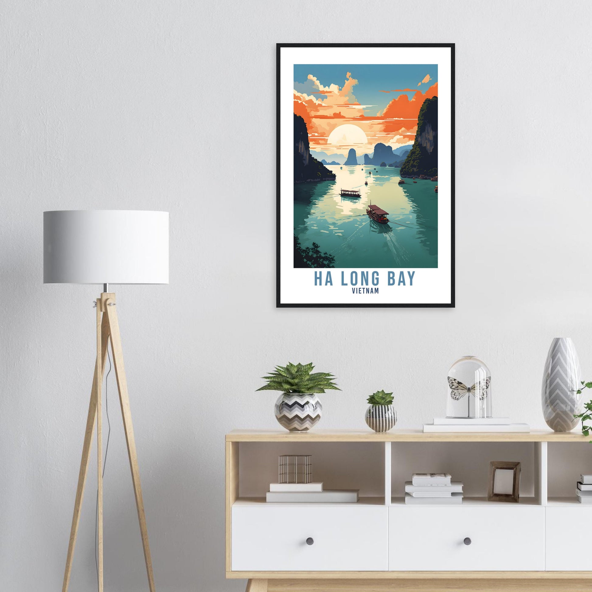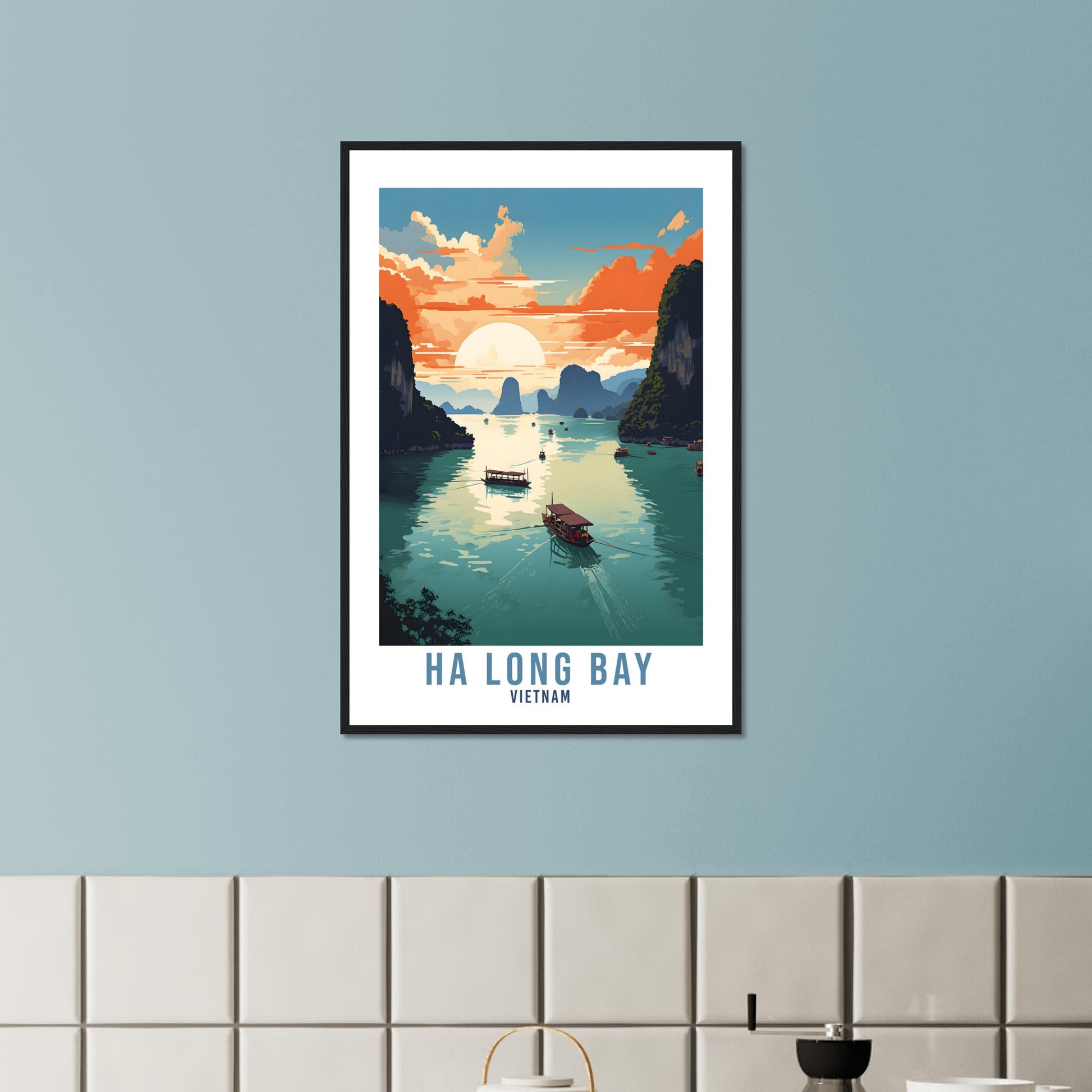 Transport yourself back to Ha Long Bay, Thailand. Whether you lived there, visited there or are from there, travel back with this Ha Long Bay travel poster. Visit the sounds, smells, tastes, colors and culture every time you look at your new travel print.