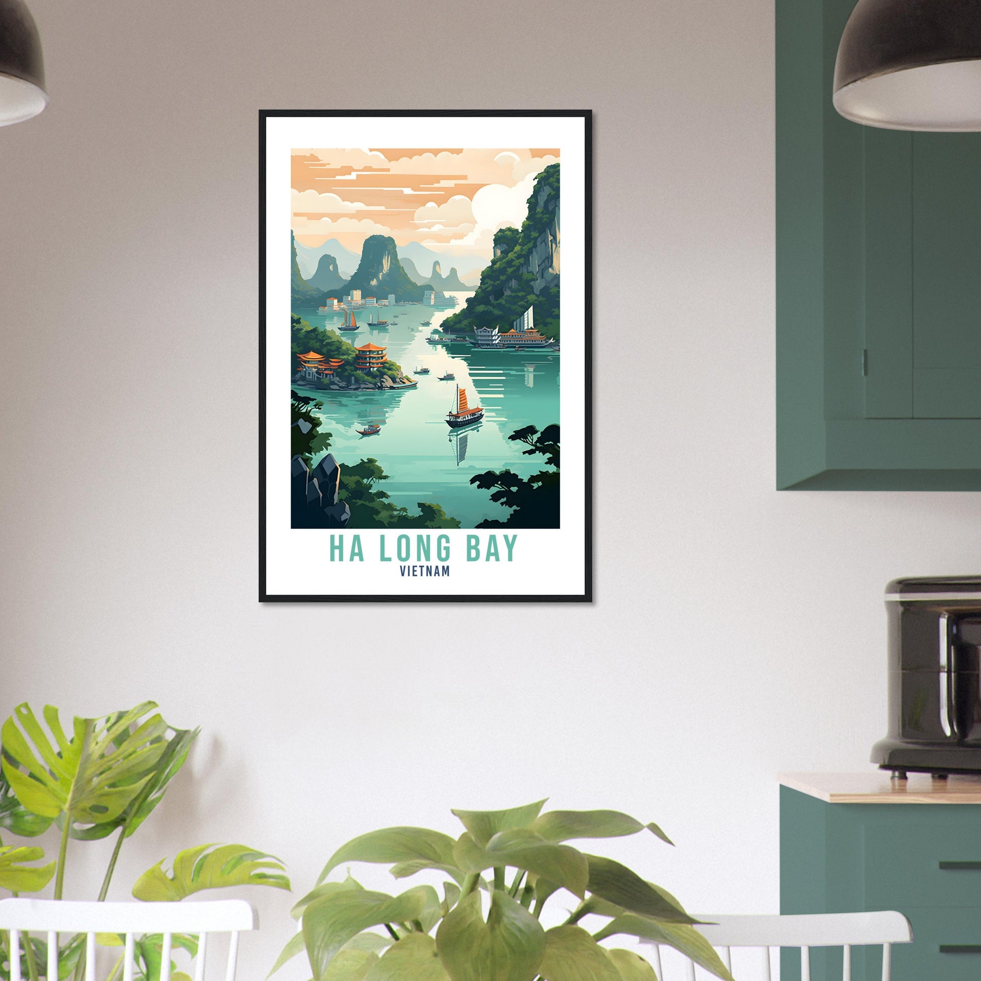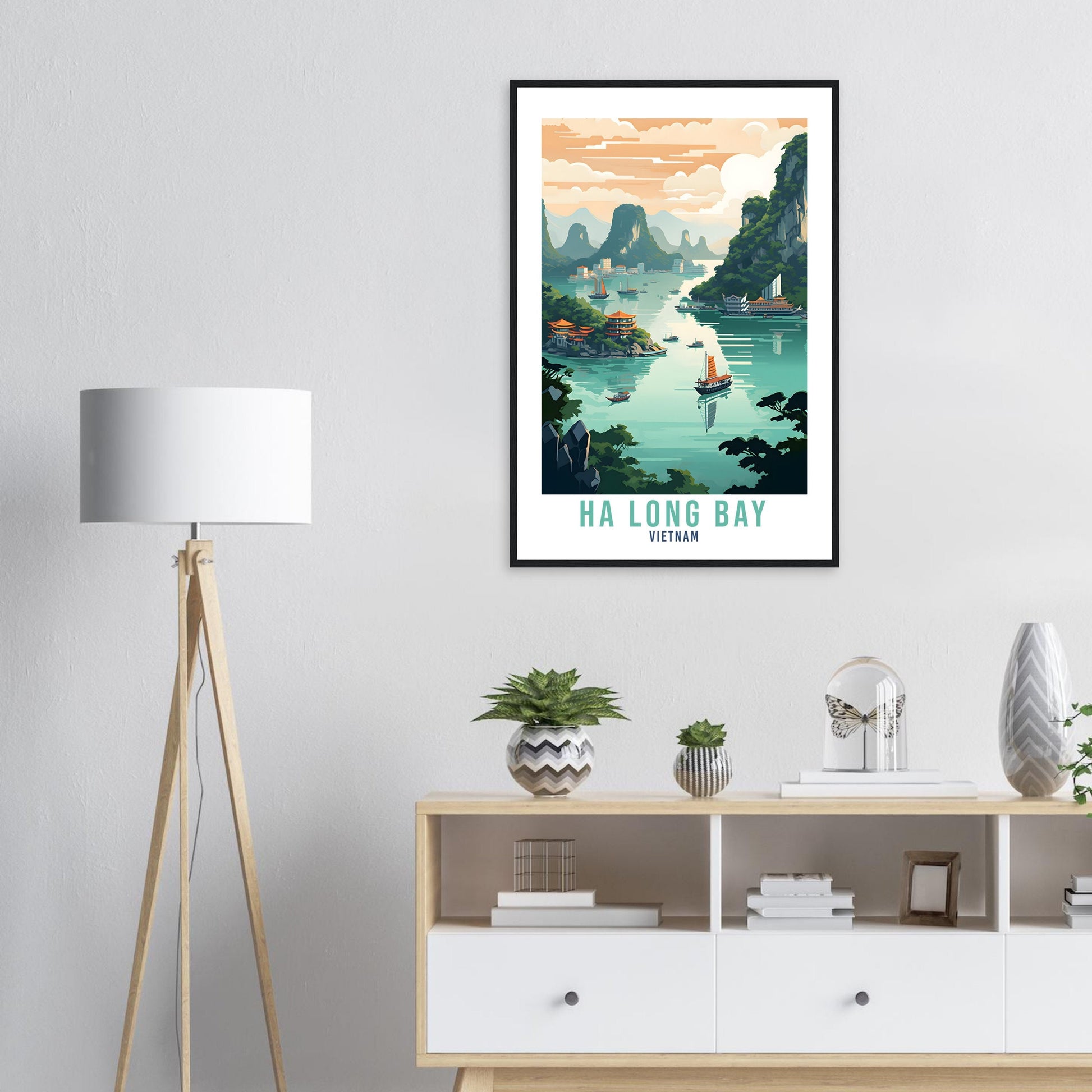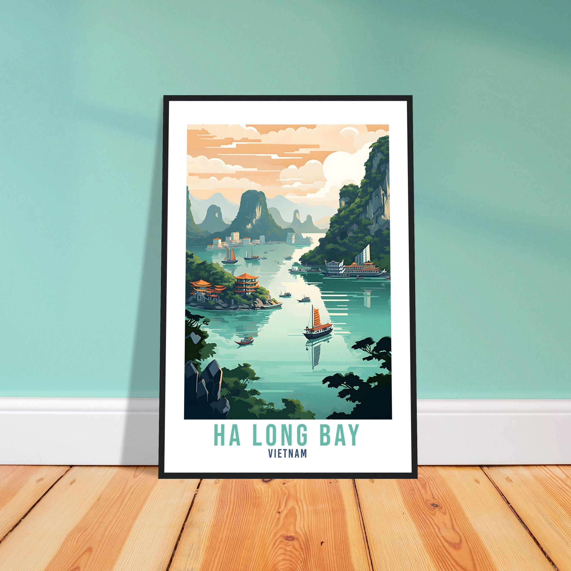 Transport yourself back to Ha Long Bay, Thailand. Whether you lived there, visited there or are from there, travel back with this Ha Long Bay travel poster. Visit the sounds, smells, tastes, colors and culture every time you look at your new travel print.
