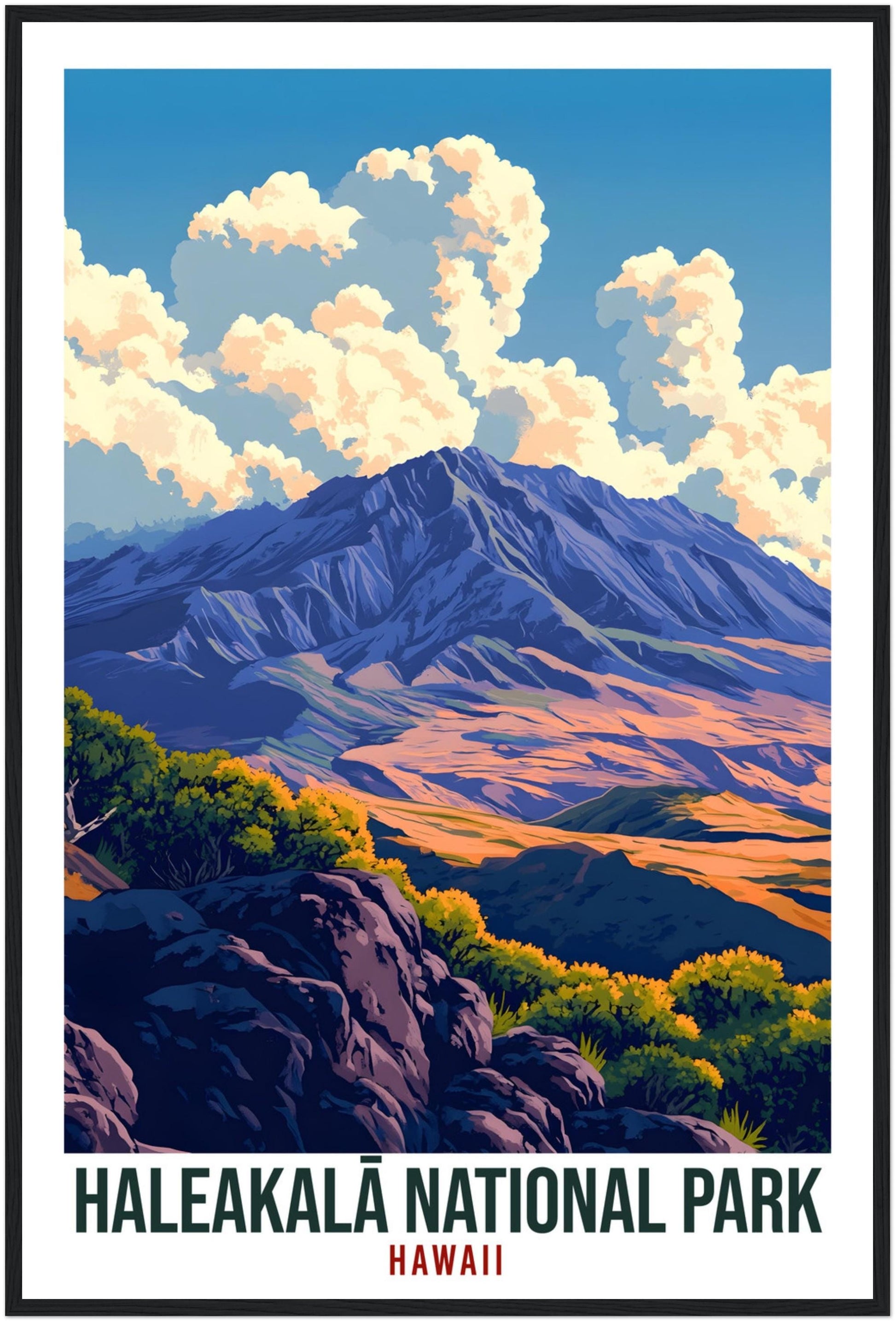 Transport yourself back to Haleakala National Park, Hawaii, USA. Whether you lived there, visited there or are from there, travel back with this Haleakala National Park travel poster. Visit the sounds, smells, tastes, colors and culture every time you look at your new travel print. Each design is an imaginative recreation of the area to illicit memories of travelling there.