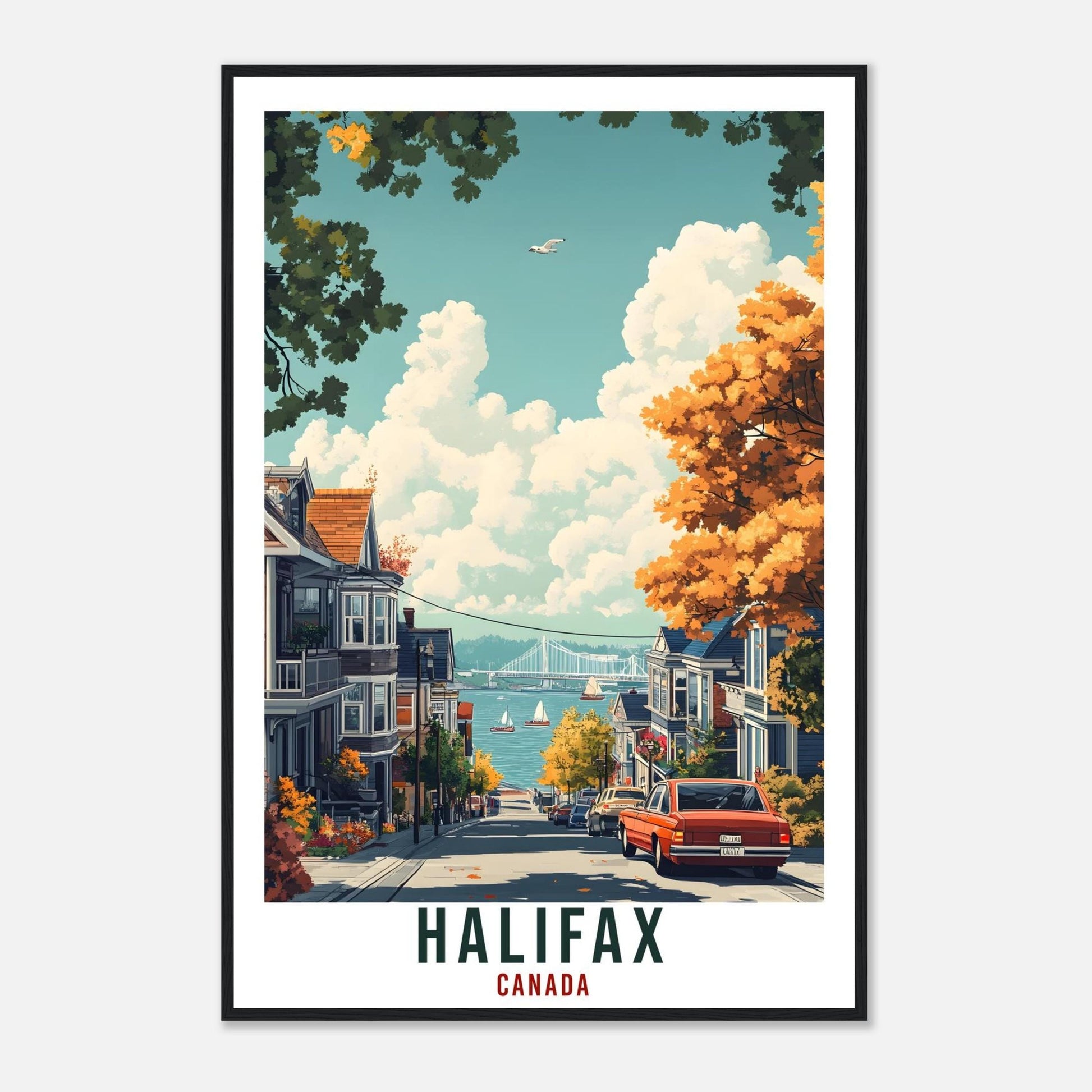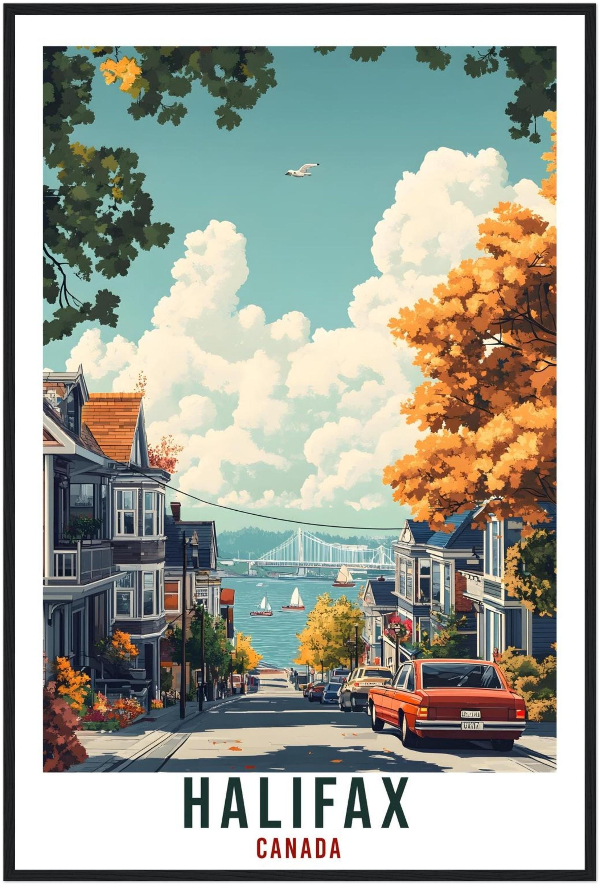 Transport yourself back to Halifax, Nova Scotia, Canada. Whether you lived there, visited there or are from there, travel back with this Canadian travel poster. Visit the sounds, smells, tastes, colors and culture every time you look at your new travel print. Each design is an imaginative recreation of the area to illicit memories of travelling there.