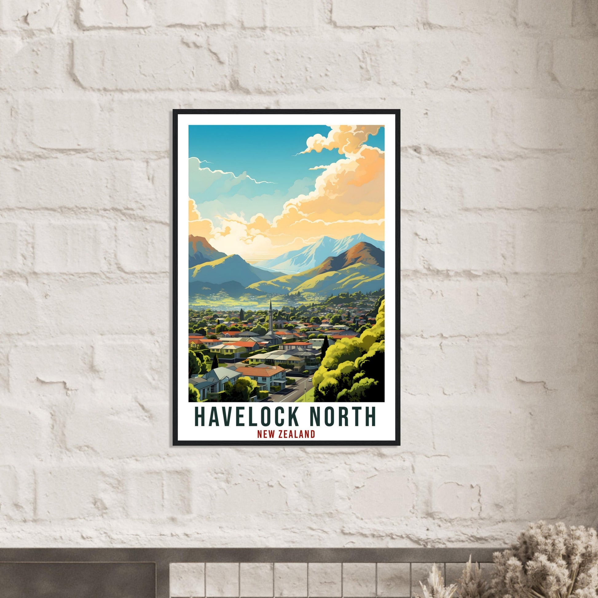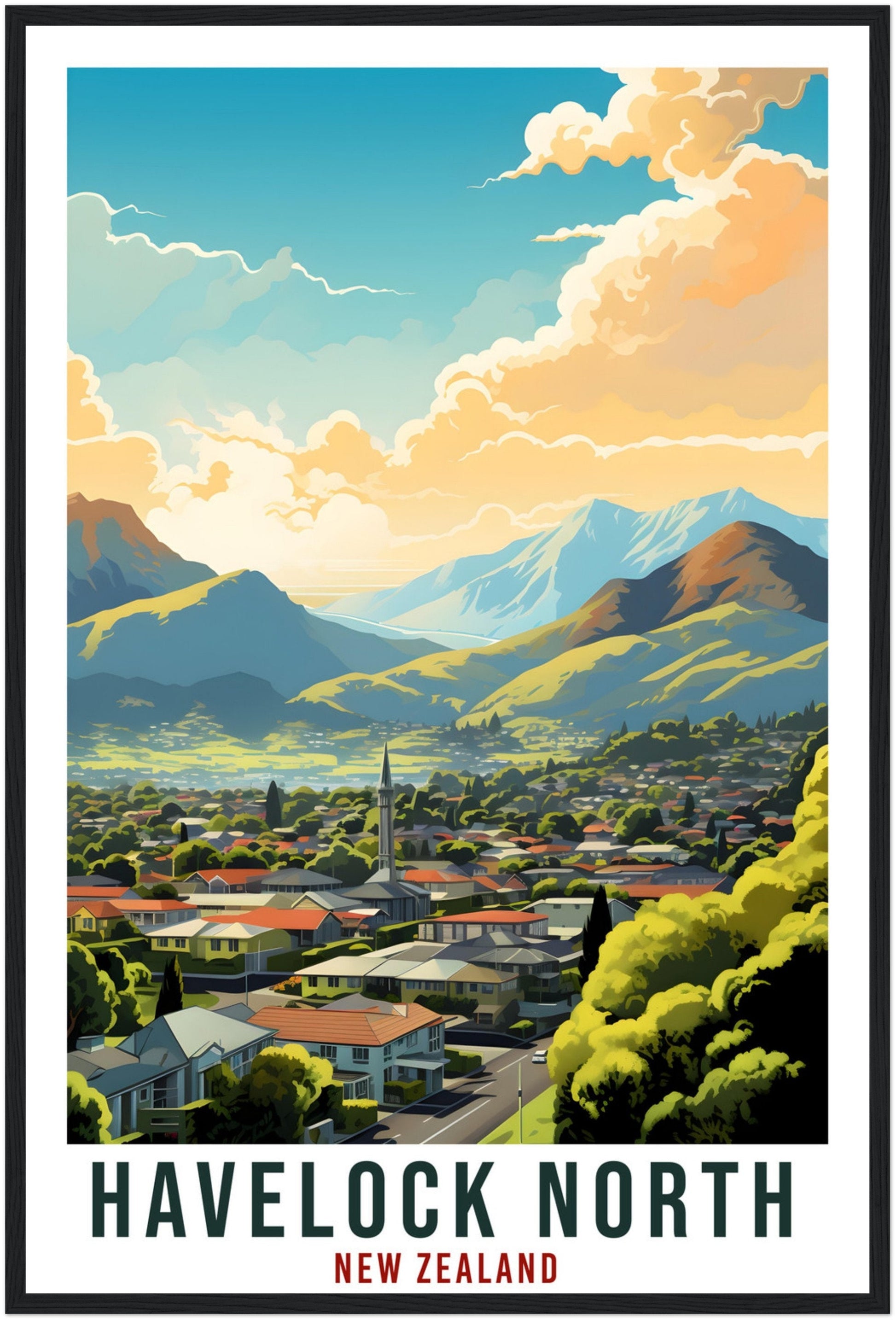 Transport yourself back to Havelock North, New Zealand. Whether you lived there, visited there or are from there, travel back with this Havelock North travel poster. Visit the sounds, smells, tastes, colors and culture every time you look at your new travel print.