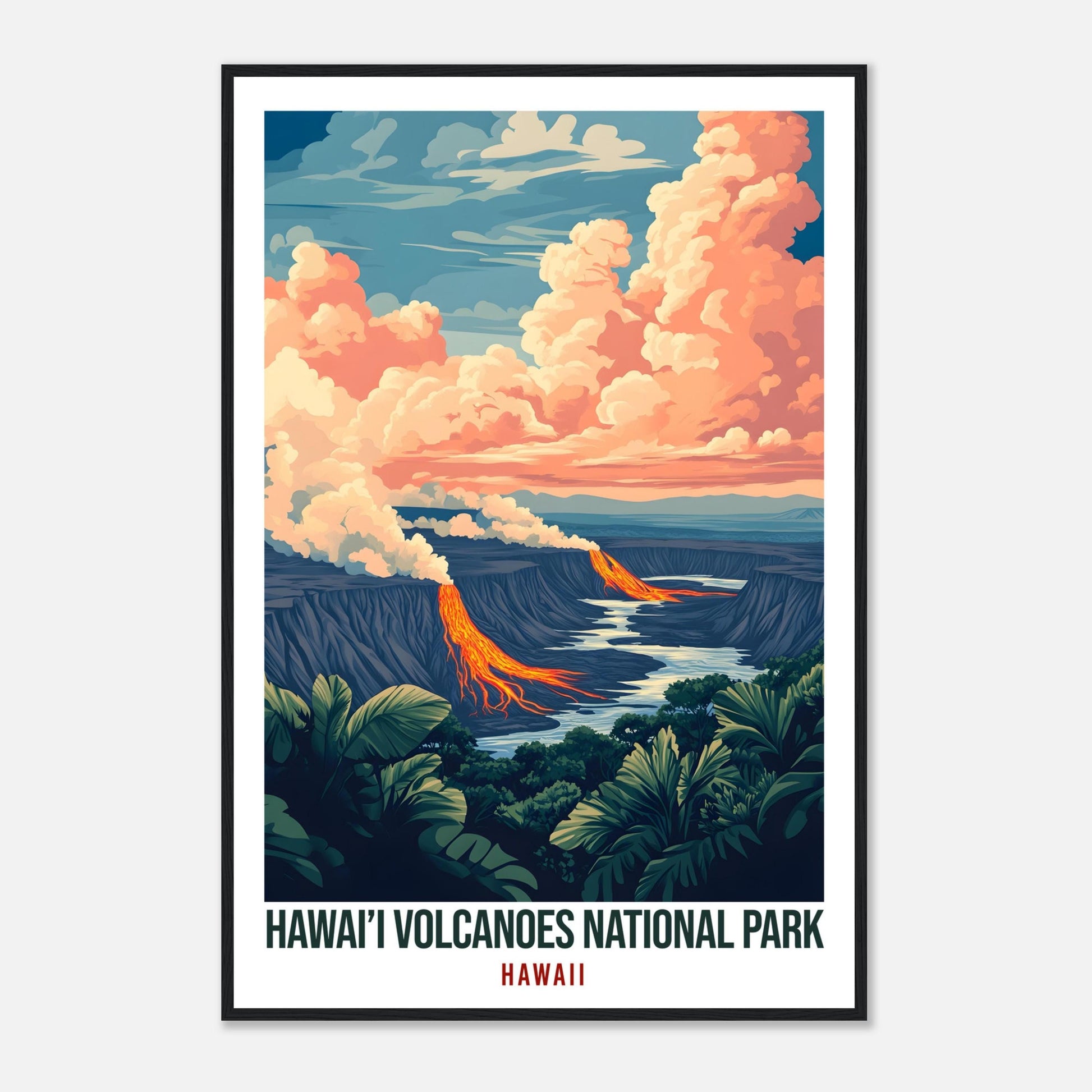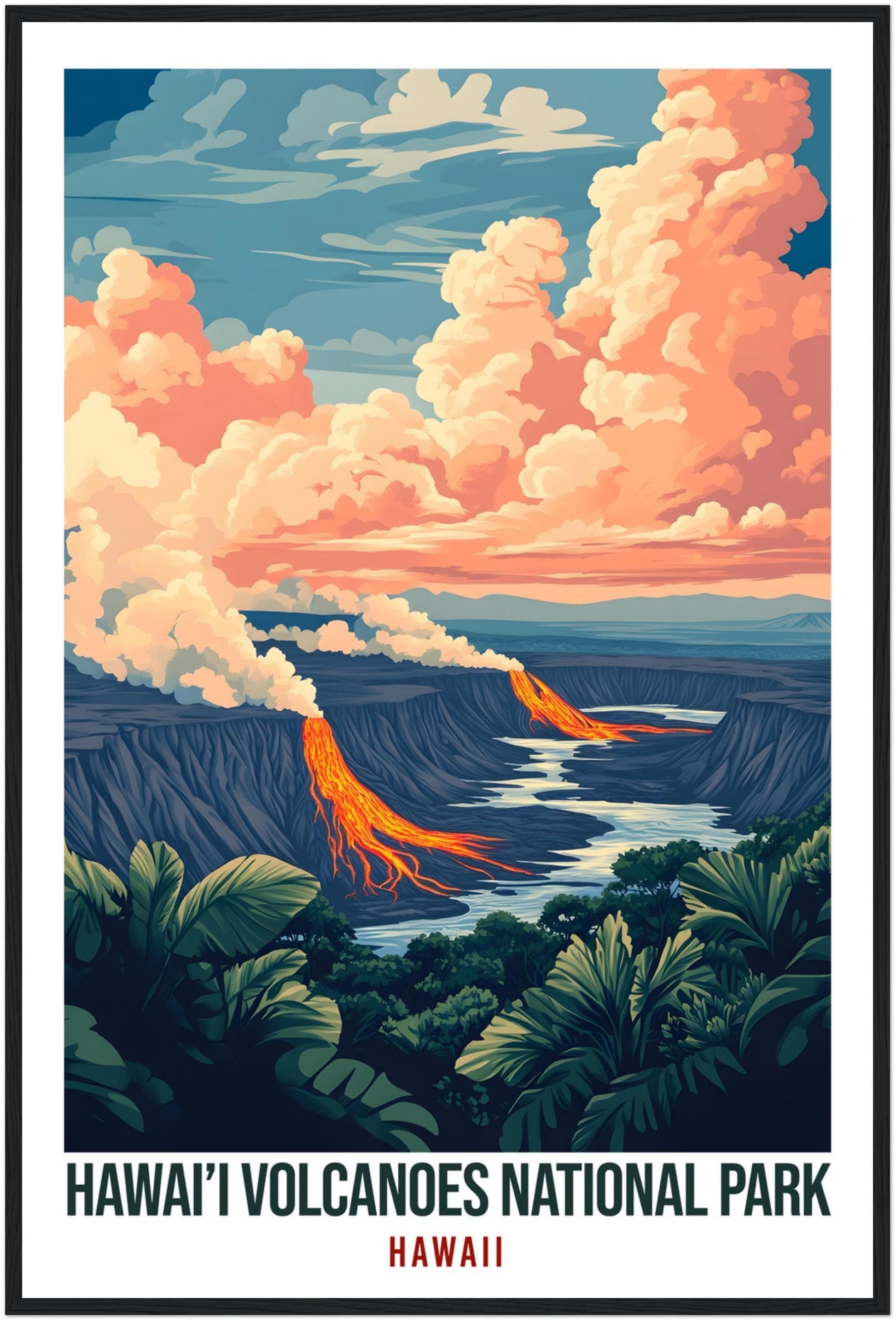 Transport yourself back to Hawaii Volcanoes National Park, USA. Whether you lived there, visited there or are from there, travel back with this Hawaii Volcanoes National Park travel poster. Visit the sounds, smells, tastes, colors and culture every time you look at your new travel print. Each design is an imaginative recreation of the area to illicit memories of travelling there.