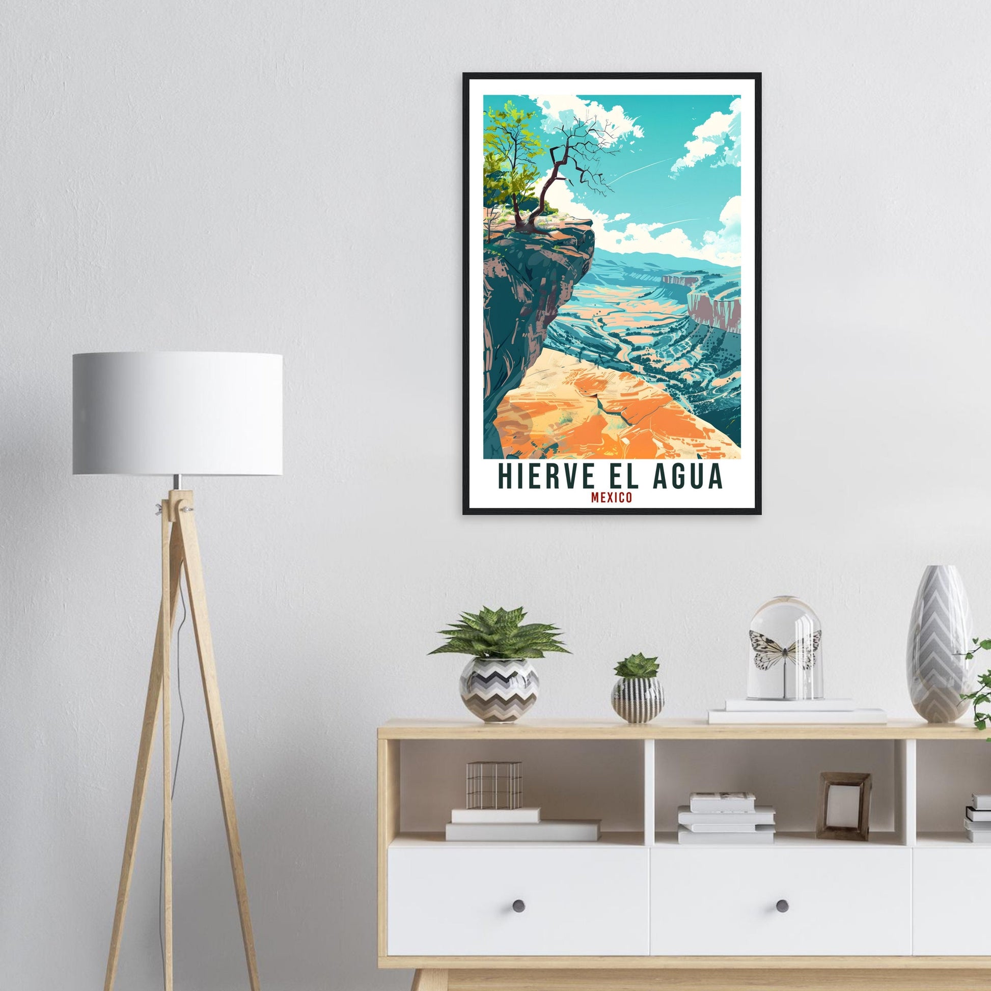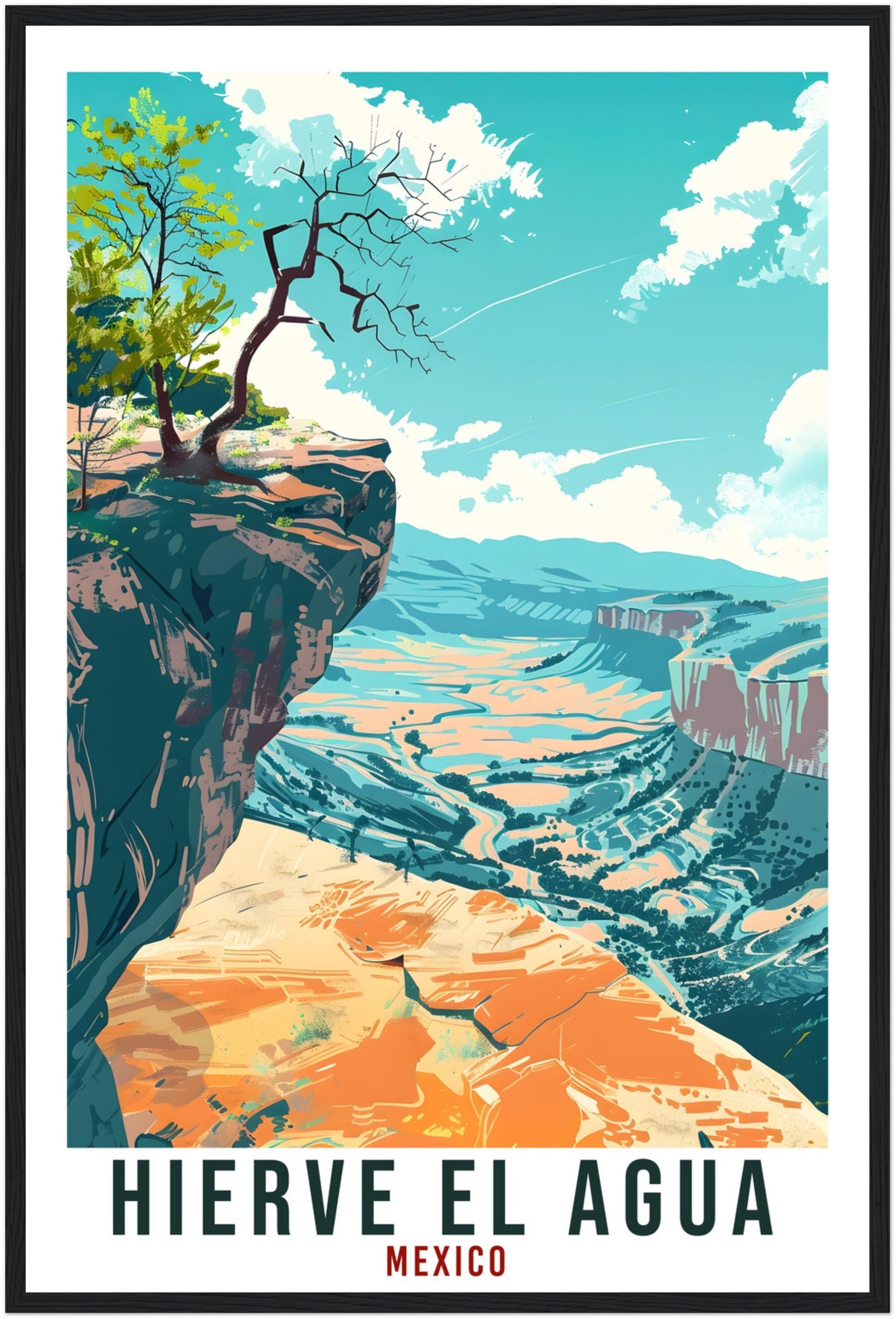 Transport yourself back to Hierve El Agua, Mexico. Whether you lived there, visited there or are from there, travel back with this Hierve El Agua travel poster. Visit the sounds, smells, tastes, colors and culture every time you look at your new travel print. Each design is an imaginative recreation of the area to illicit memories of travelling there.