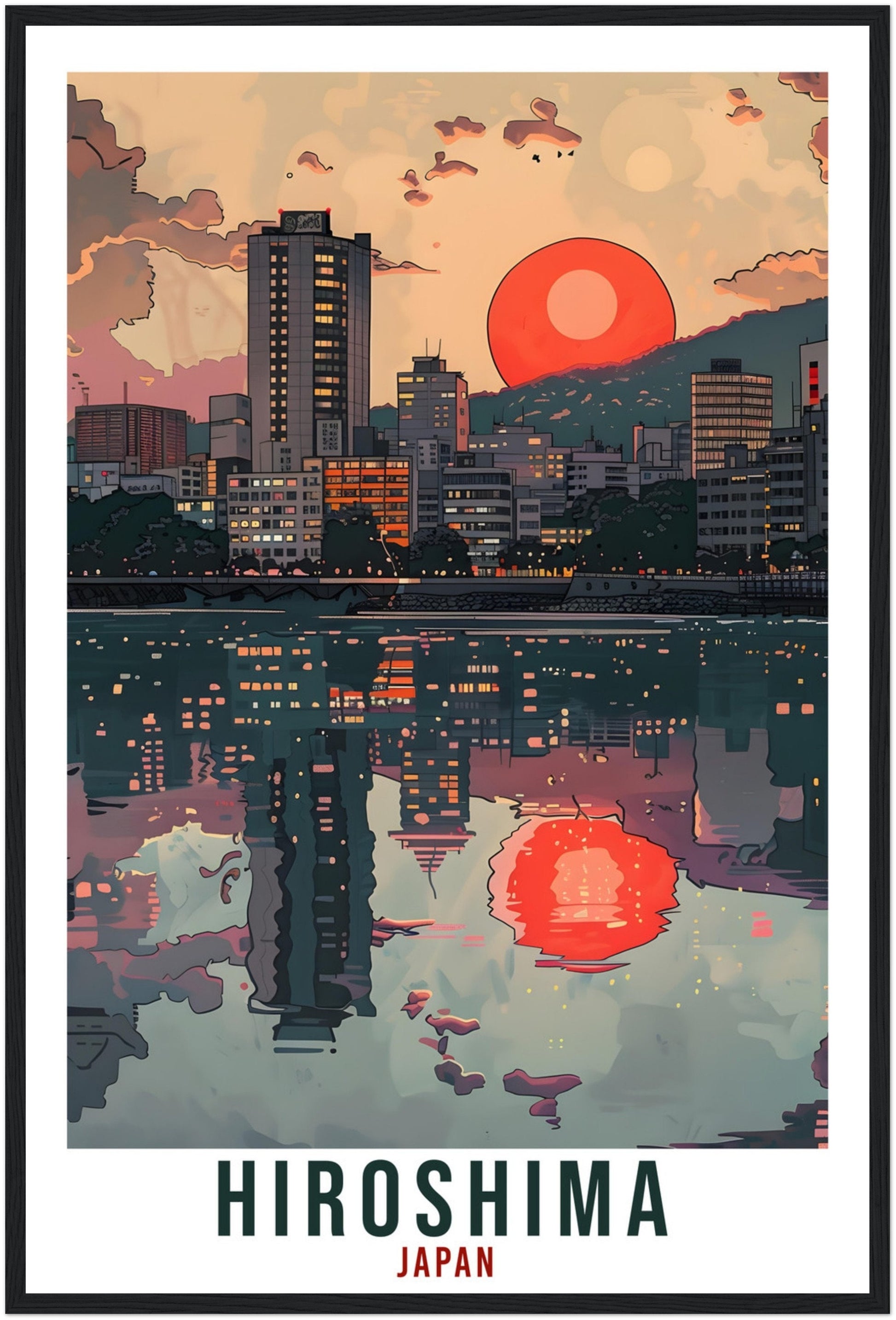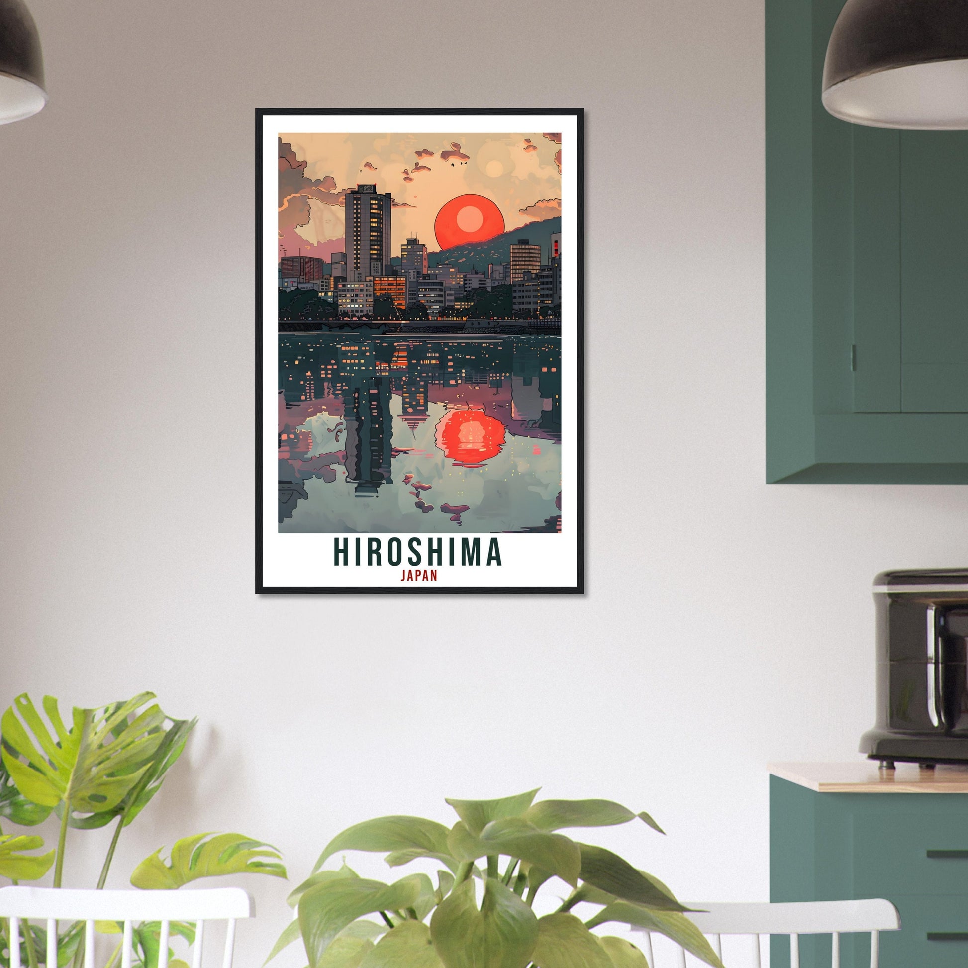 Transport yourself back to Hiroshima, Japan. Whether you lived there, visited there or are from there, travel back with this Hiroshima travel poster. Visit the sounds, smells, tastes, colors and culture every time you look at your new travel print.