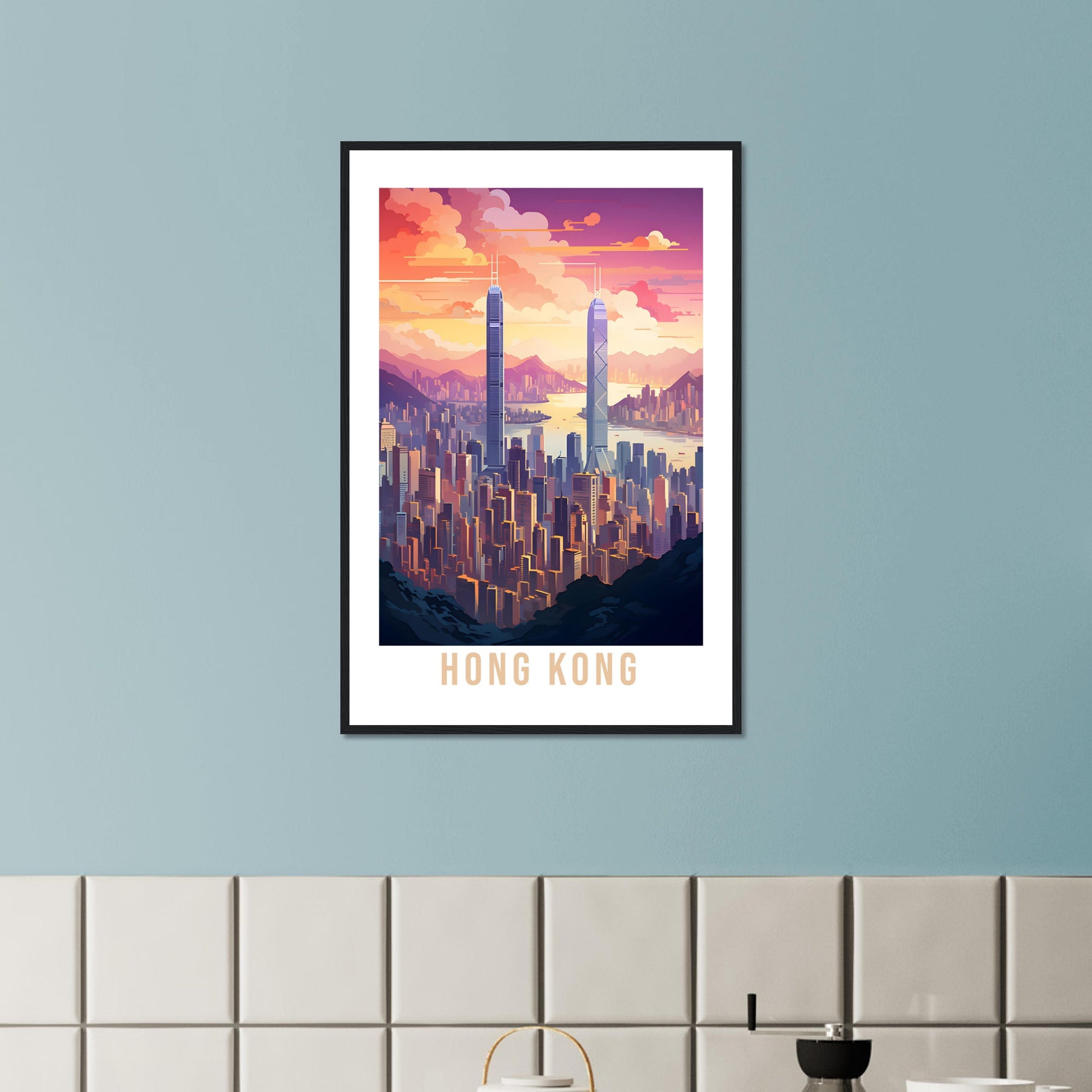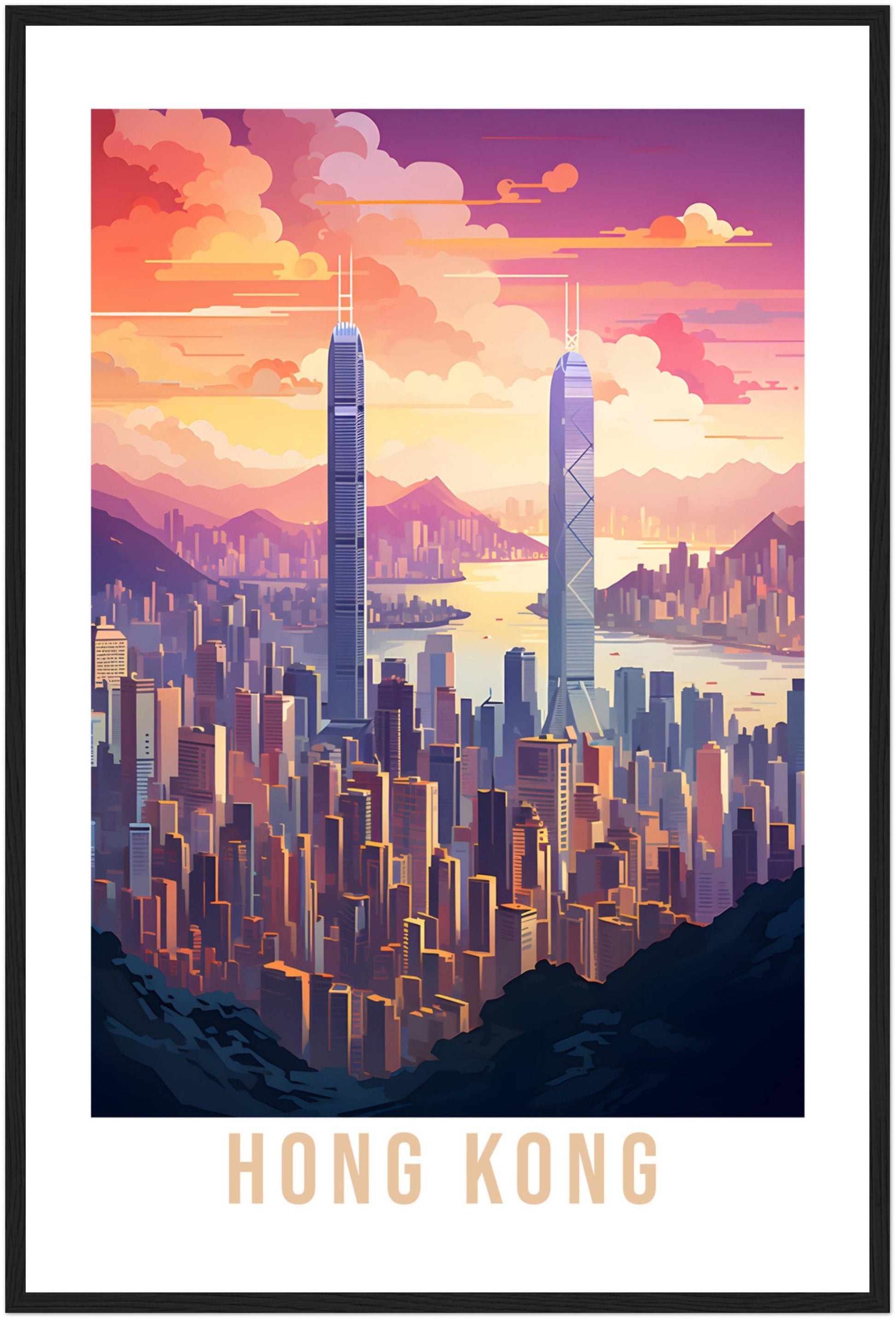 Transport yourself back to Hong Kong. Whether you lived there, visited there or are from there, travel back with this Hong Kong travel poster. Visit the sounds, smells, tastes, colors and culture every time you look at your new travel print.