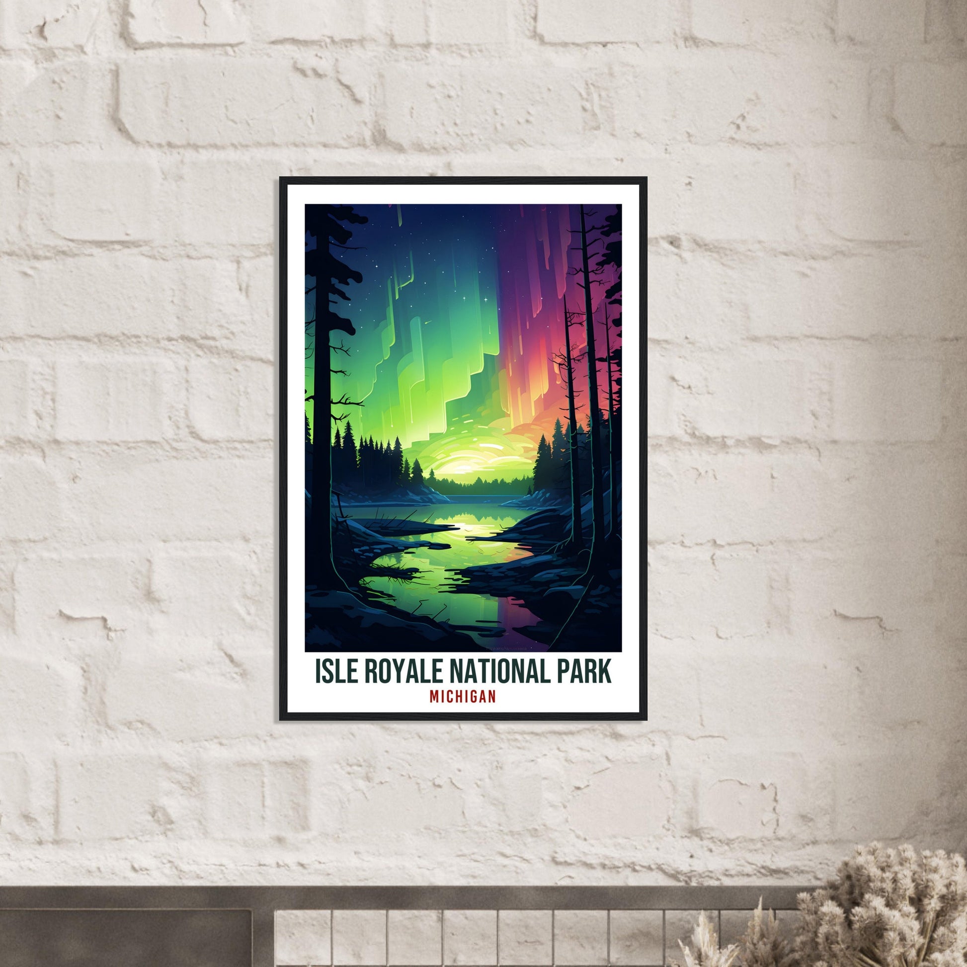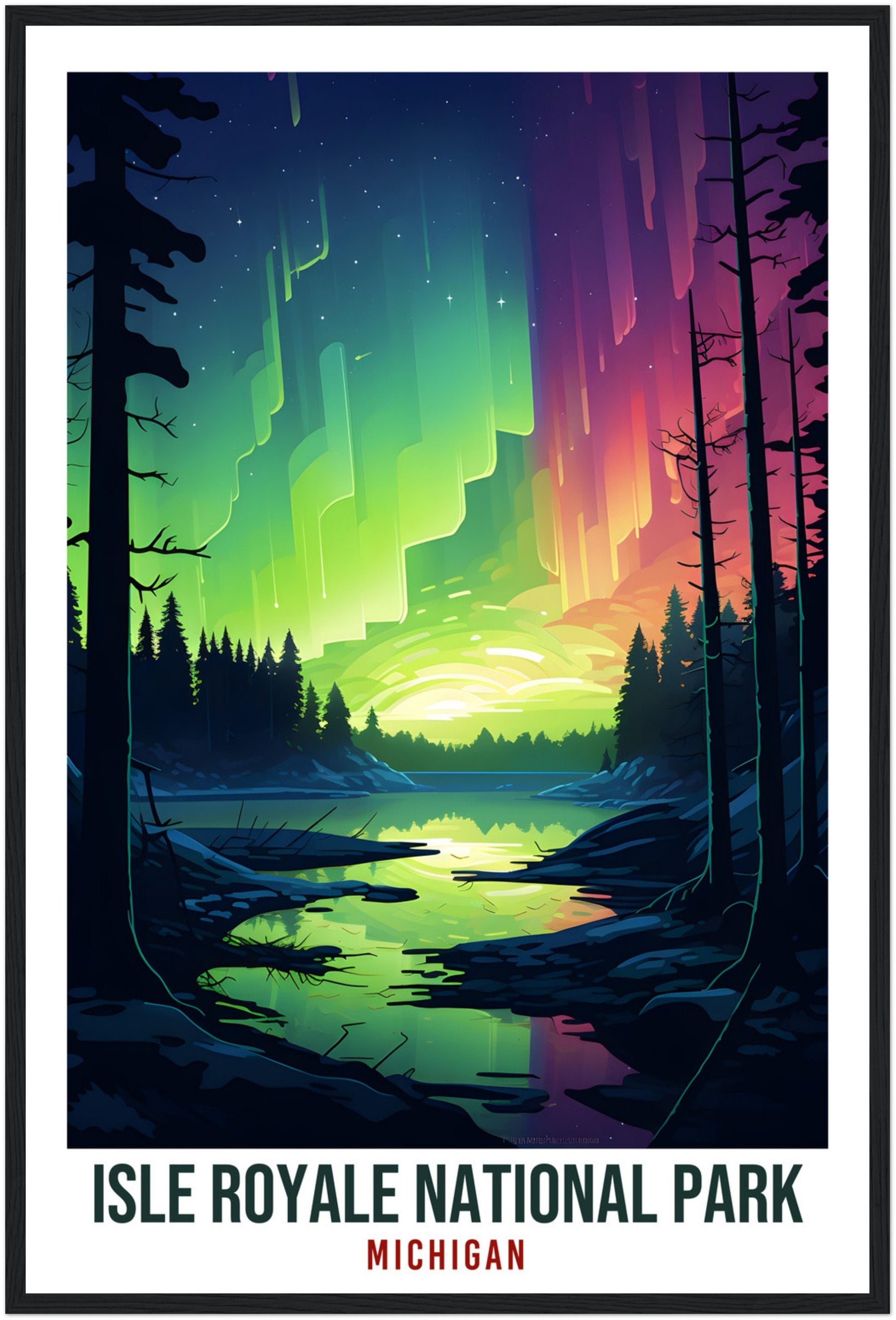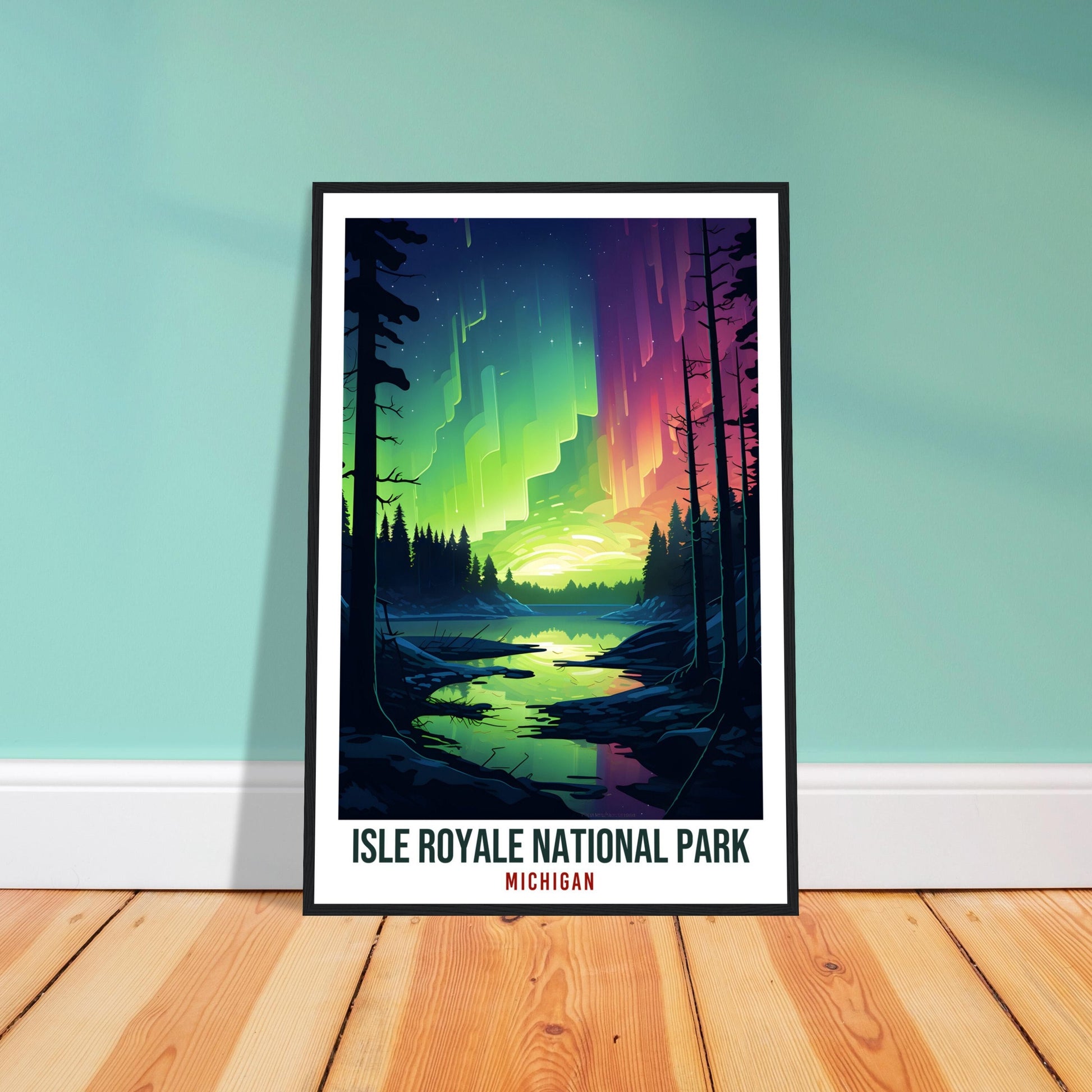 Isle Royale National Park Travel Print Michigan Northern Lights Wall Art Wall Hanging Travel Art Gift Isle Royale Travel Poster Michigan Art