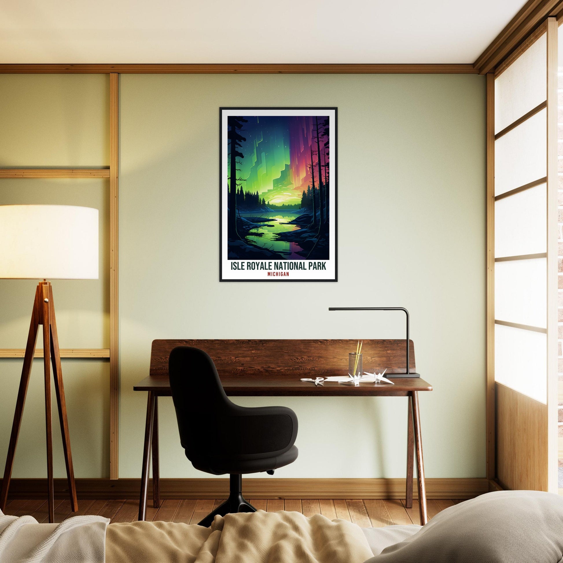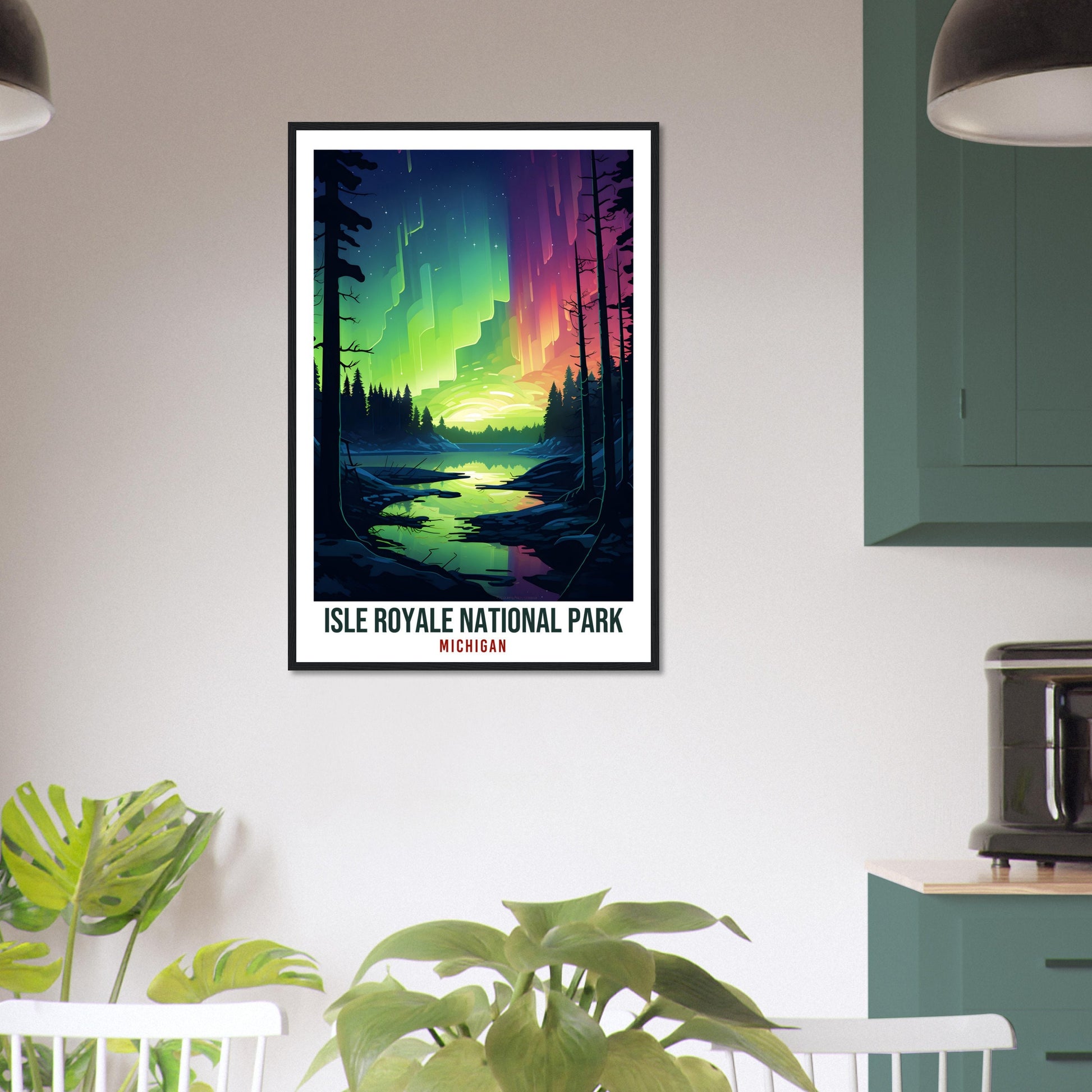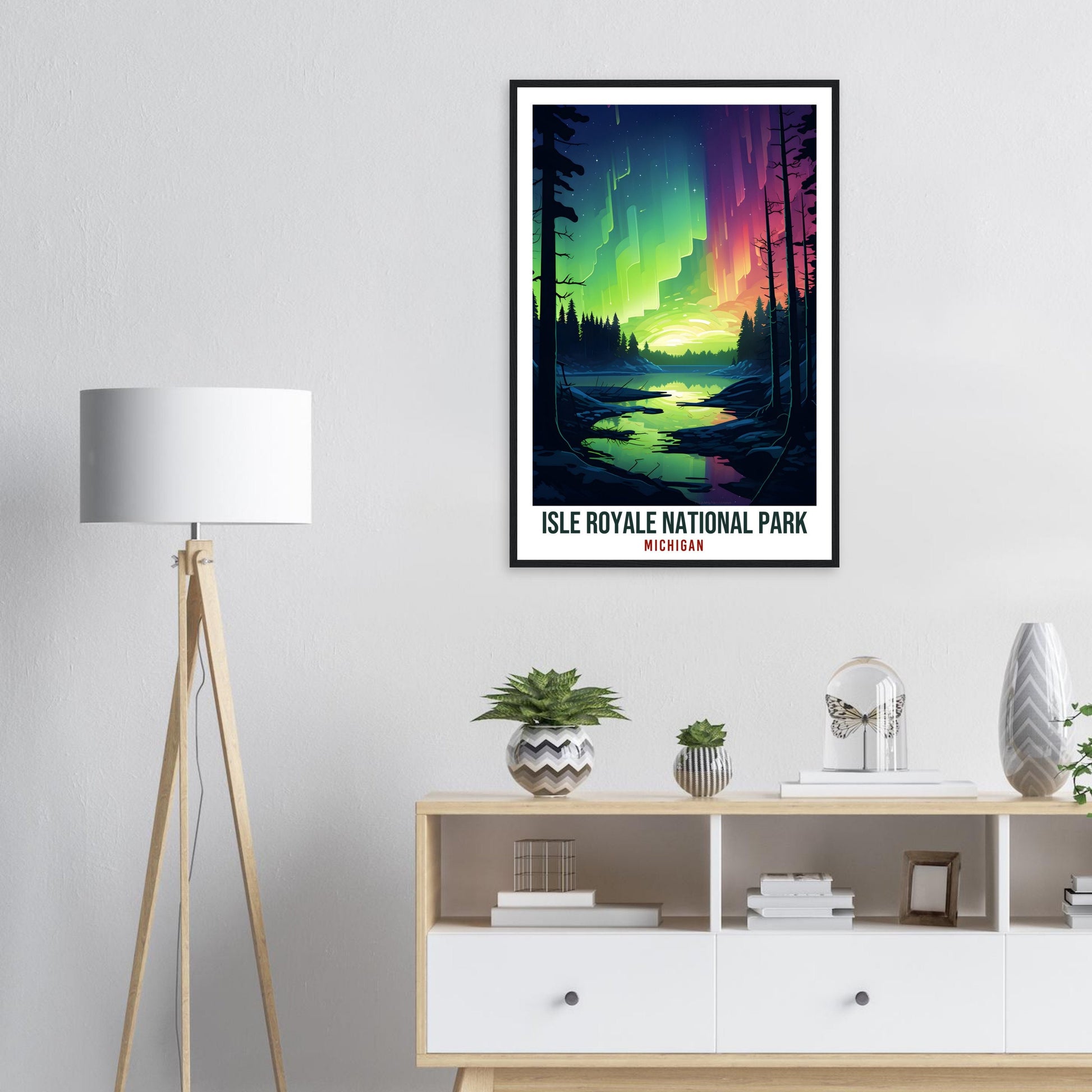 Isle Royale National Park Travel Print Michigan Northern Lights Wall Art Wall Hanging Travel Art Gift Isle Royale Travel Poster Michigan Art