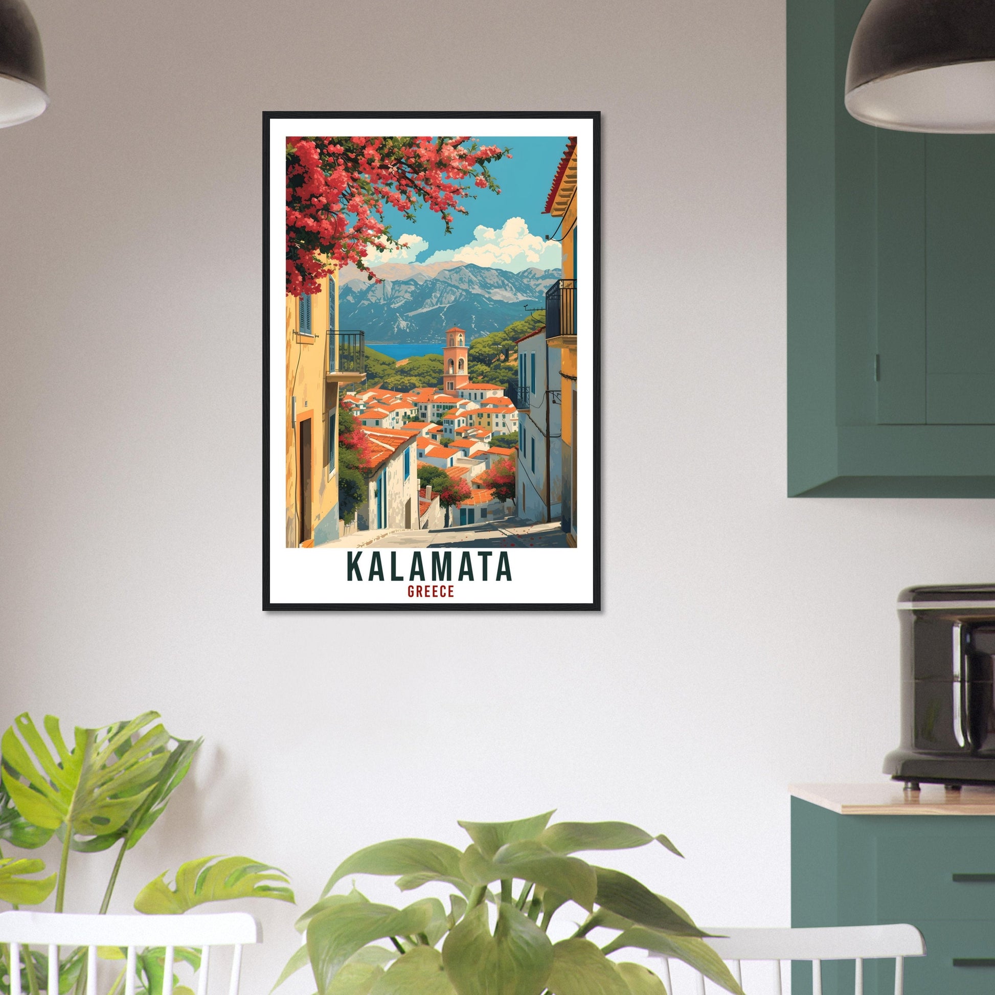 Transport yourself back to Kalamata, Greece. Whether you lived there, visited there or are from there, travel back with this Kalamata travel poster. Visit the sounds, smells, tastes, colors and culture every time you look at your new travel print.