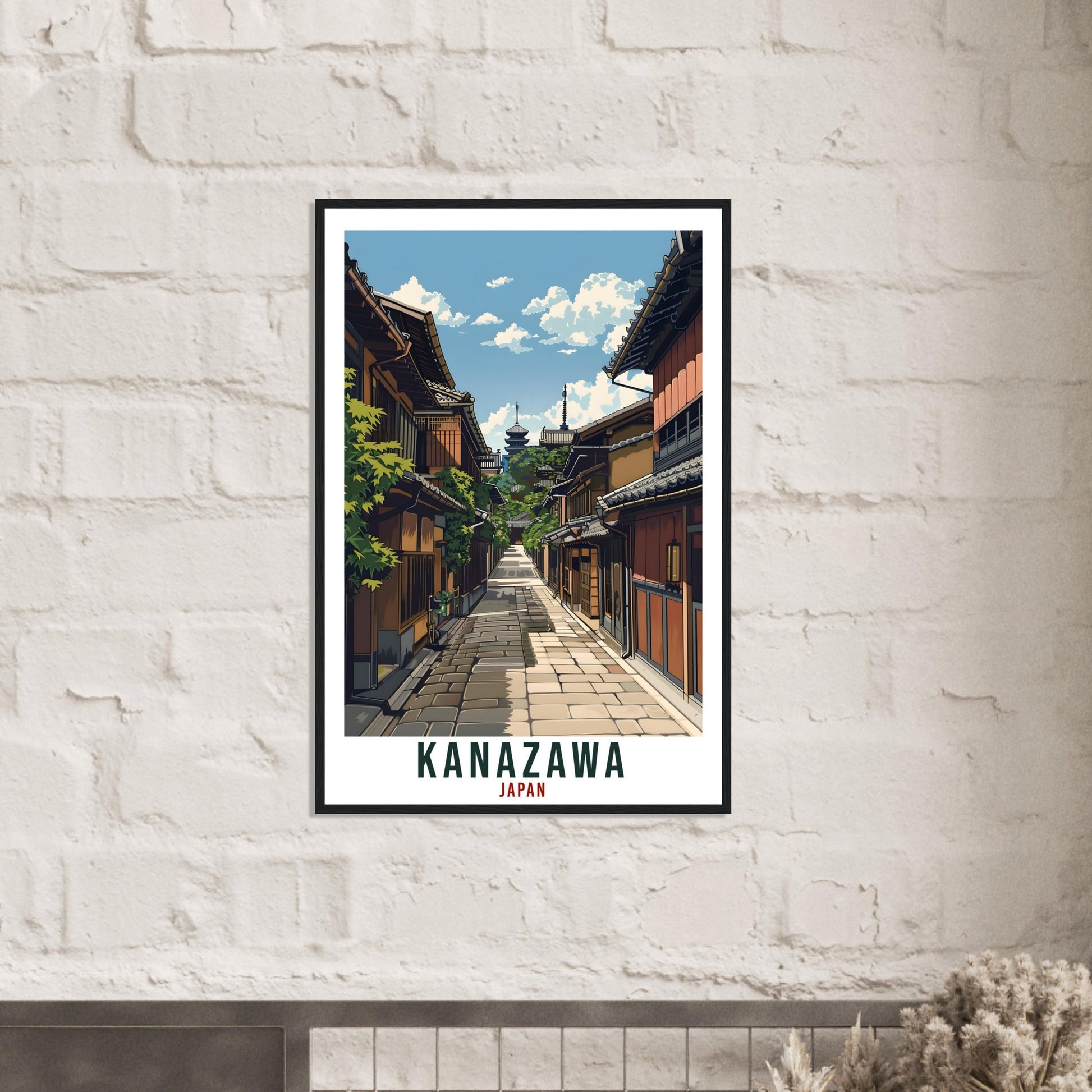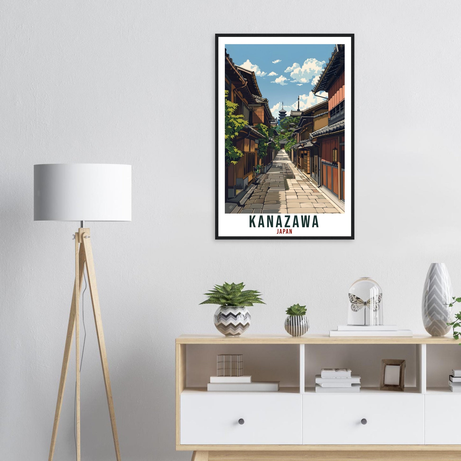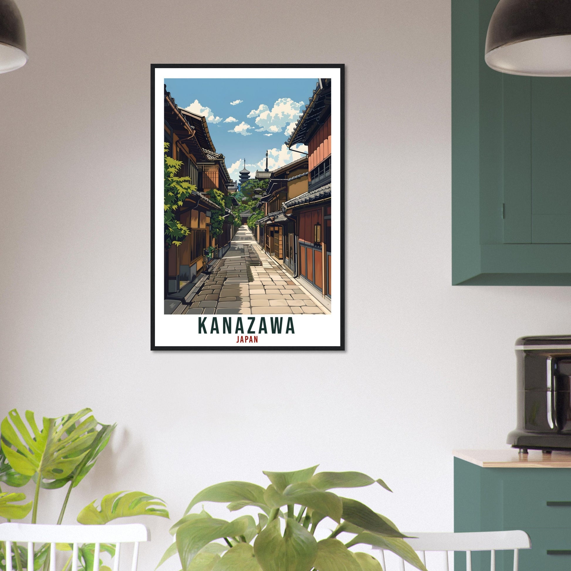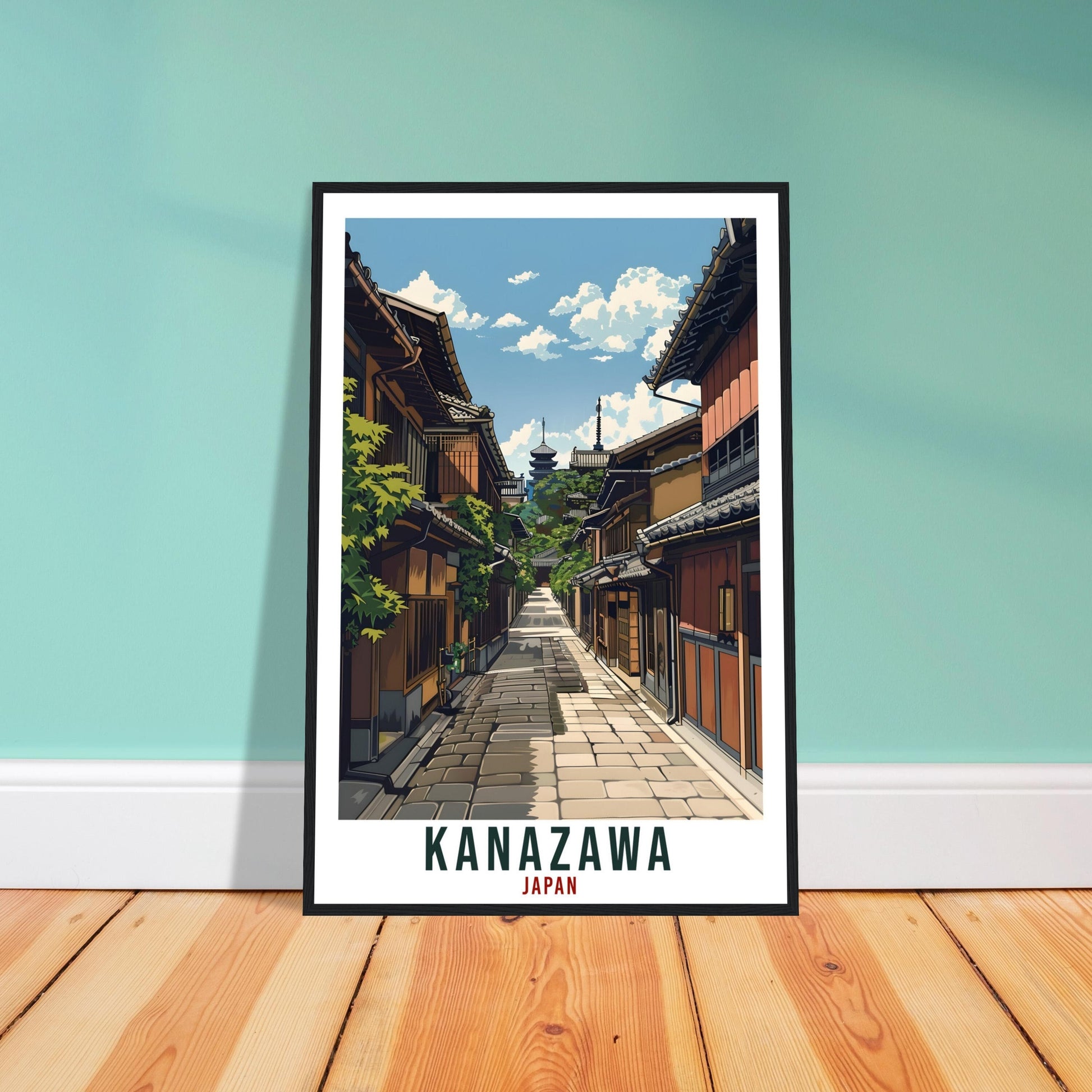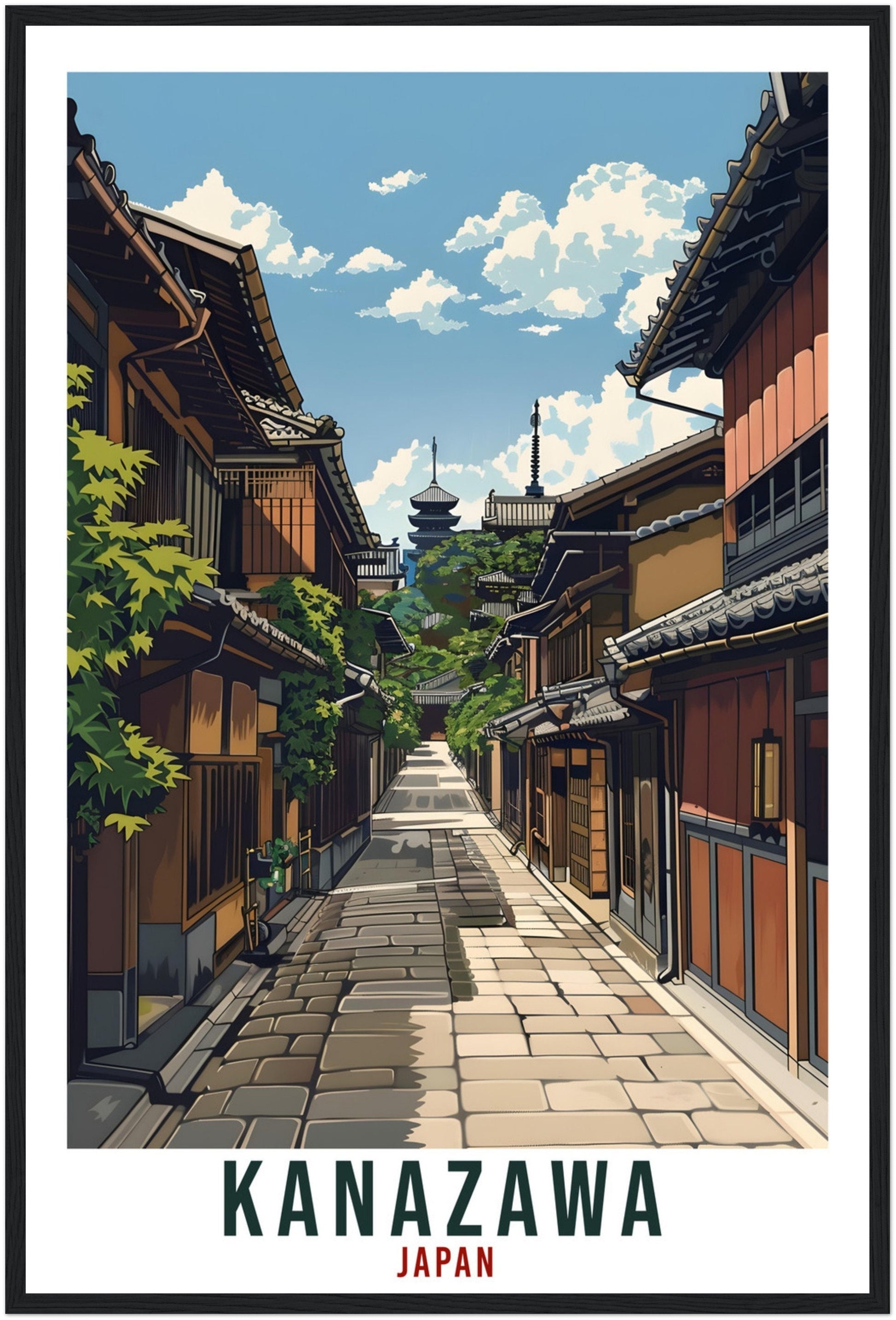 Transport yourself back to Kanazawa, Japan. Whether you lived there, visited there or are from there, travel back with this Kanazawa travel poster. Visit the sounds, smells, tastes, colors and culture every time you look at your new travel print.