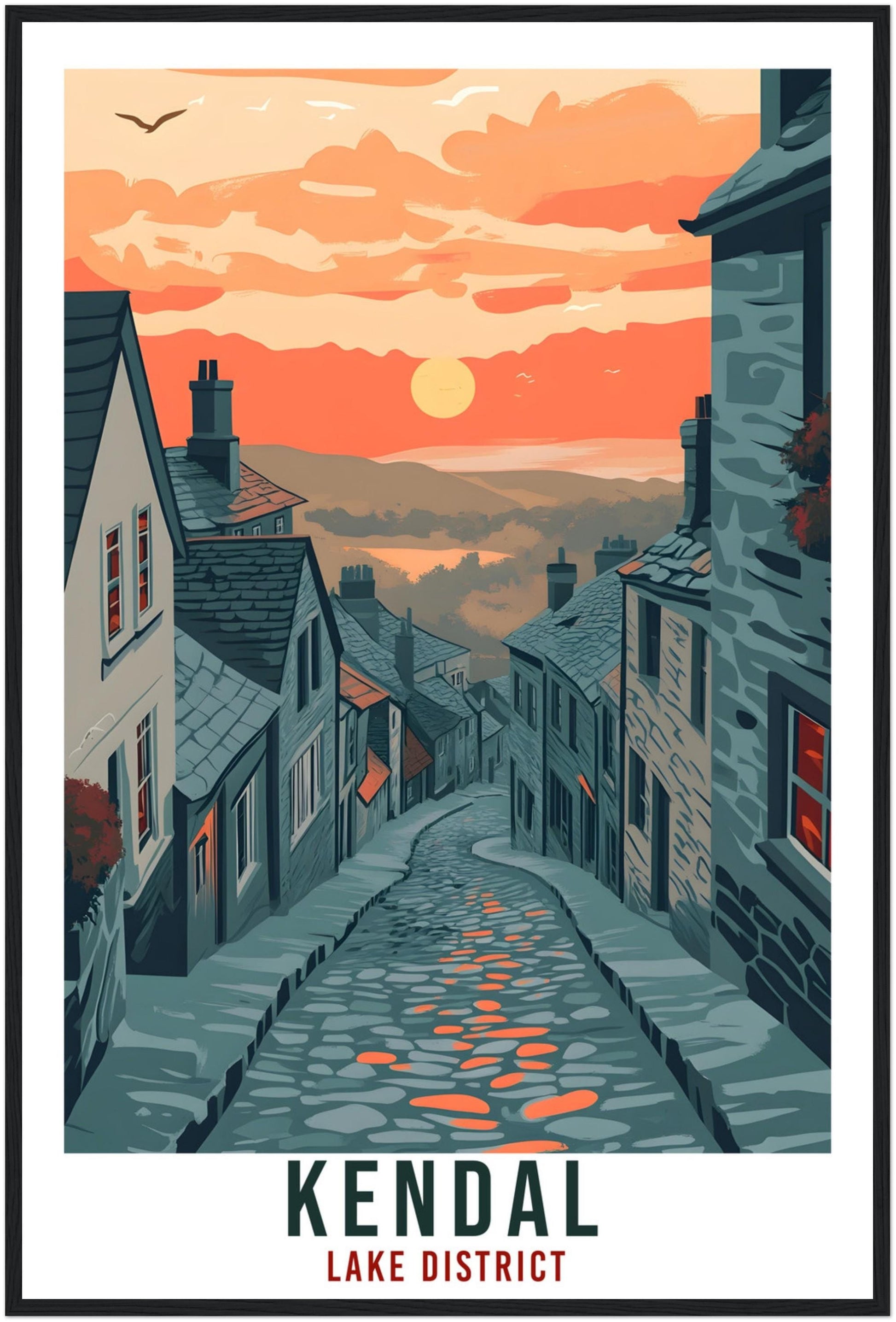 Kendal Travel Print Lake District Home Decor Kendal Wall Art Wall Hanging Art Lover Lake District Artwork Travel Poster Cumbria Travel Art