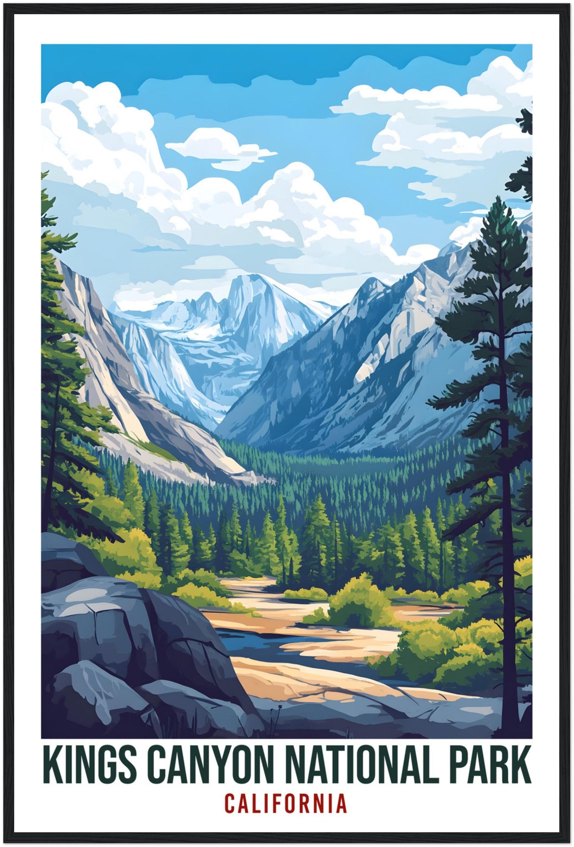 Transport yourself back to Kings Canyon National Park, California, USA. Whether you lived there, visited there or are from there, travel back with this Kings Canyon National Park travel poster. Visit the sounds, smells, tastes, colors and culture every time you look at your new travel print. Each design is an imaginative recreation of the area to illicit memories of travelling there.