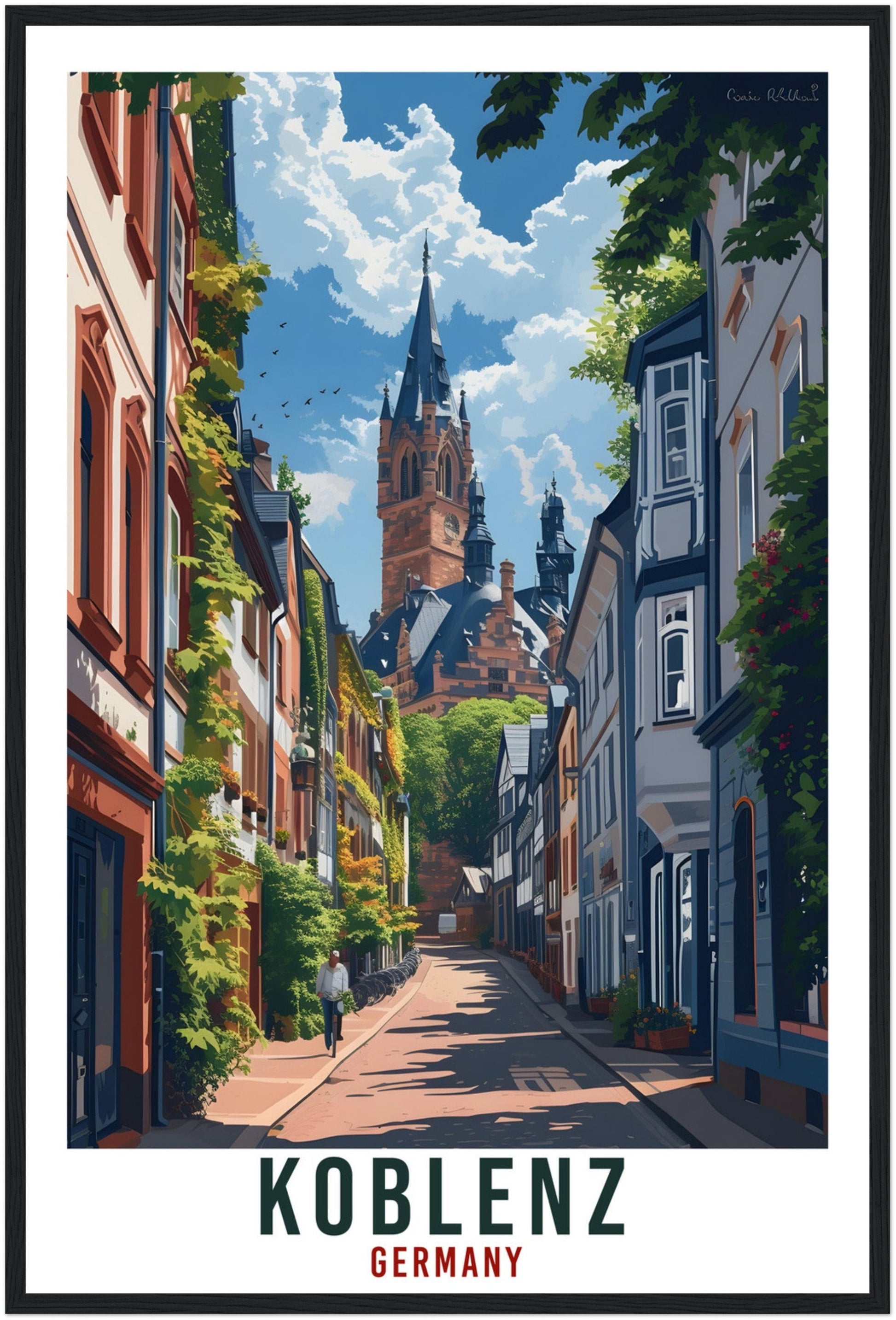 Transport yourself back to Koblenz, Germany. Whether you lived there, visited there or are from there, travel back with this Koblenz travel poster. Visit the sounds, smells, tastes, colors and culture every time you look at your new travel print.