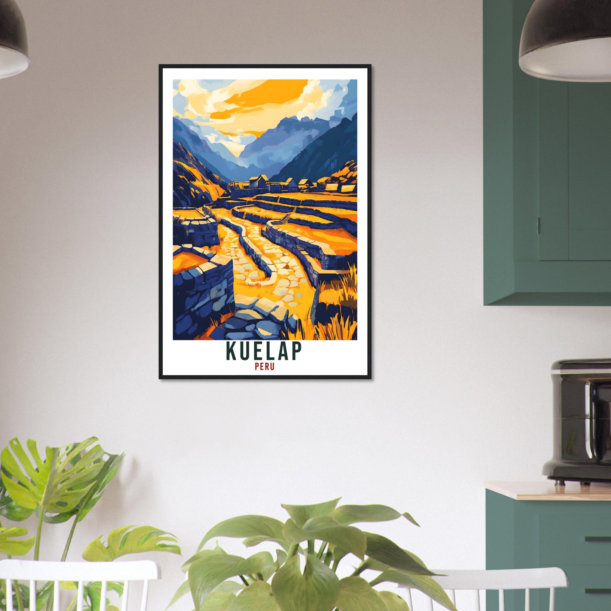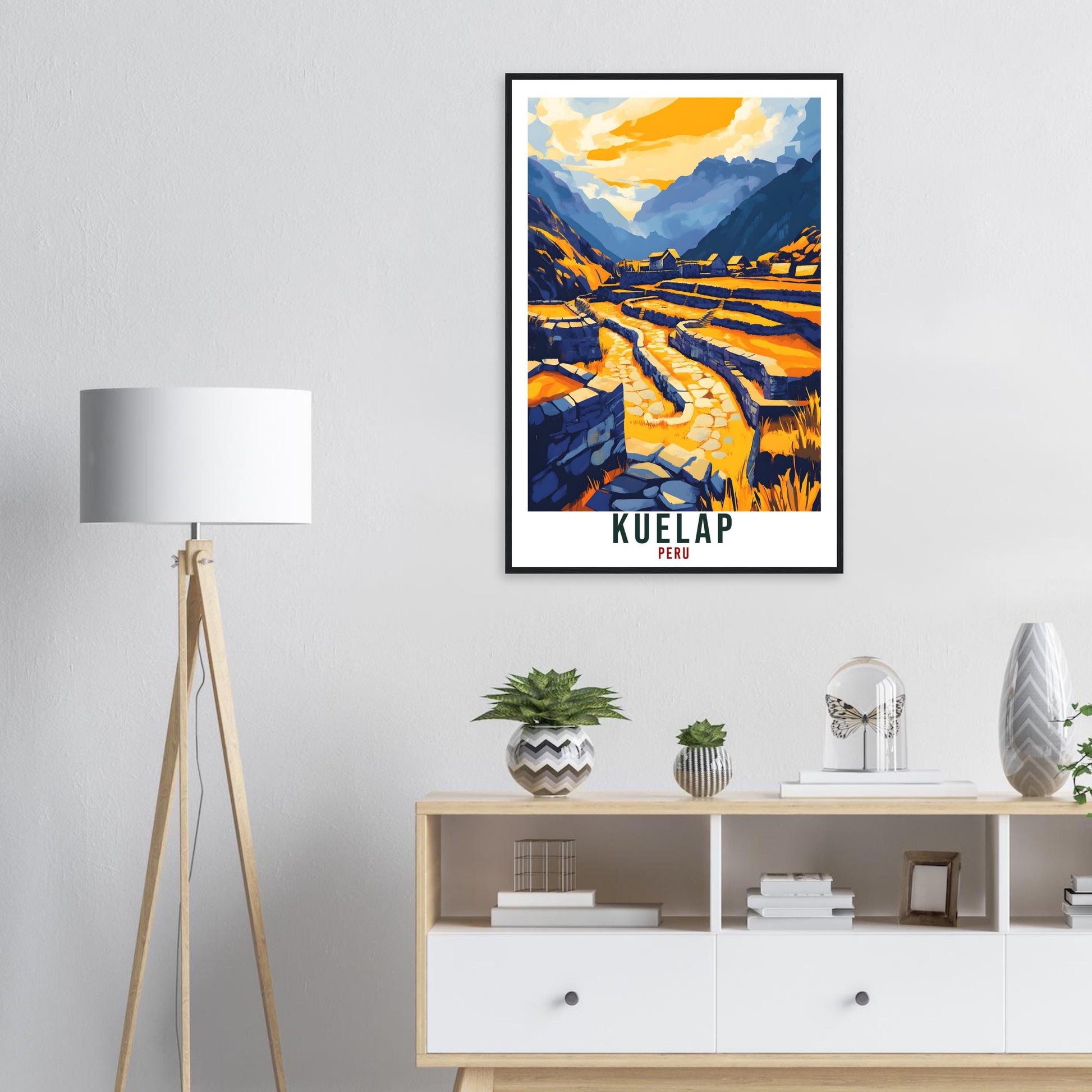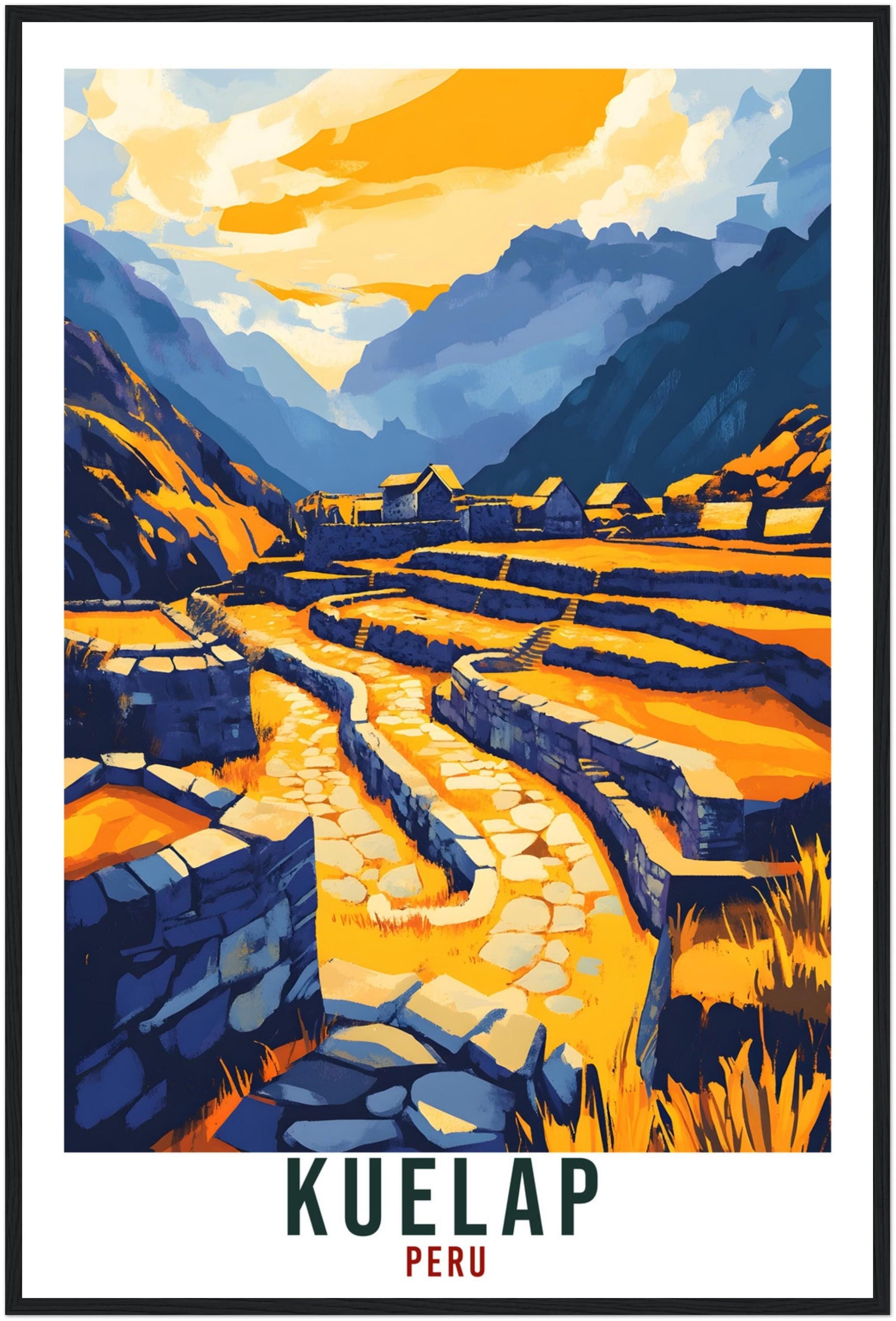 Transport yourself back to Kuelap, Peru. Whether you lived there, visited there or are from there, travel back with this Kuelap travel poster. Visit the sounds, smells, tastes, colors and culture every time you look at your new travel print. Each design is an imaginative recreation of the area to illicit memories of travelling there.