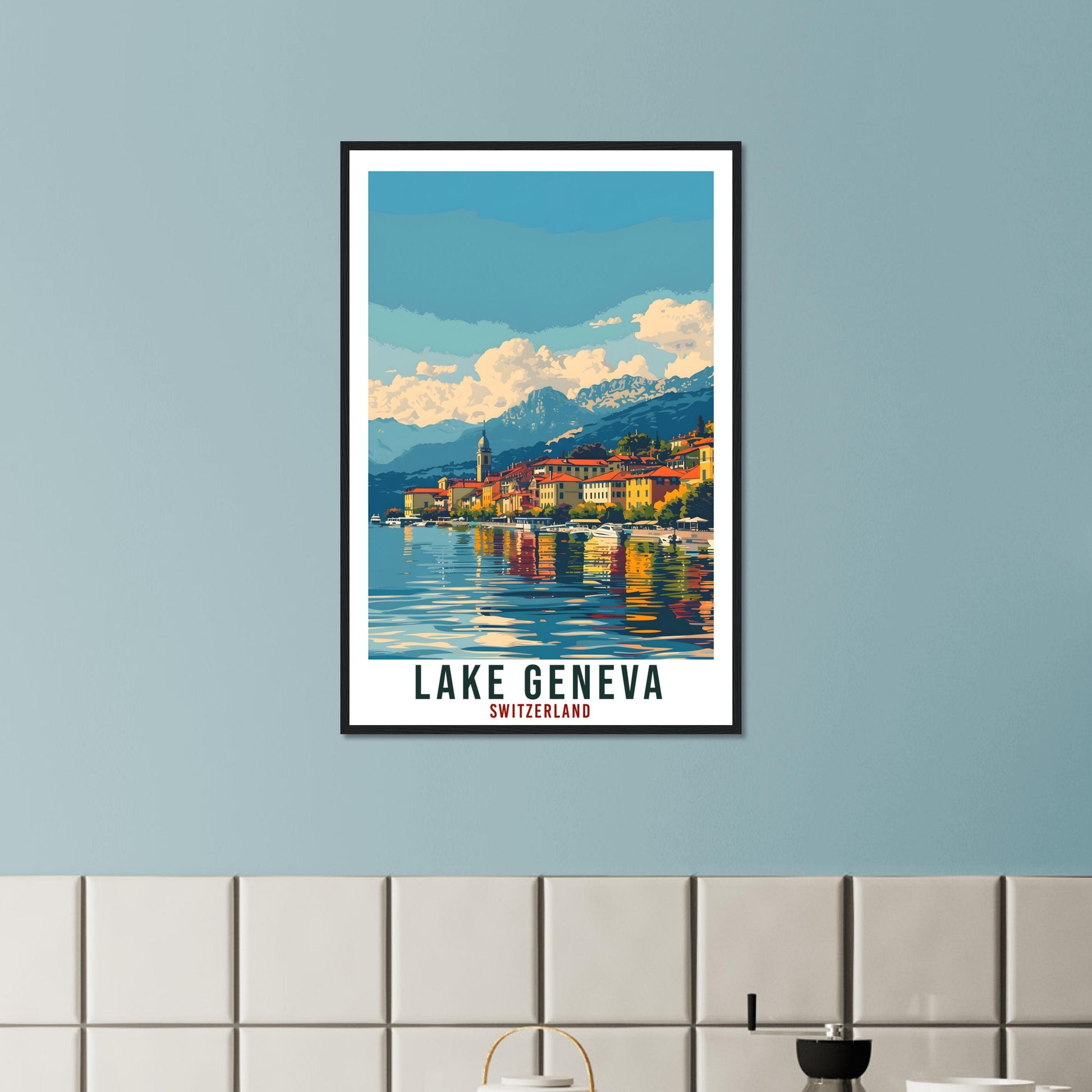 Lake Geneva Travel Print Swiss Wall Art Wall Hanging Home Décor Lake Geneva Gift Art Lover Gift Switzerland Artwork Gift Swiss Travel Poster