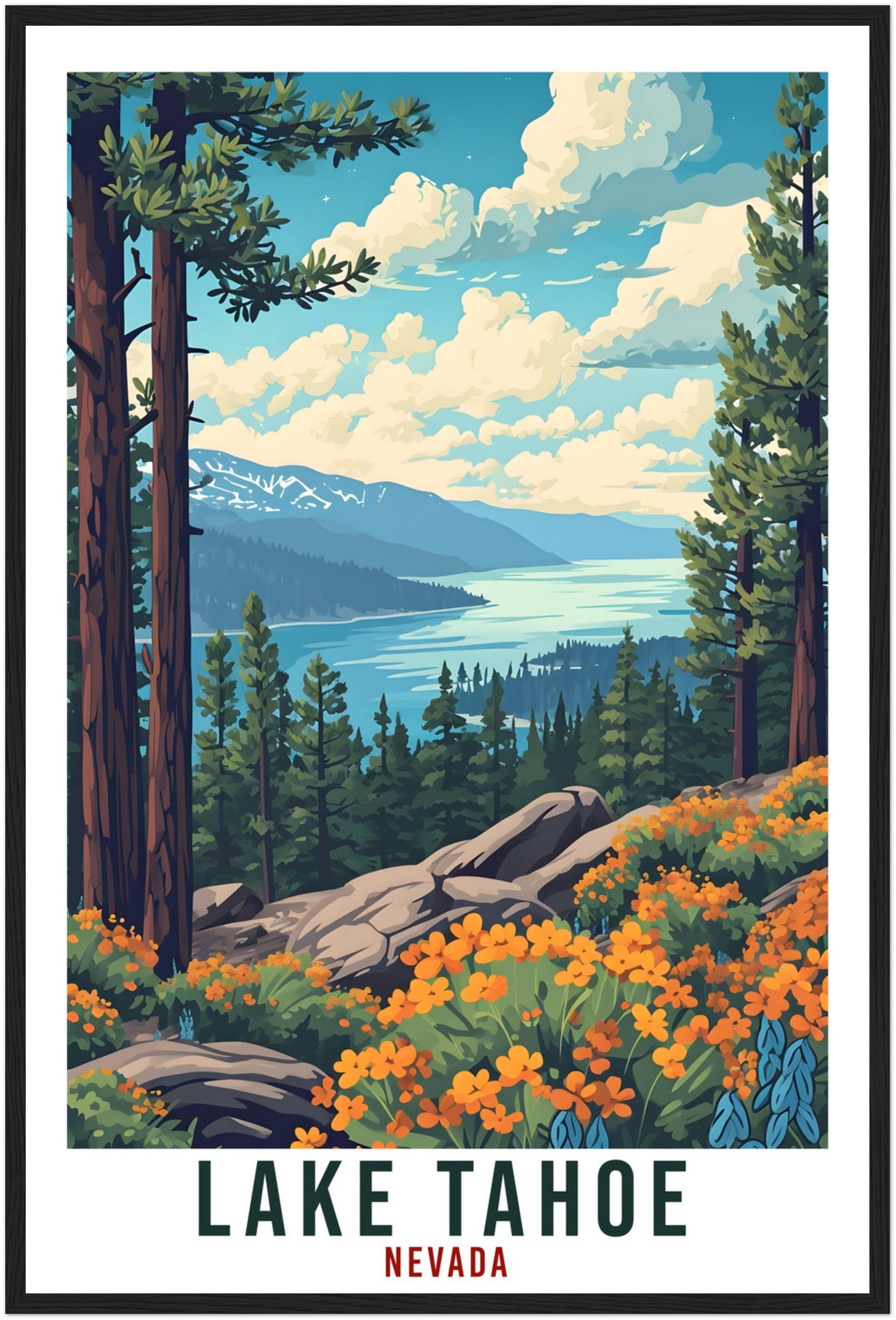 Transport yourself back to Lake Tahoe, Nevada. Whether you lived there, visited there or are from there, travel back with this Lake Tahoe travel poster. Visit the sounds, smells, tastes, colors and culture every time you look at your new travel print.