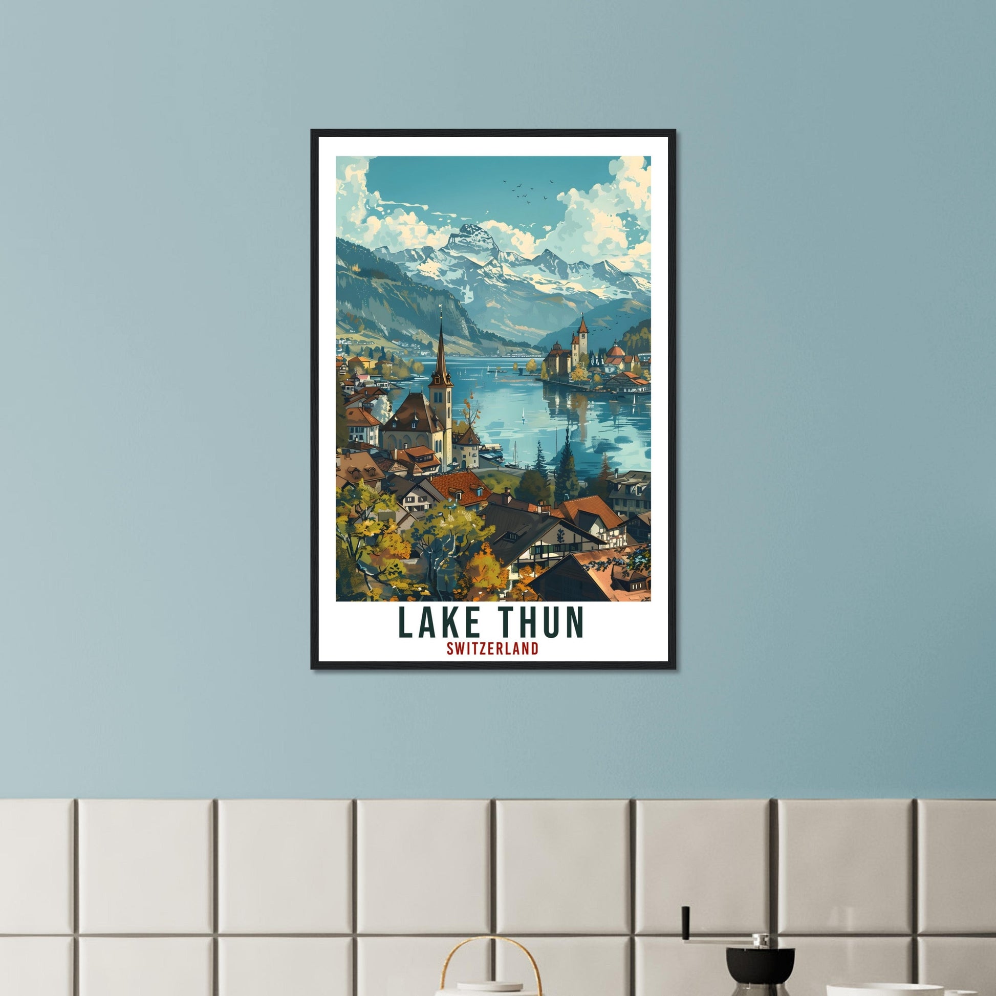Lake Thun Travel Print Swiss Wall Art Wall Hanging Home Living Décor Lake Thun Gift Art Lovers Gift Switzerland Artwork Swiss Travel Poster