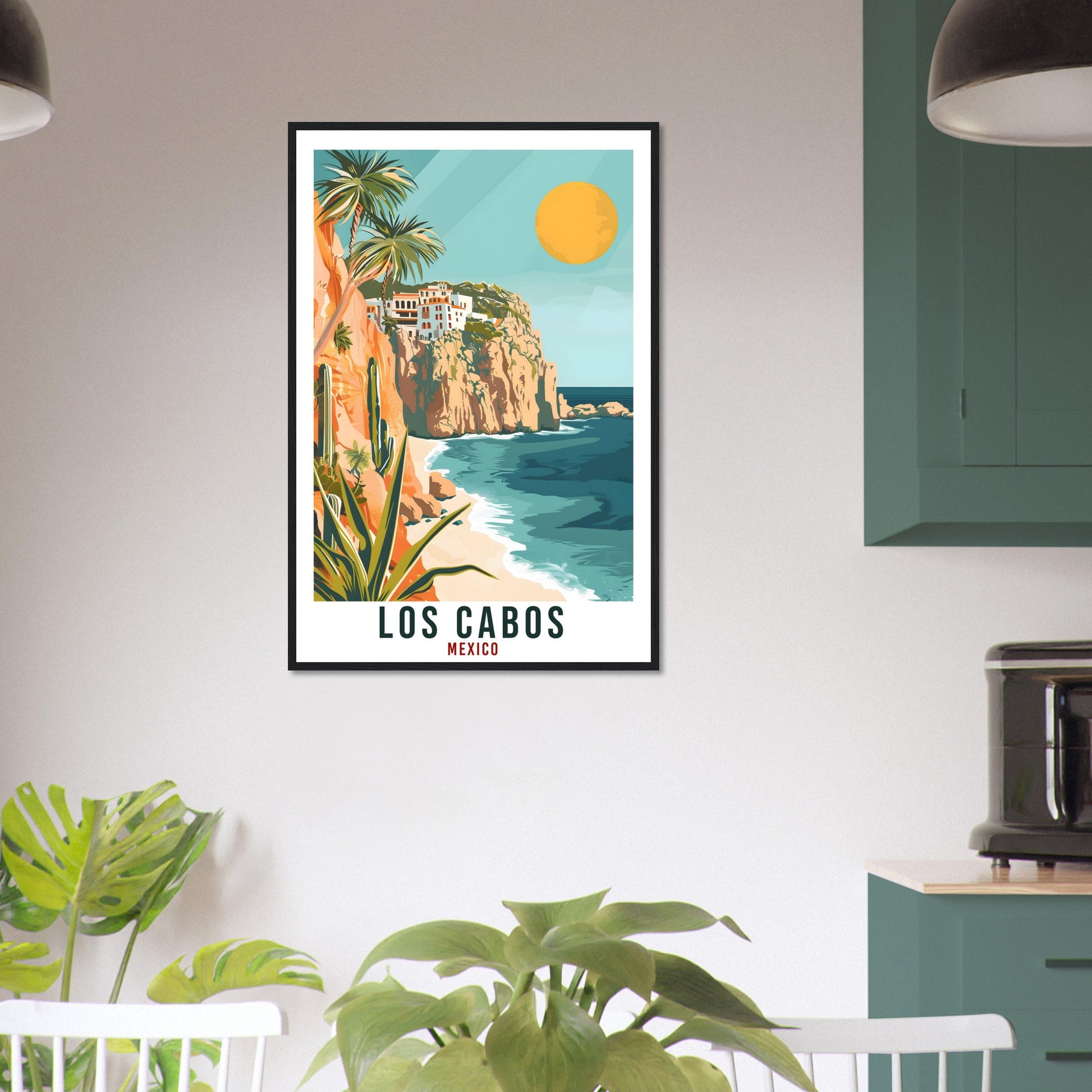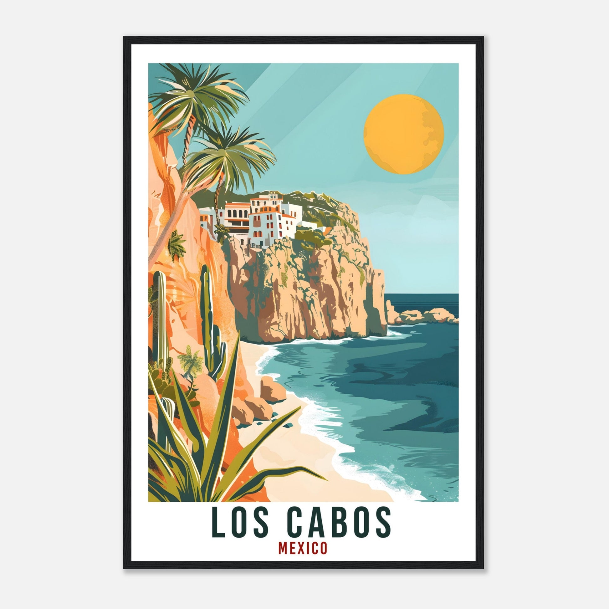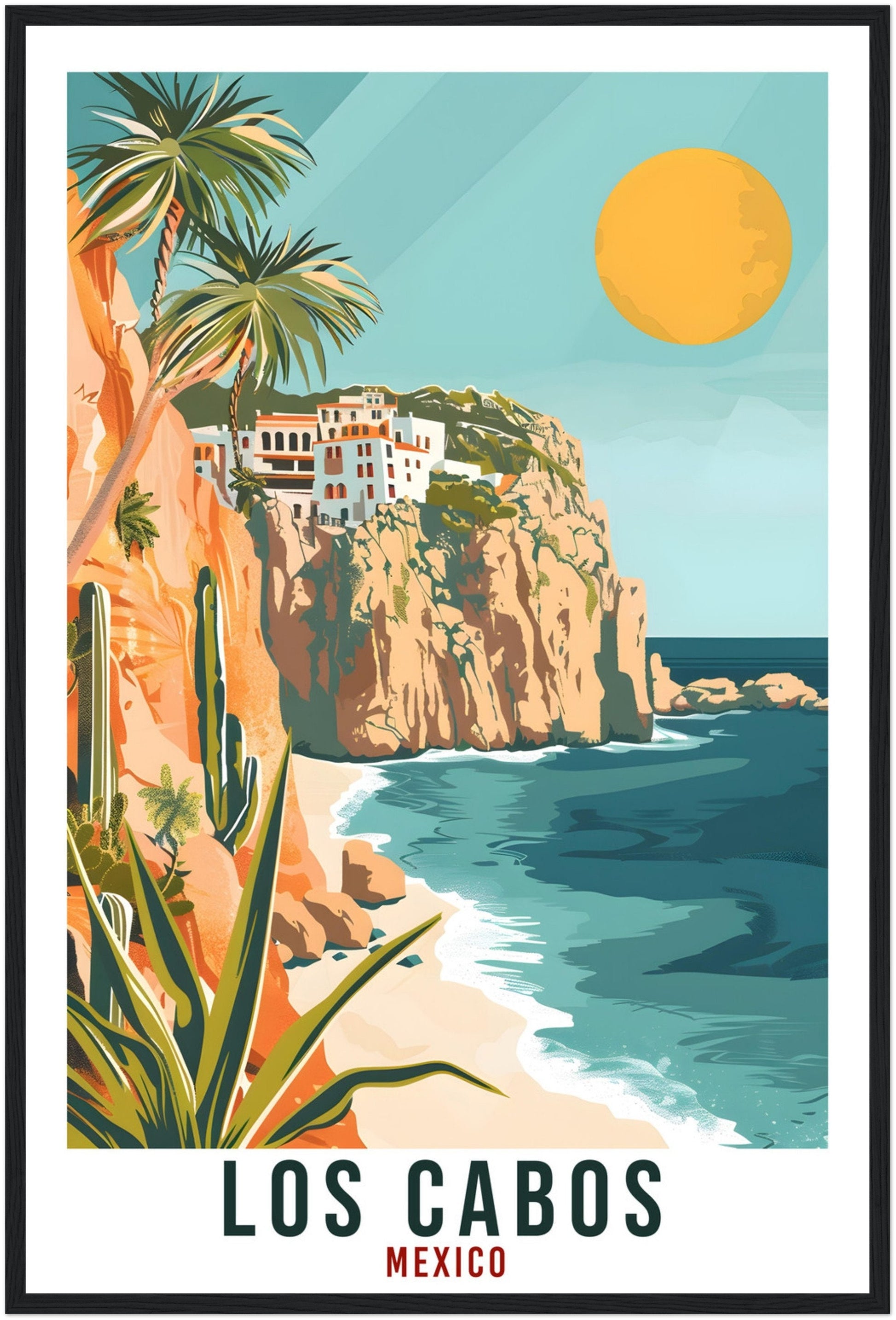 Transport yourself back to Los Cabos, Mexico. Whether you lived there, visited there or are from there, travel back with this Los Cabos travel poster. Visit the sounds, smells, tastes, colors and culture every time you look at your new travel print. Each design is an imaginative recreation of the area to illicit memories of travelling there.