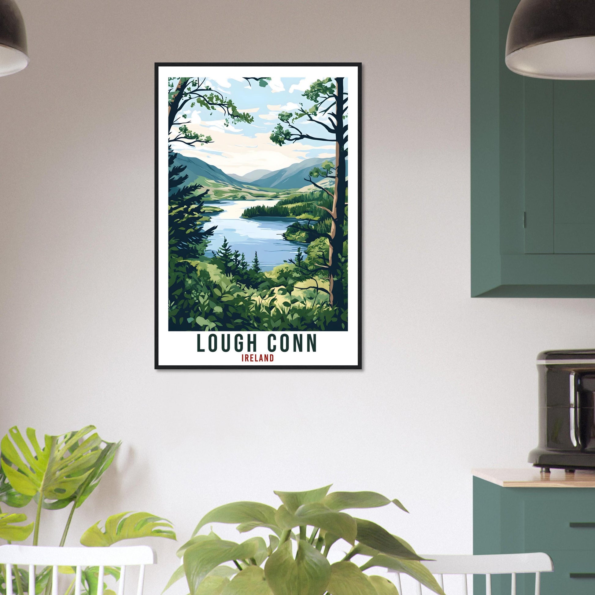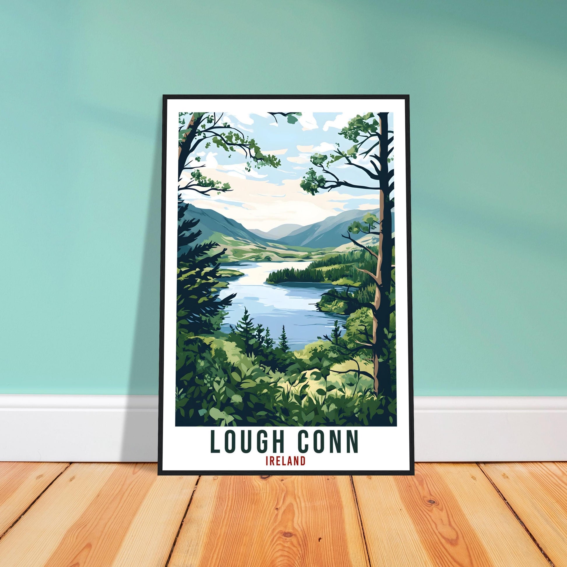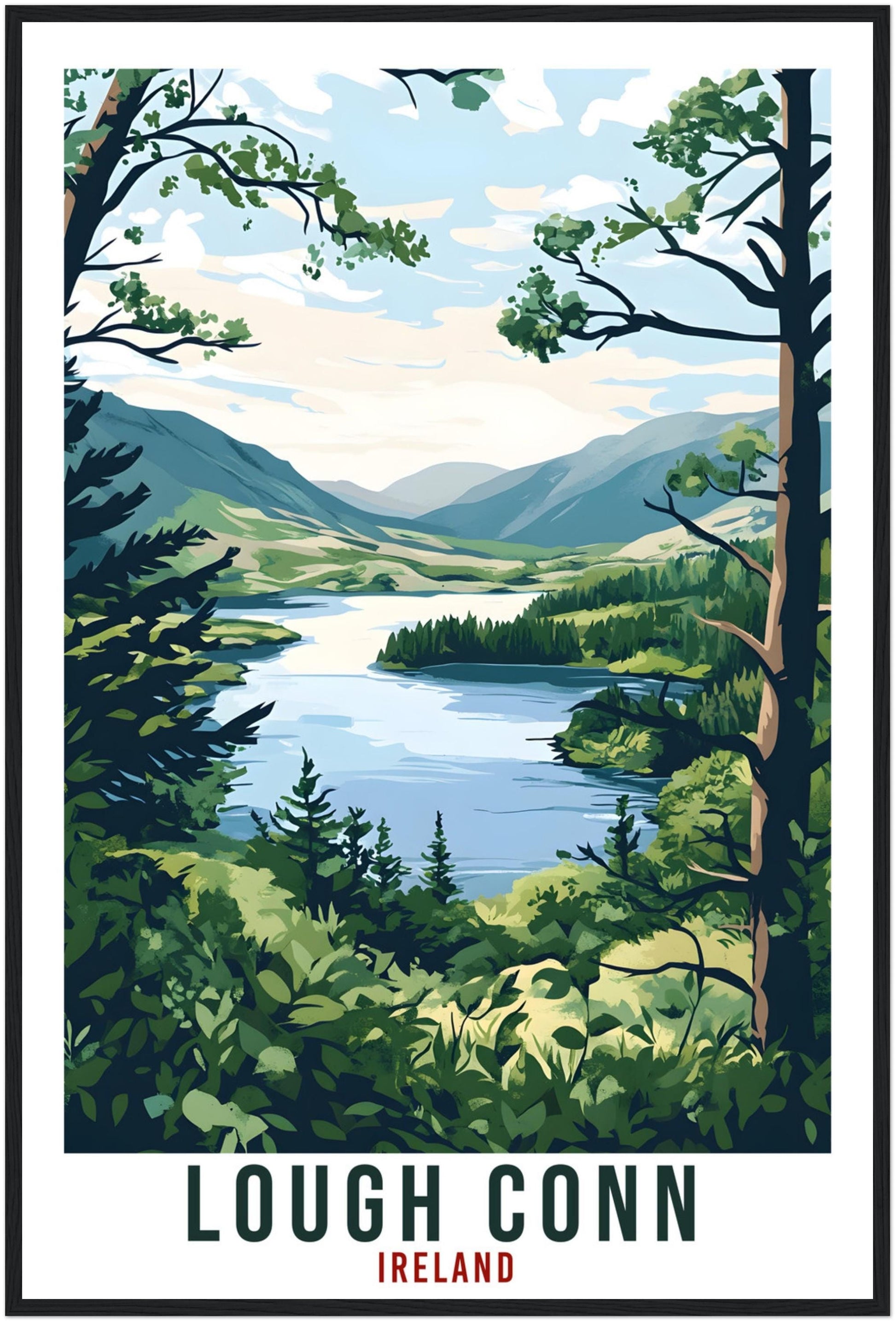 Transport yourself back to Lough Conn, County Mayo, Ireland. Whether you lived there, visited there or are from there, travel back with this Lough Conn travel poster. Visit the sounds, smells, tastes, colors and culture every time you look at your new travel print. Each design is an imaginative recreation of the area to illicit memories of travelling there.