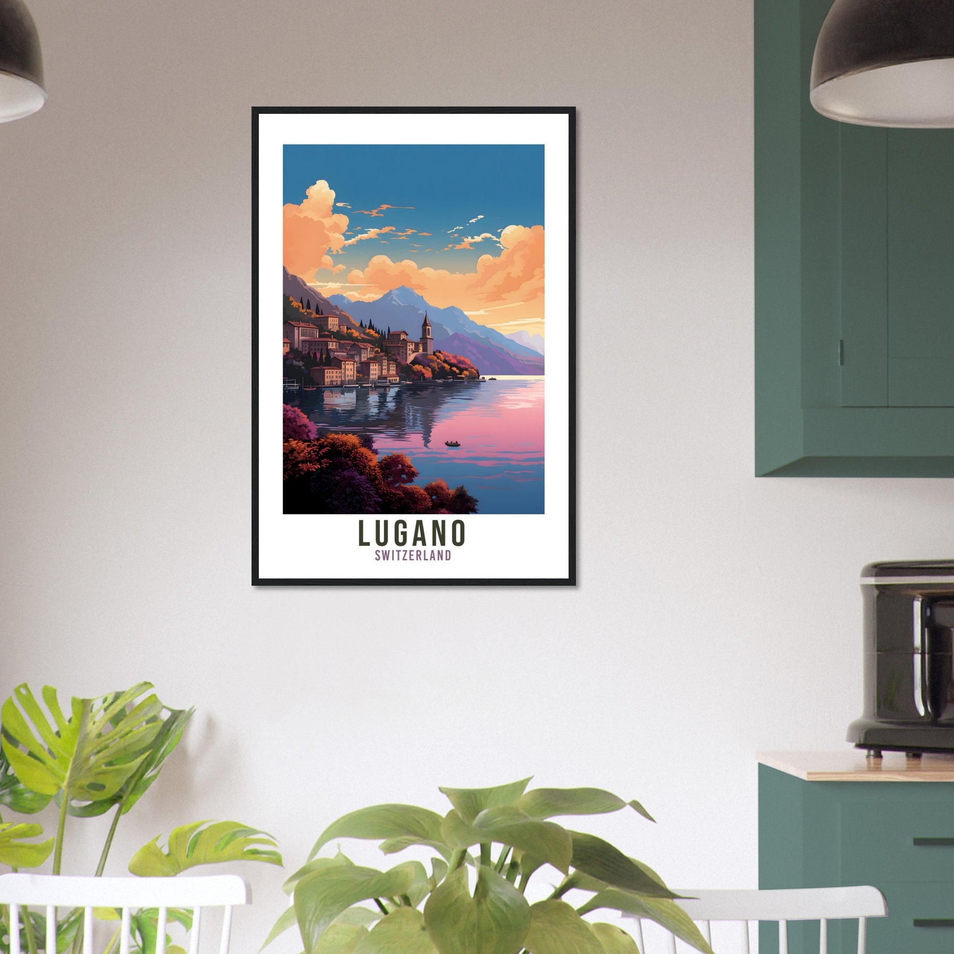 Transport yourself back to Lugano, Switzerland. Whether you lived there, visited there or are from there, travel back with this Lugano travel poster. Visit the sounds, smells, tastes, colors and culture every time you look at your new travel print.