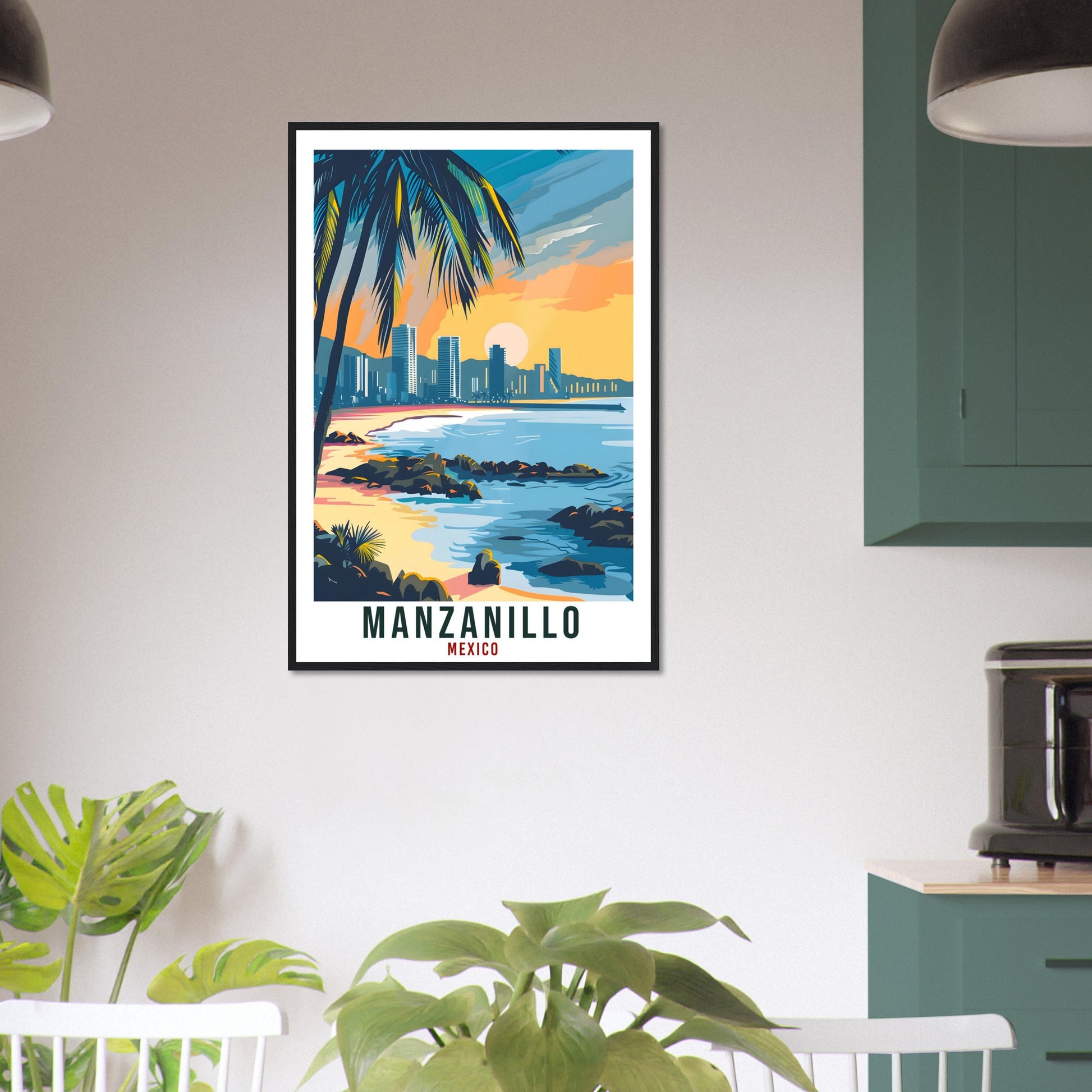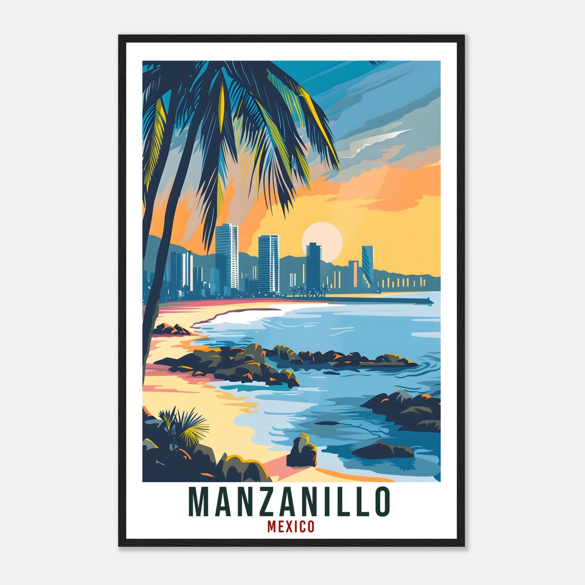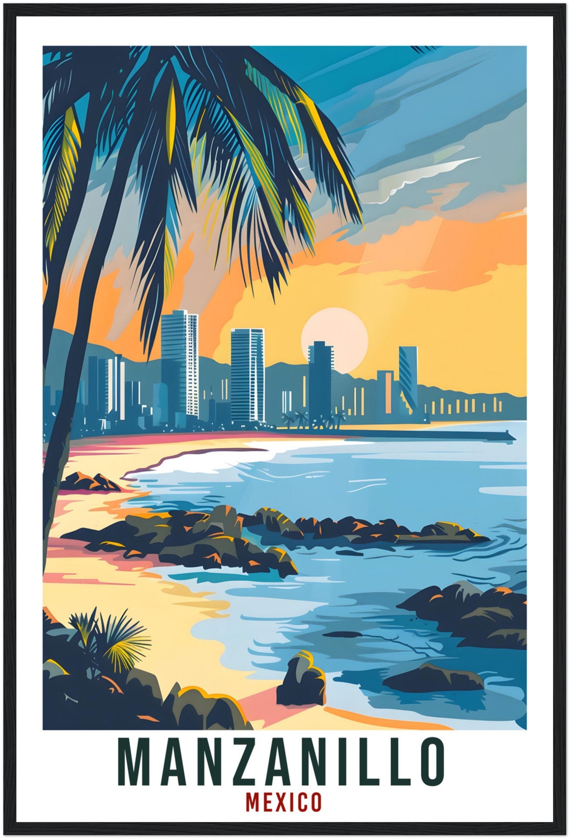 Transport yourself back to Manzanillo, Mexico. Whether you lived there, visited there or are from there, travel back with this Manzanillo travel poster. Visit the sounds, smells, tastes, colors and culture every time you look at your new travel print. Each design is an imaginative recreation of the area to illicit memories of travelling there.