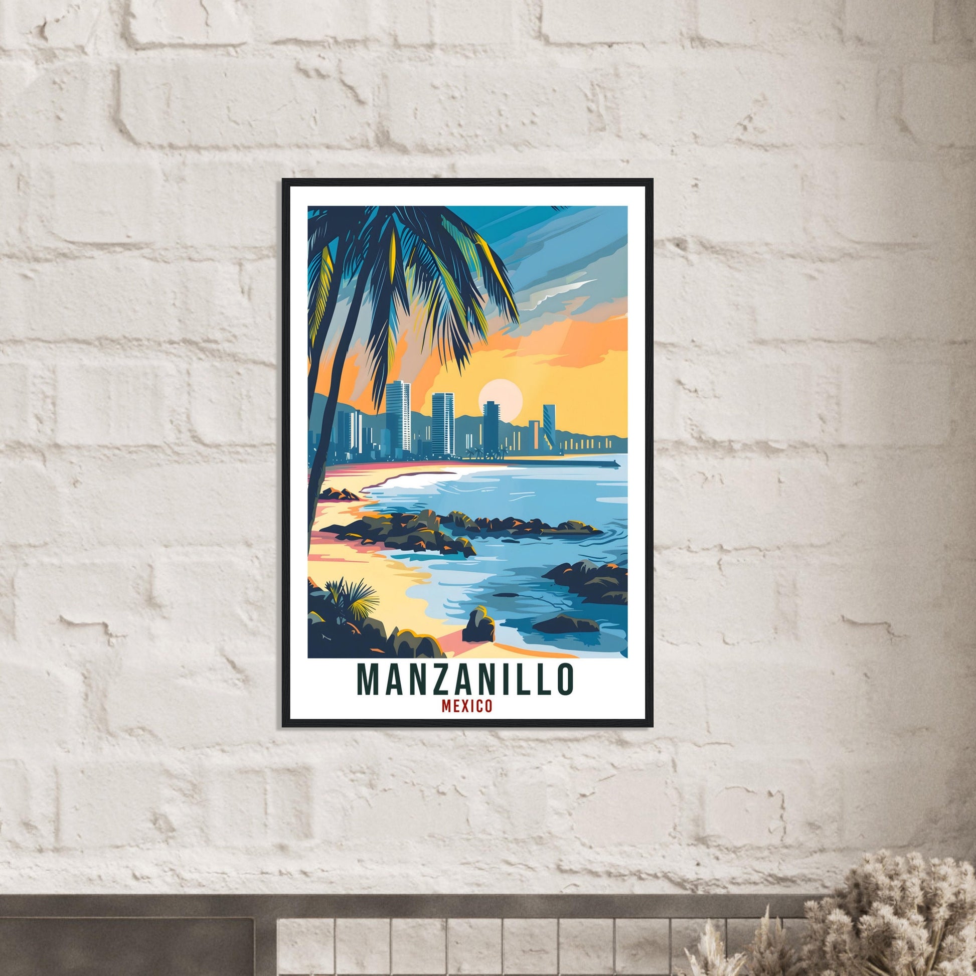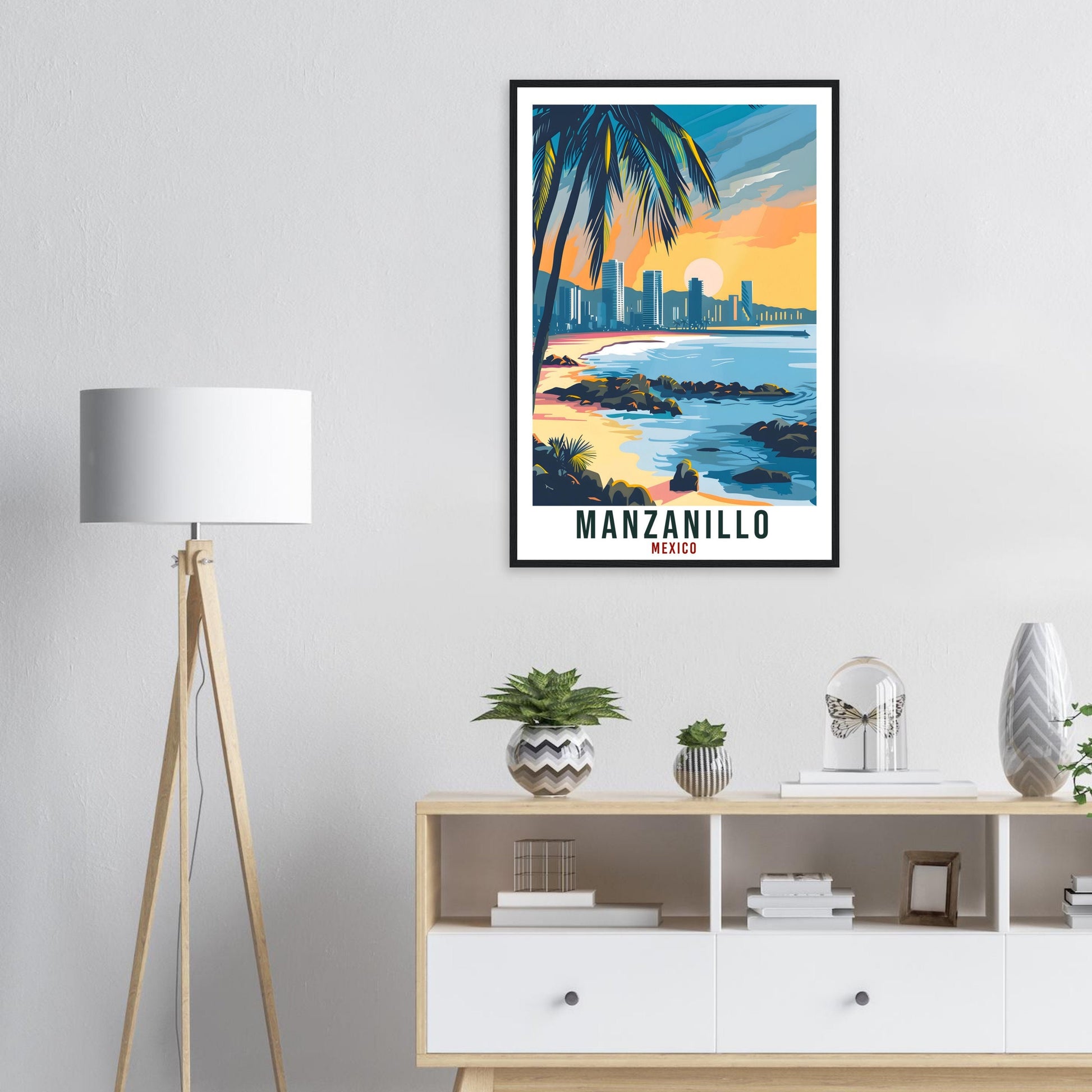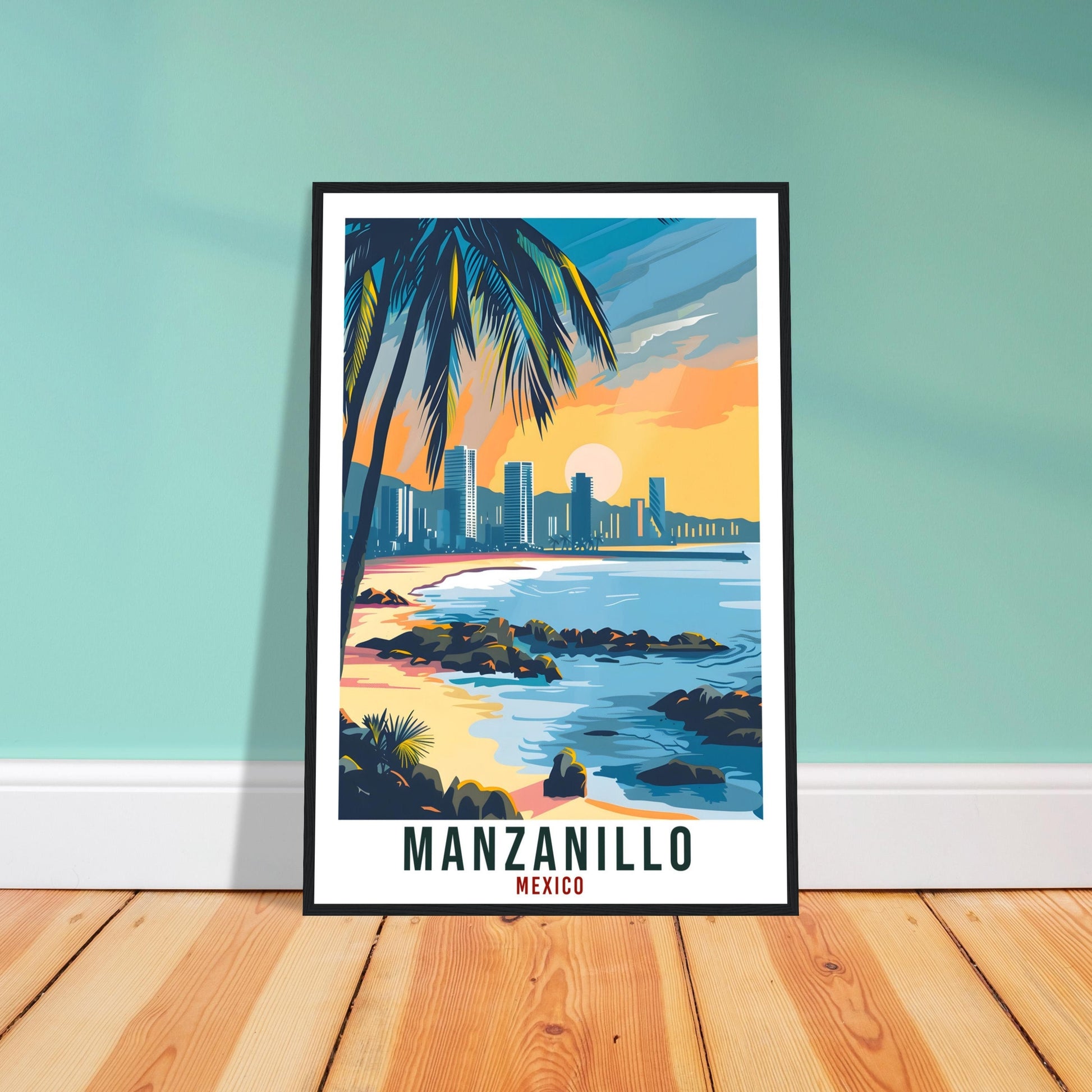 Transport yourself back to Manzanillo, Mexico. Whether you lived there, visited there or are from there, travel back with this Manzanillo travel poster. Visit the sounds, smells, tastes, colors and culture every time you look at your new travel print. Each design is an imaginative recreation of the area to illicit memories of travelling there.