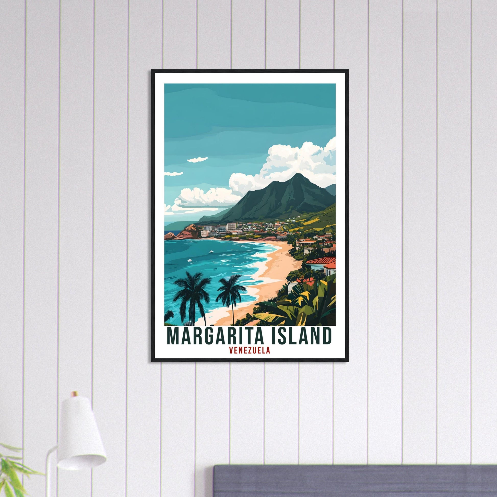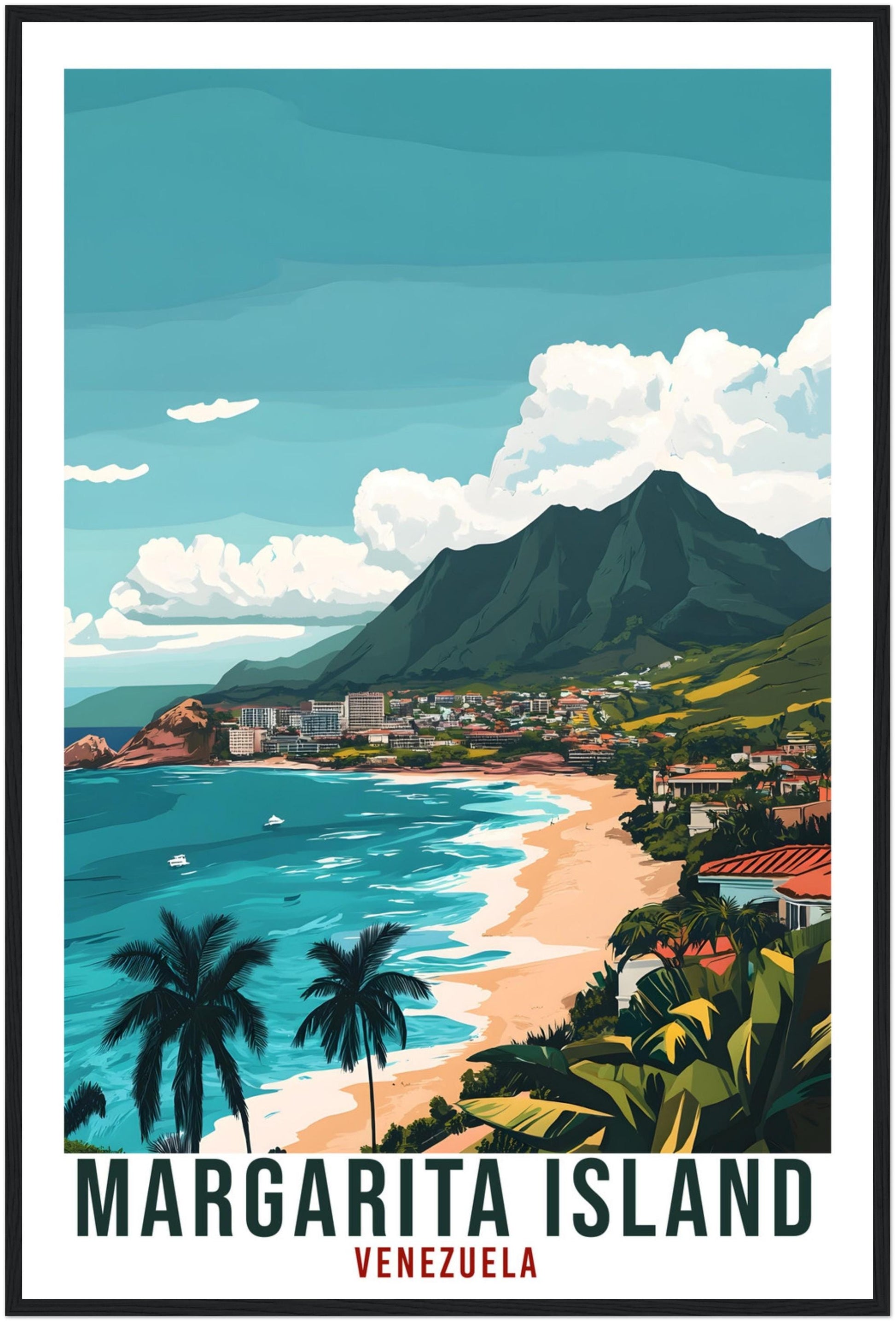 Transport yourself back to Margarita Island , Venezuela. Whether you lived there, visited there or are from there, travel back with this Margarita Island travel poster. Visit the sounds, smells, tastes, colors and culture every time you look at your new travel print. Each design is an imaginative recreation of the area to illicit memories of travelling there.
