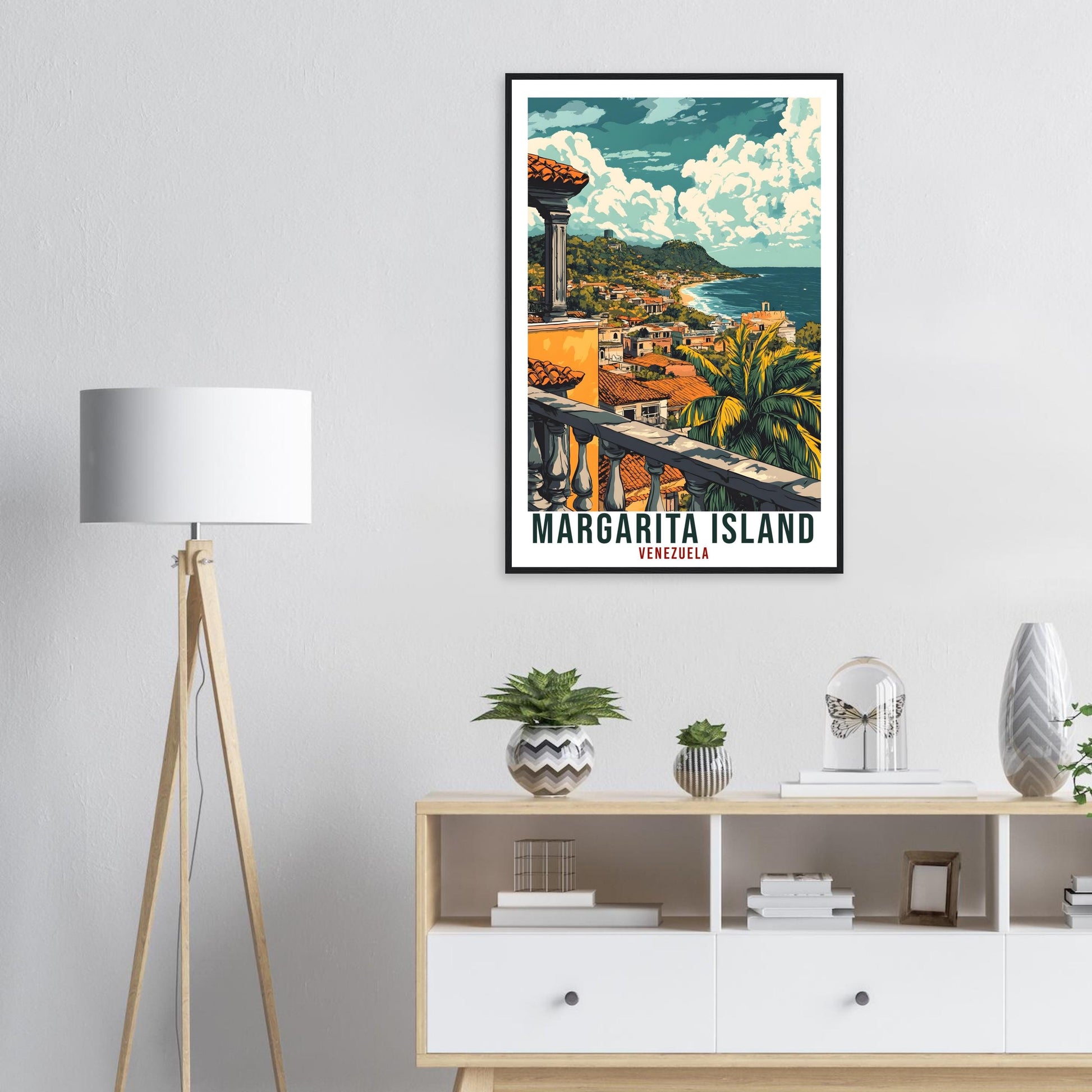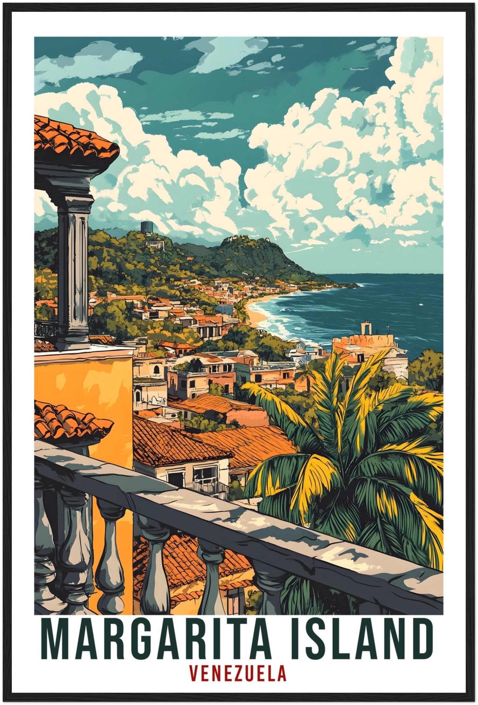 Transport yourself back to Margarita Island , Venezuela. Whether you lived there, visited there or are from there, travel back with this Margarita Island travel poster. Visit the sounds, smells, tastes, colors and culture every time you look at your new travel print. Each design is an imaginative recreation of the area to illicit memories of travelling there.