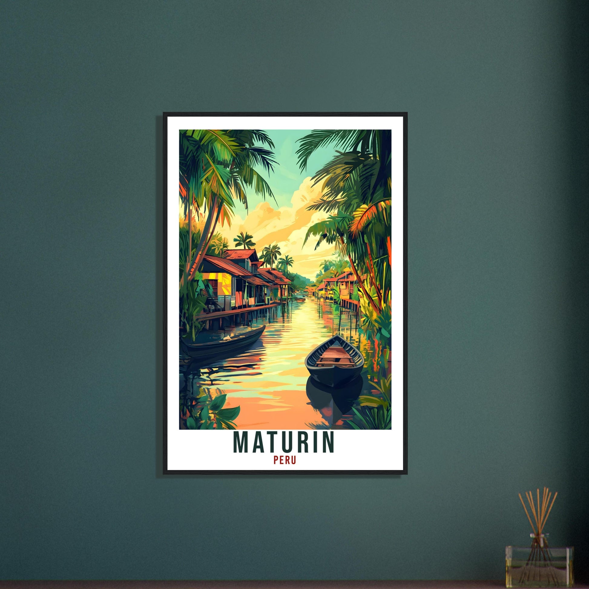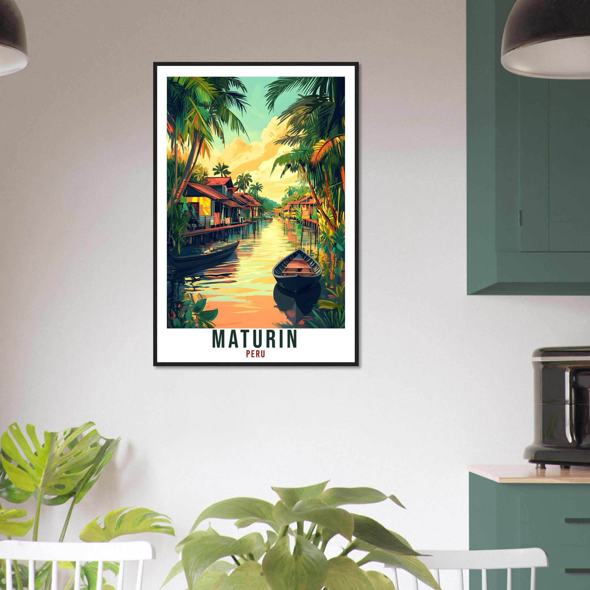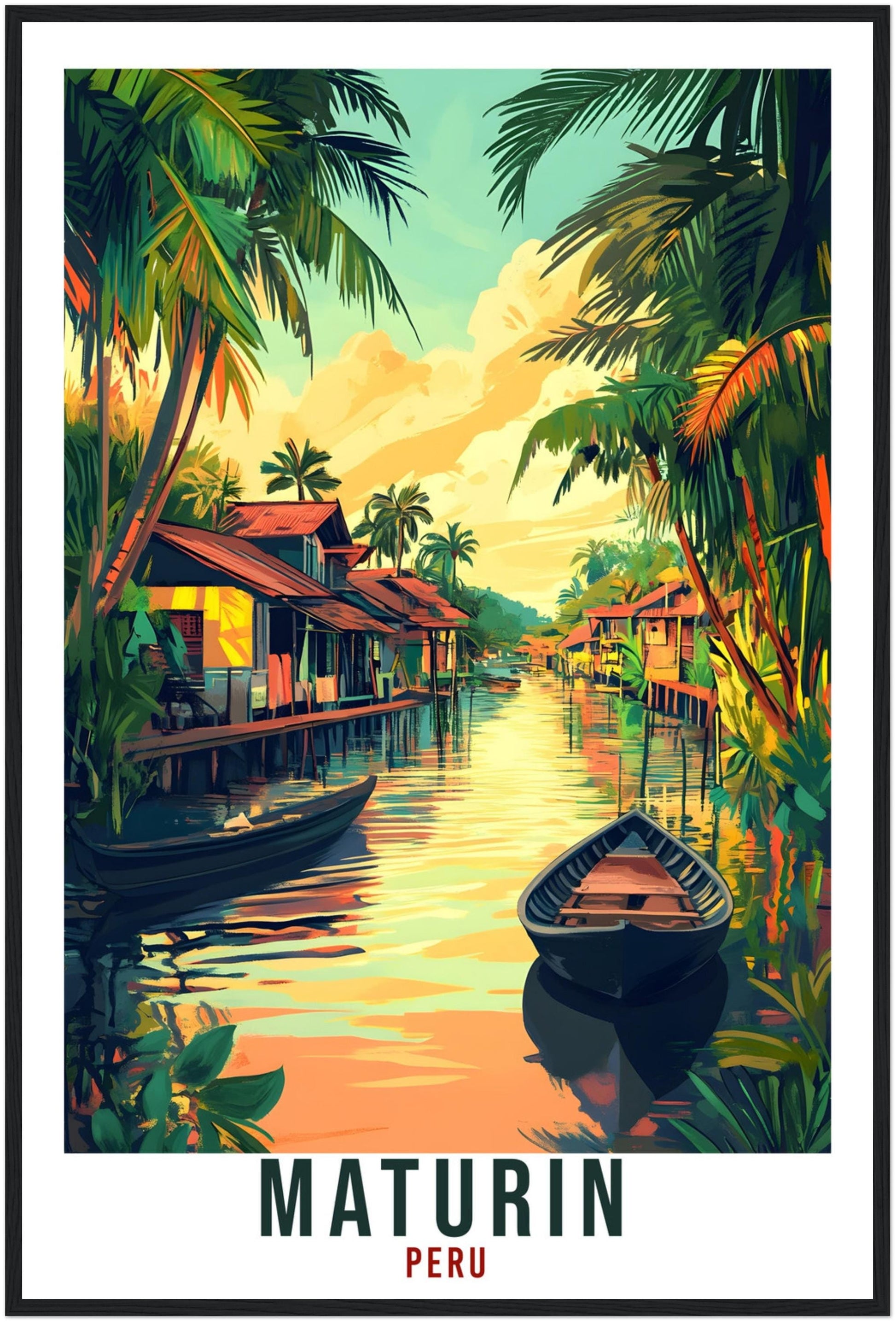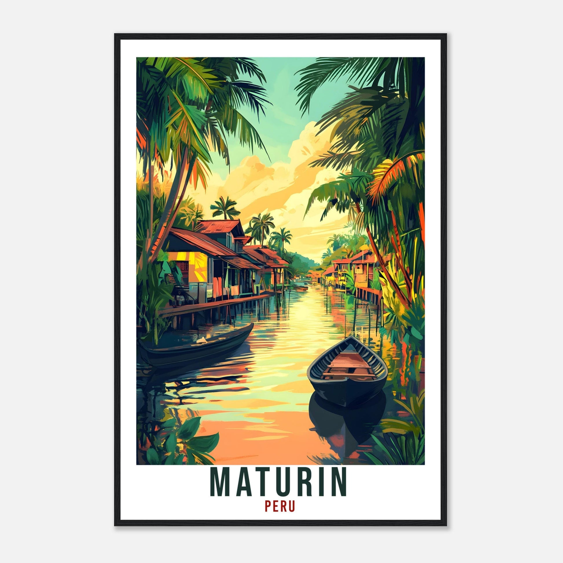 Transport yourself back to Maturin, Peru. Whether you lived there, visited there or are from there, travel back with this Maturin travel poster. Visit the sounds, smells, tastes, colors and culture every time you look at your new travel print. Each design is an imaginative recreation of the area to illicit memories of travelling there.