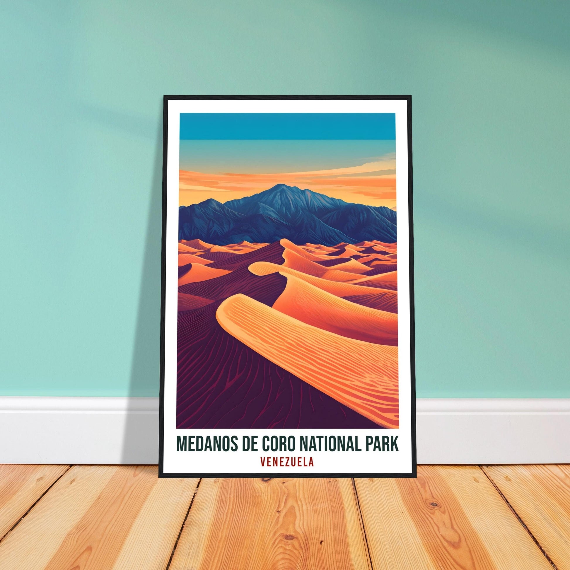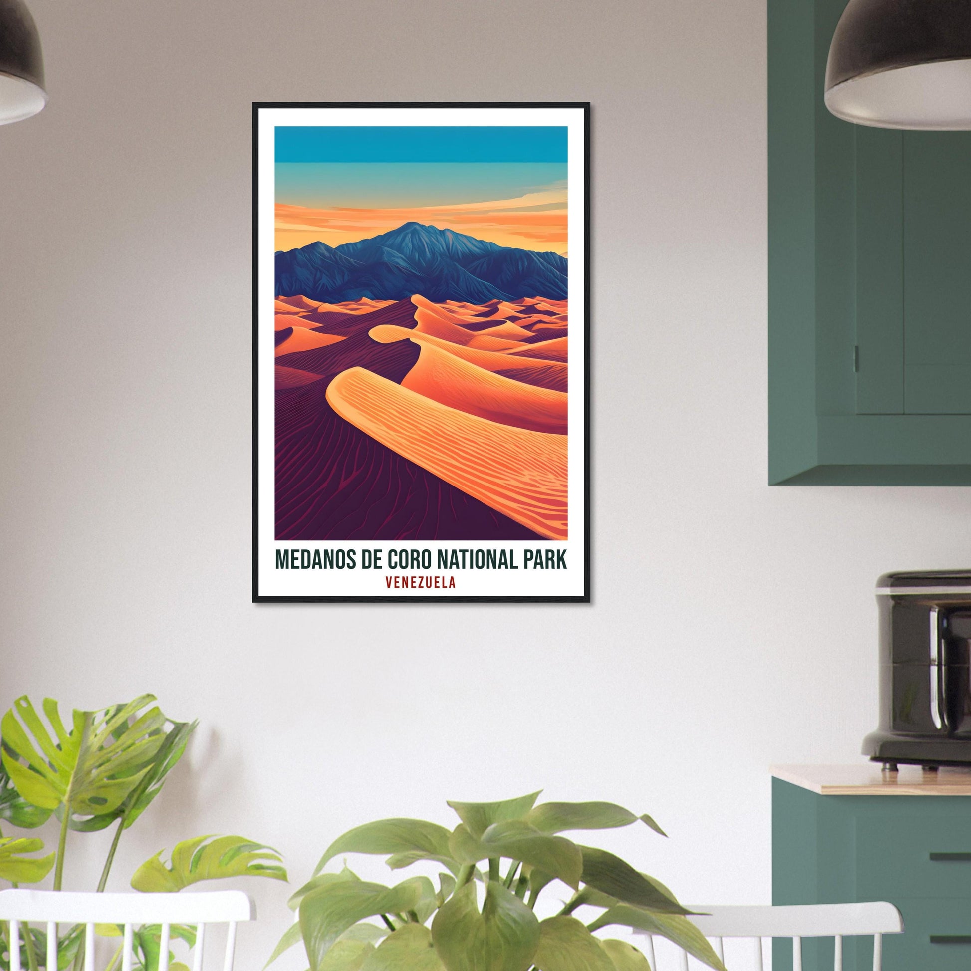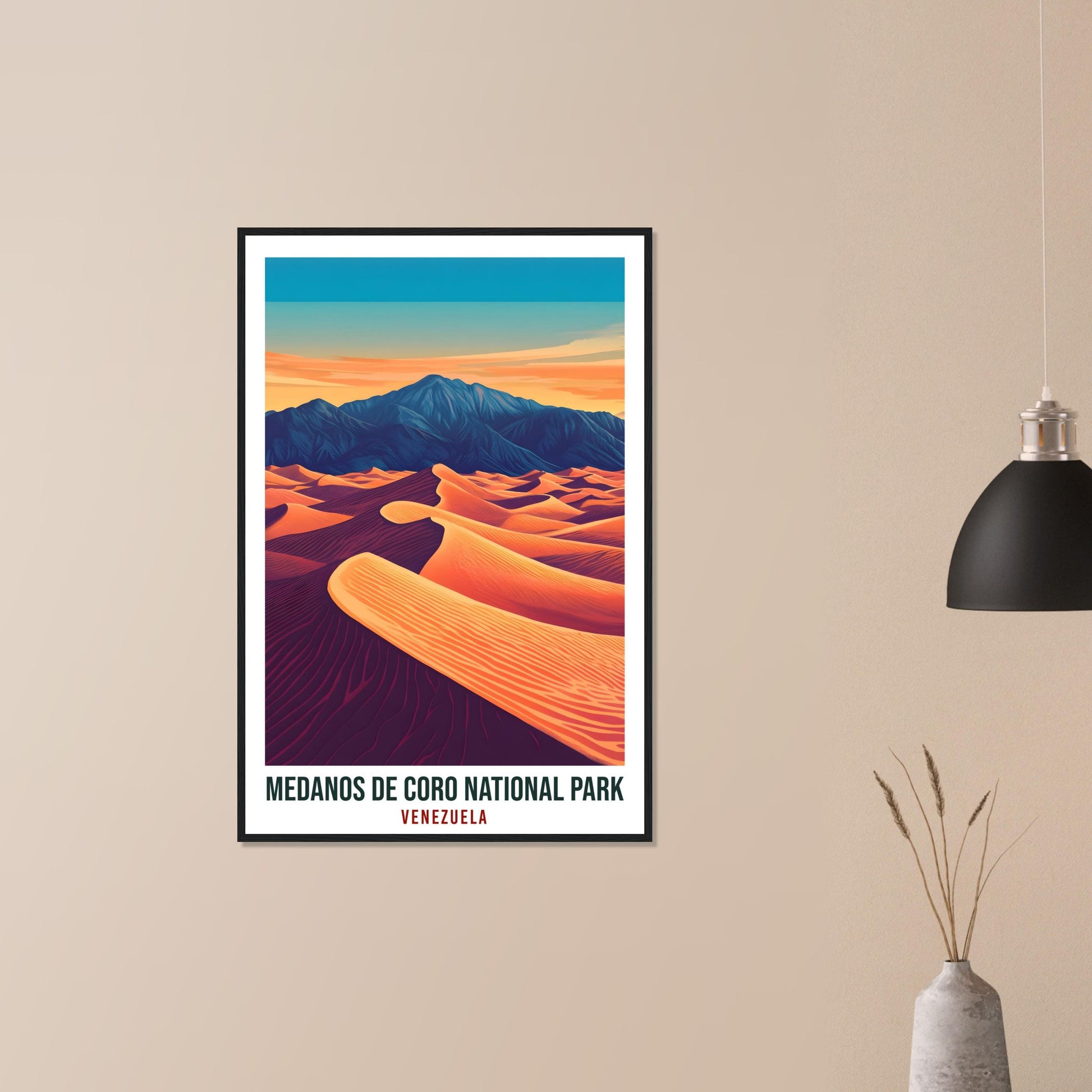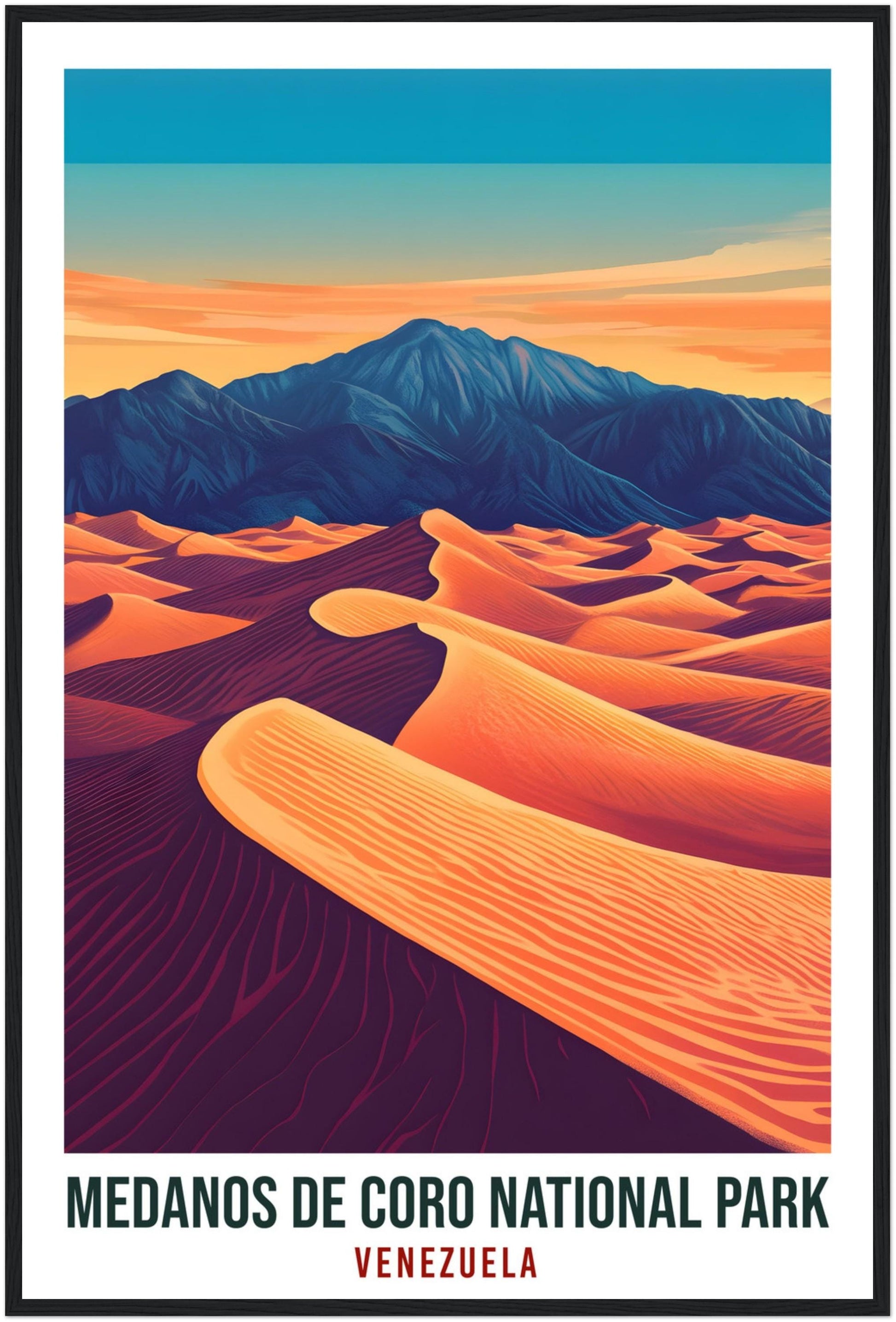 Transport yourself back to Medanos De Coro National Park, Venezuela. Whether you lived there, visited there or are from there, travel back with this Medanos De Coro National Park travel poster. Visit the sounds, smells, tastes, colors and culture every time you look at your new travel print. Each design is an imaginative recreation of the area to illicit memories of travelling there.