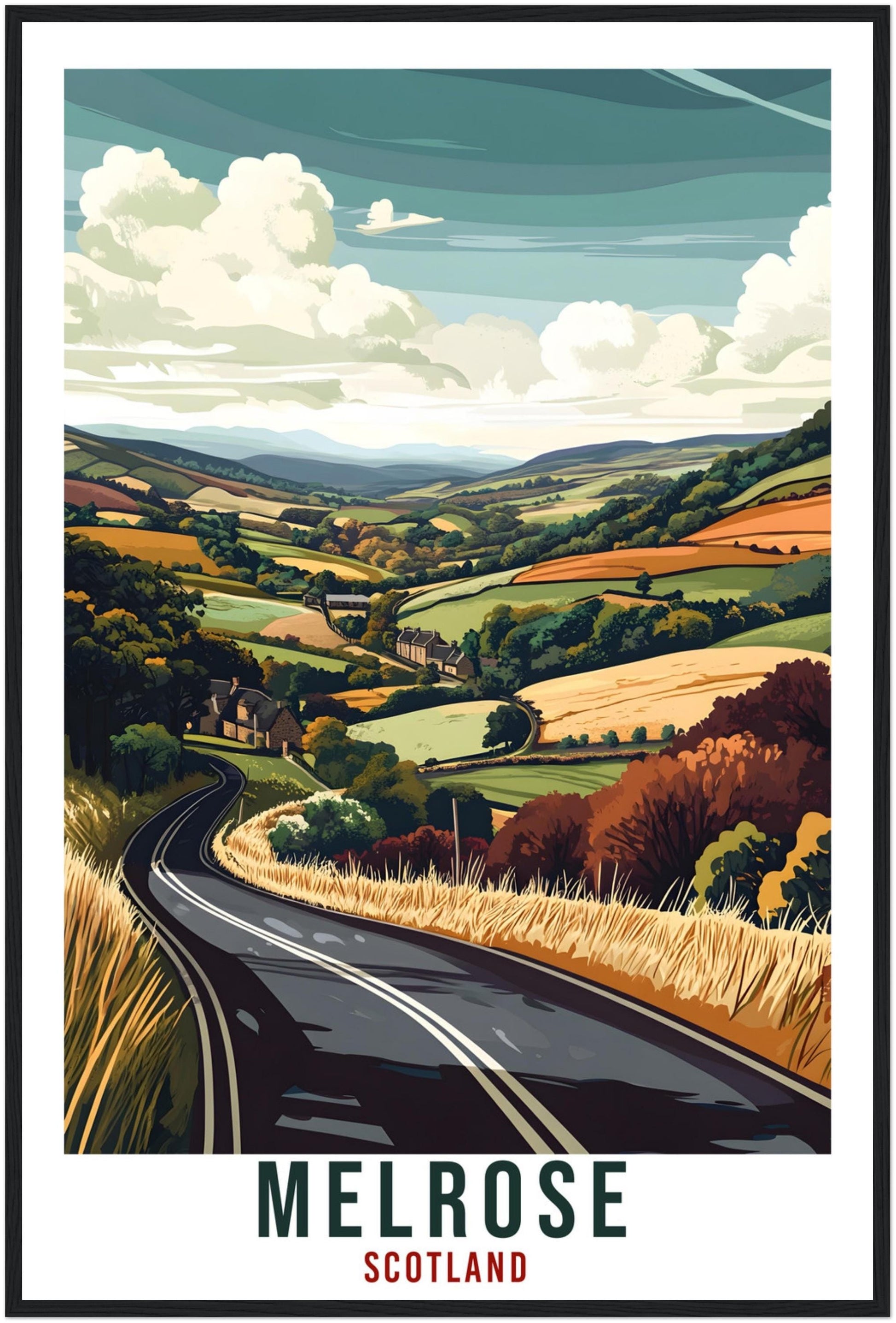 Transport yourself back to Melrose, Scotland. Whether you lived there, visited there or are from there, travel back with this Melrose travel poster. Visit the sounds, smells, tastes, colors and culture every time you look at your new travel print. Each design is an imaginative recreation of the area to illicit memories of travelling there.