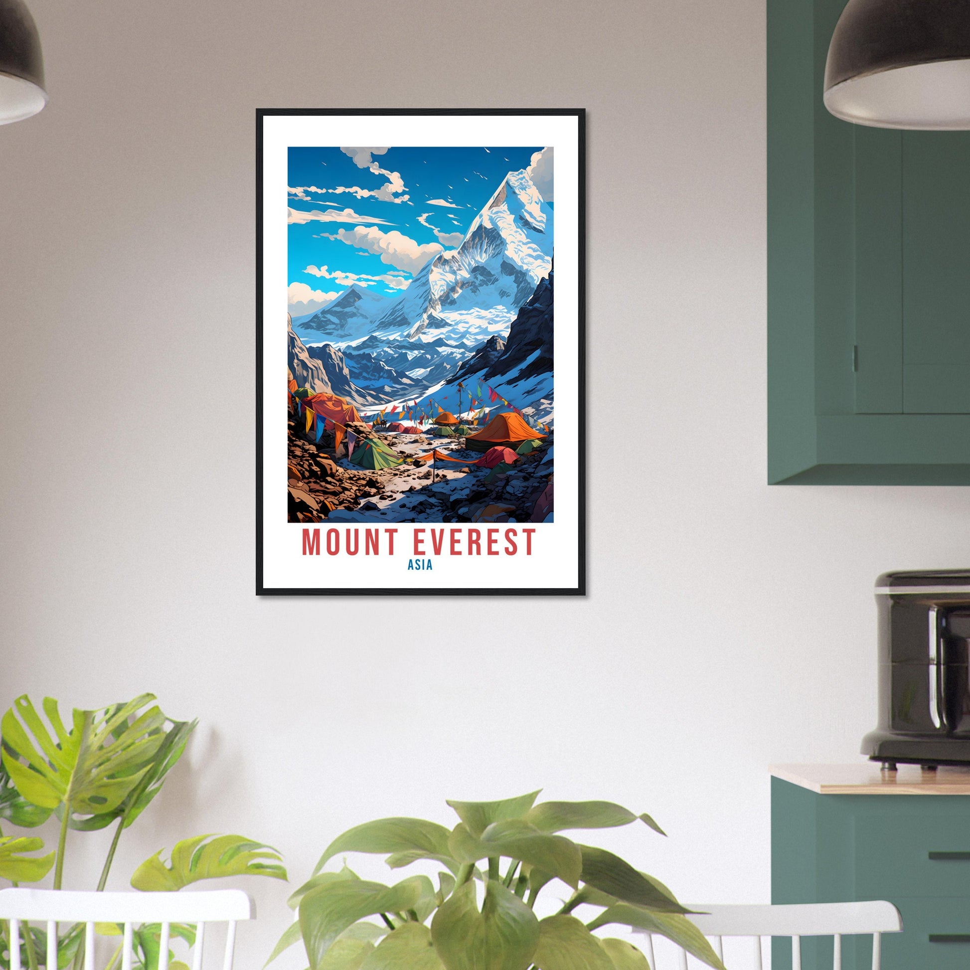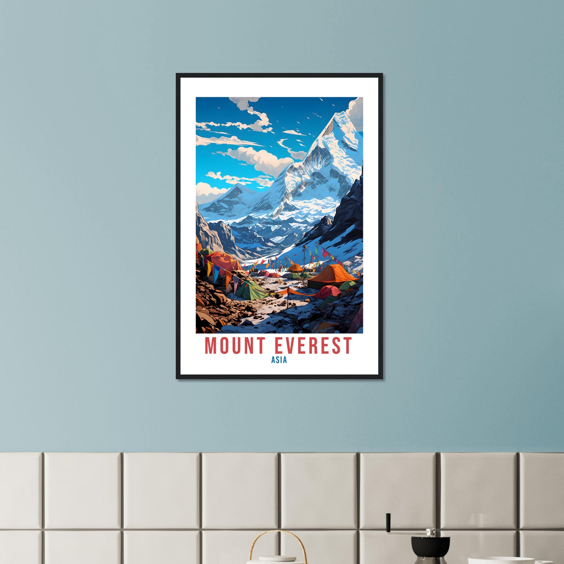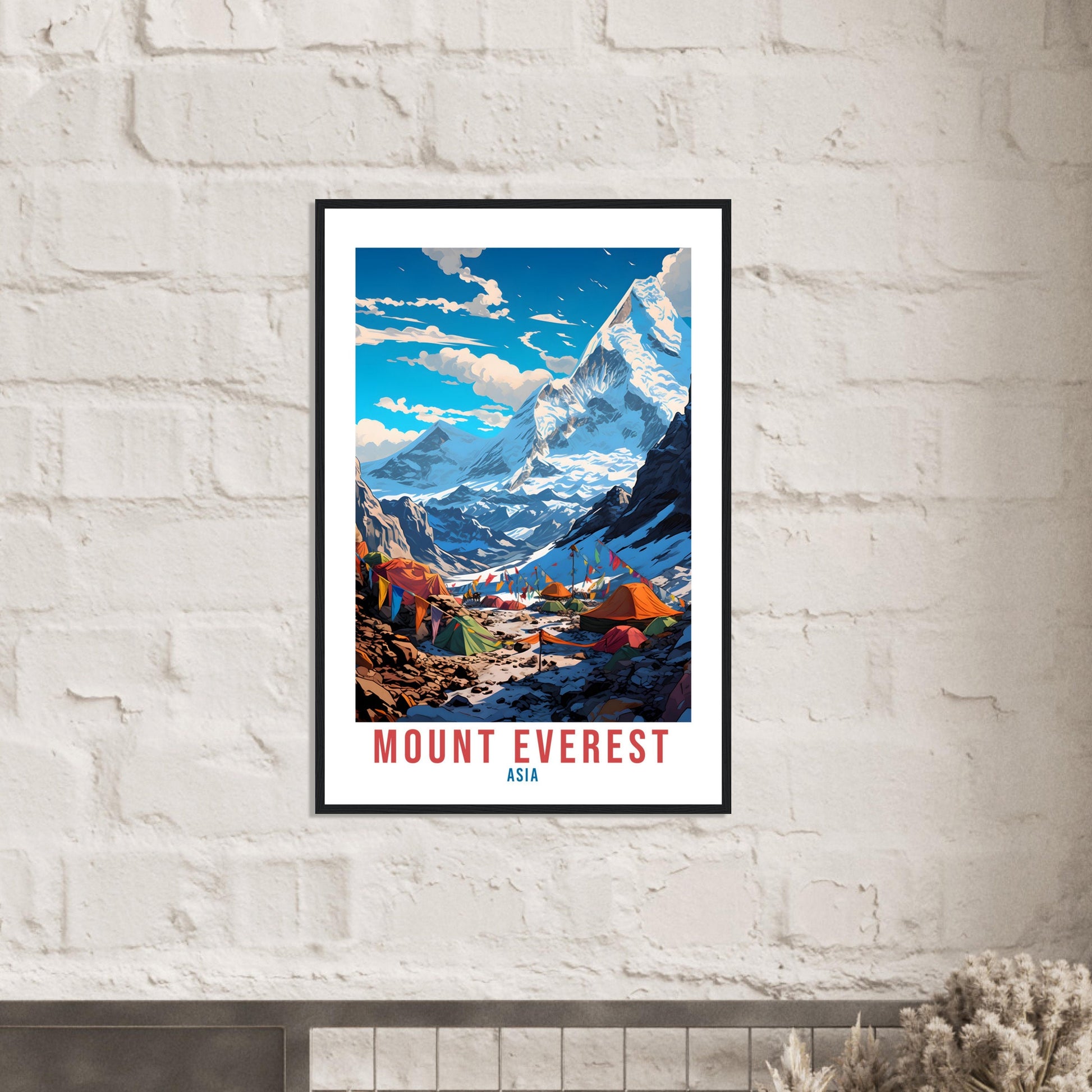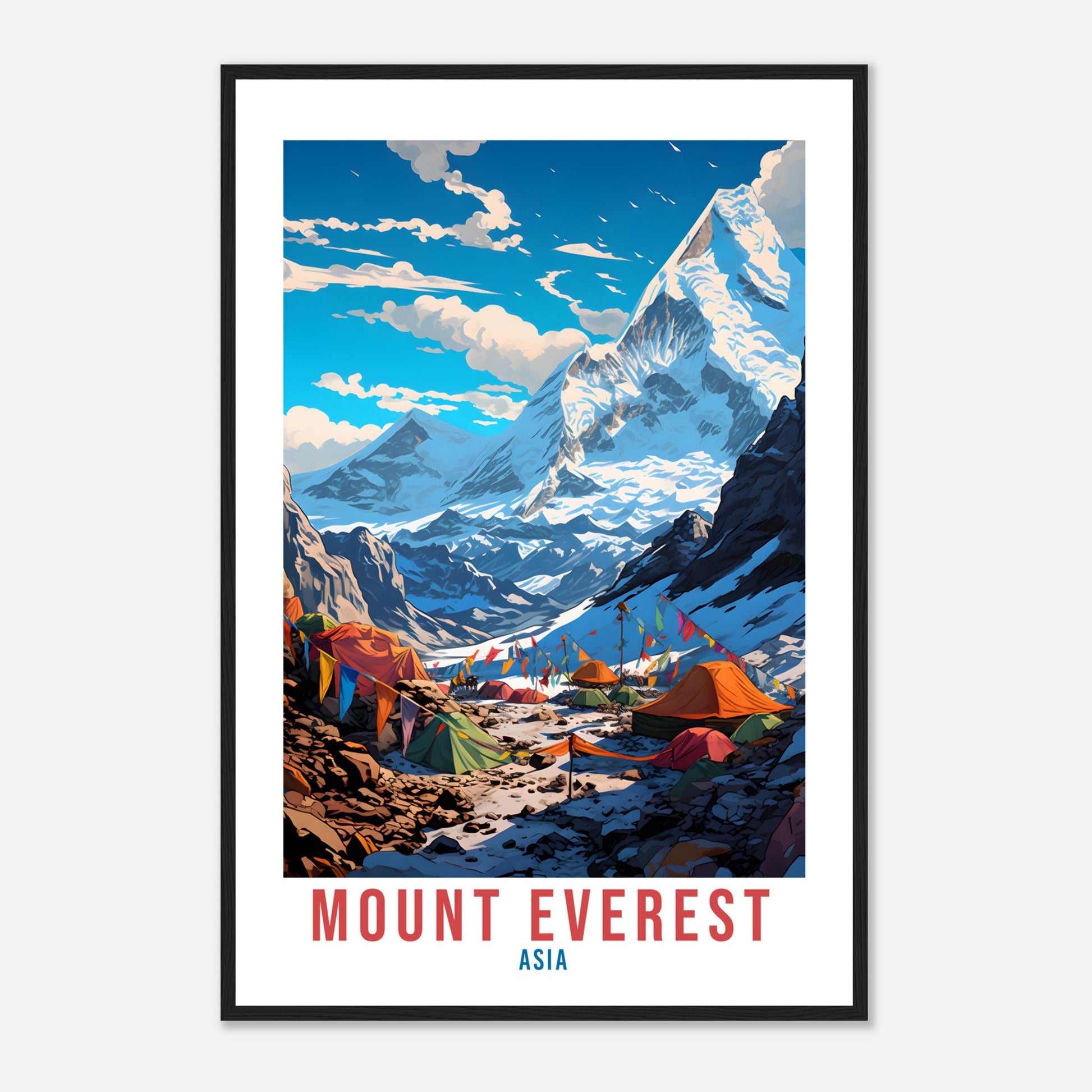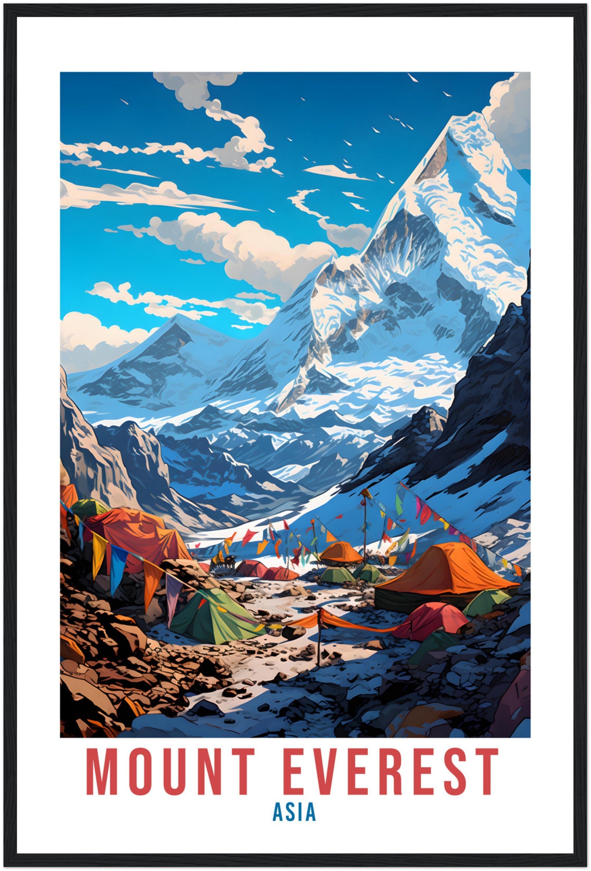 Transport yourself back to Mount Everest, Asia. Whether you lived there, visited there or are from there, travel back with this Mount Everest travel poster. Visit the sounds, smells, tastes, colors and culture every time you look at your new travel print.