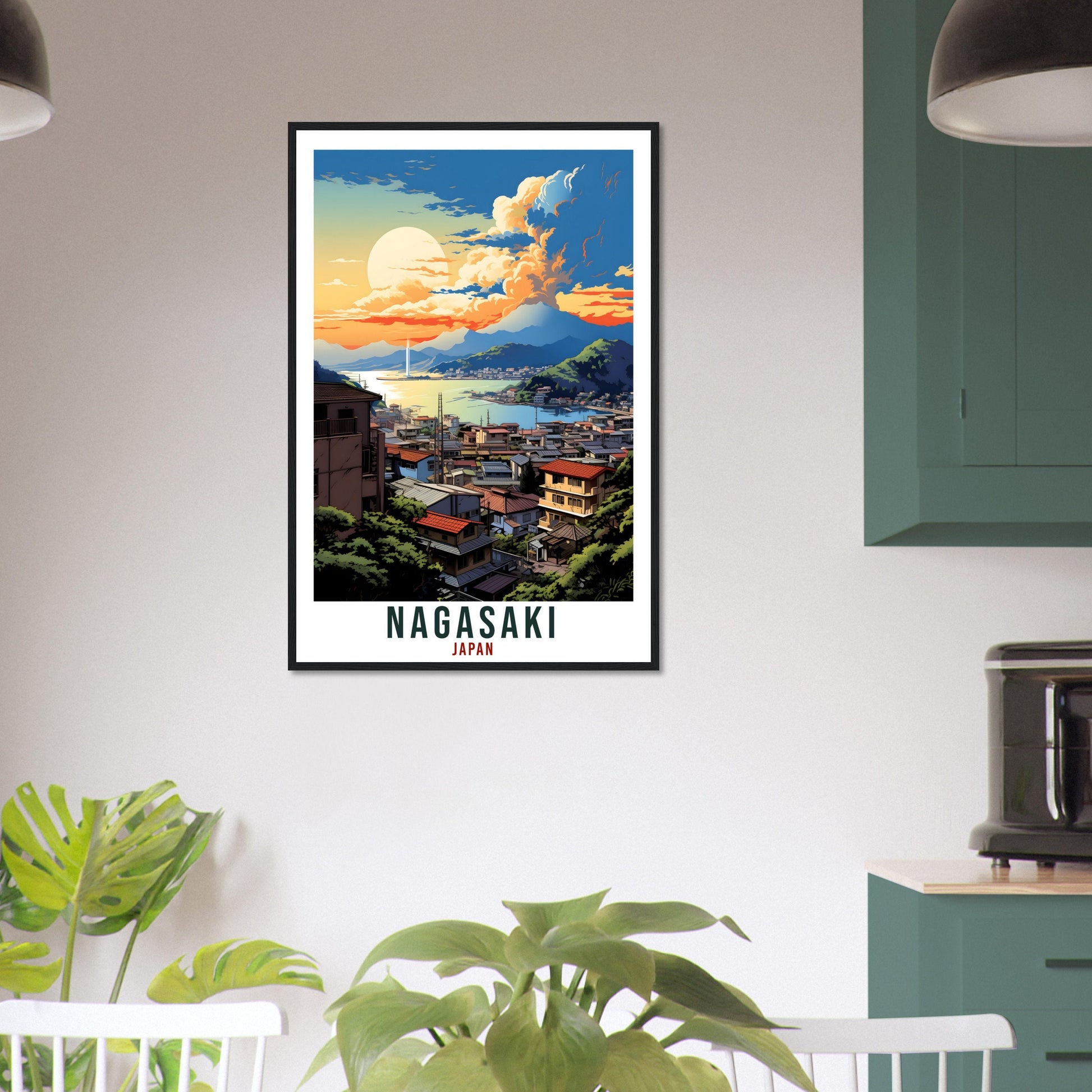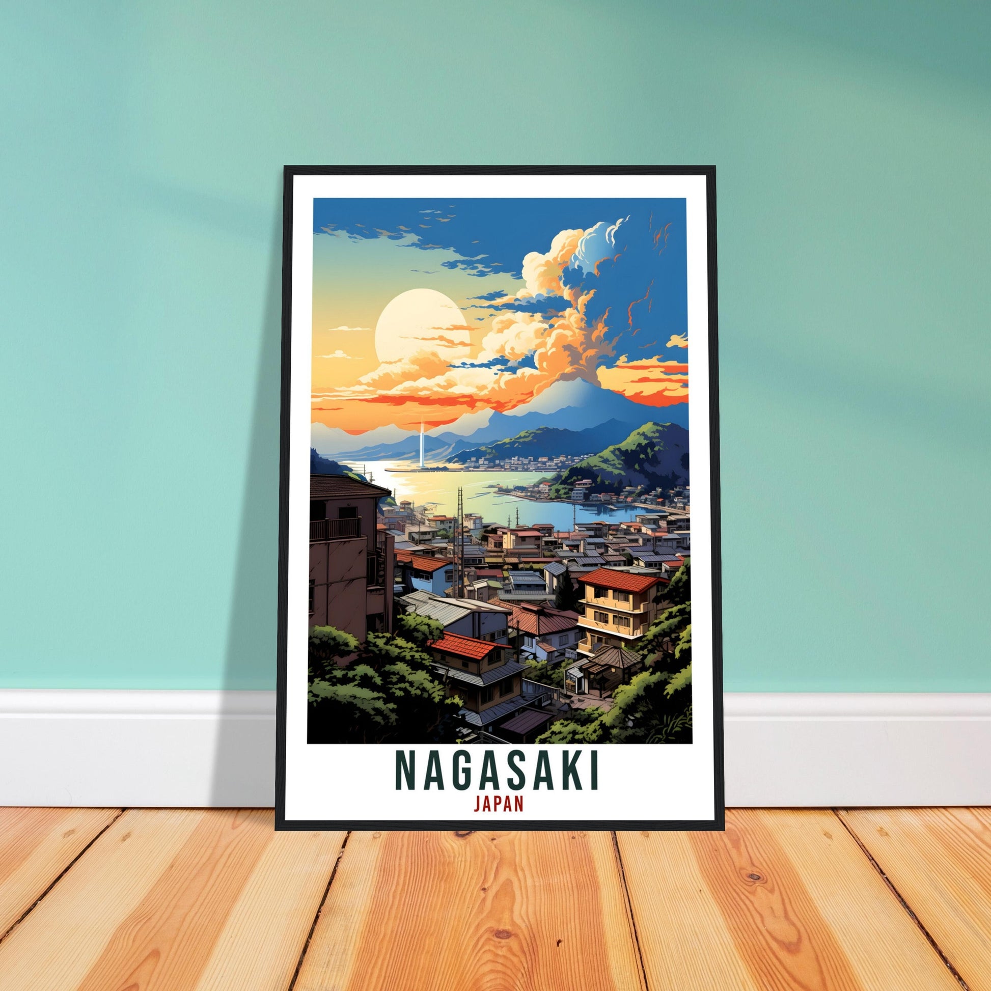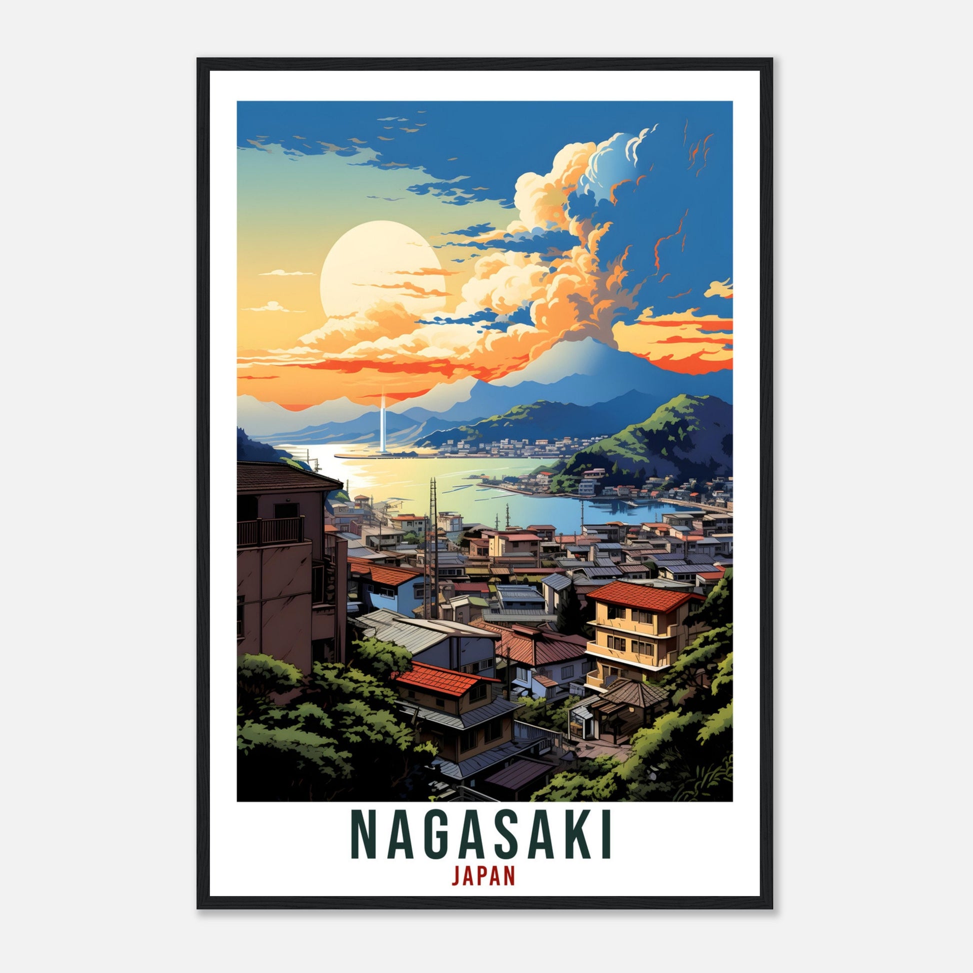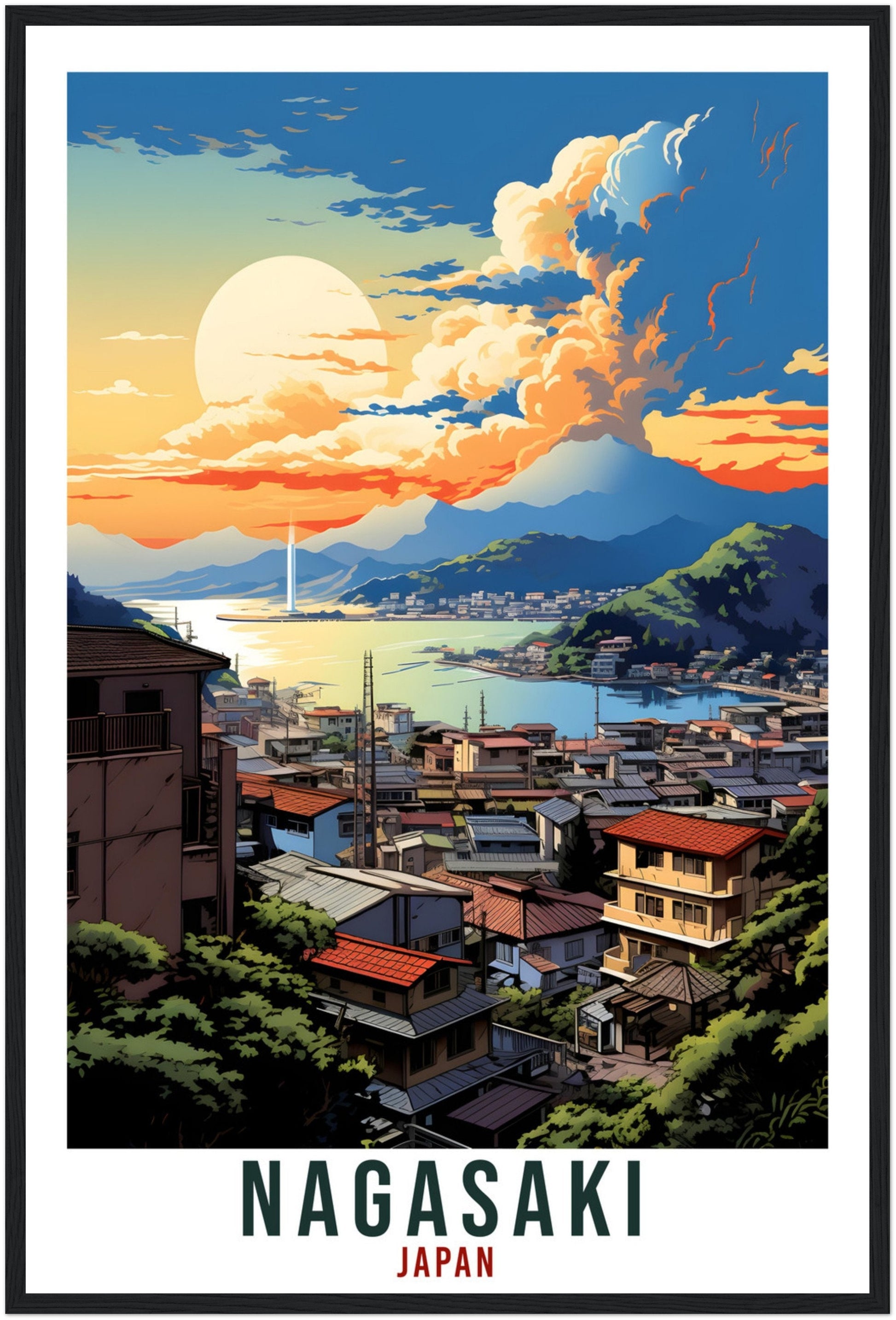 Transport yourself back to Nagasaki, Japan. Whether you lived there, visited there or are from there, travel back with this Nagasaki travel poster. Visit the sounds, smells, tastes, colors and culture every time you look at your new travel print.