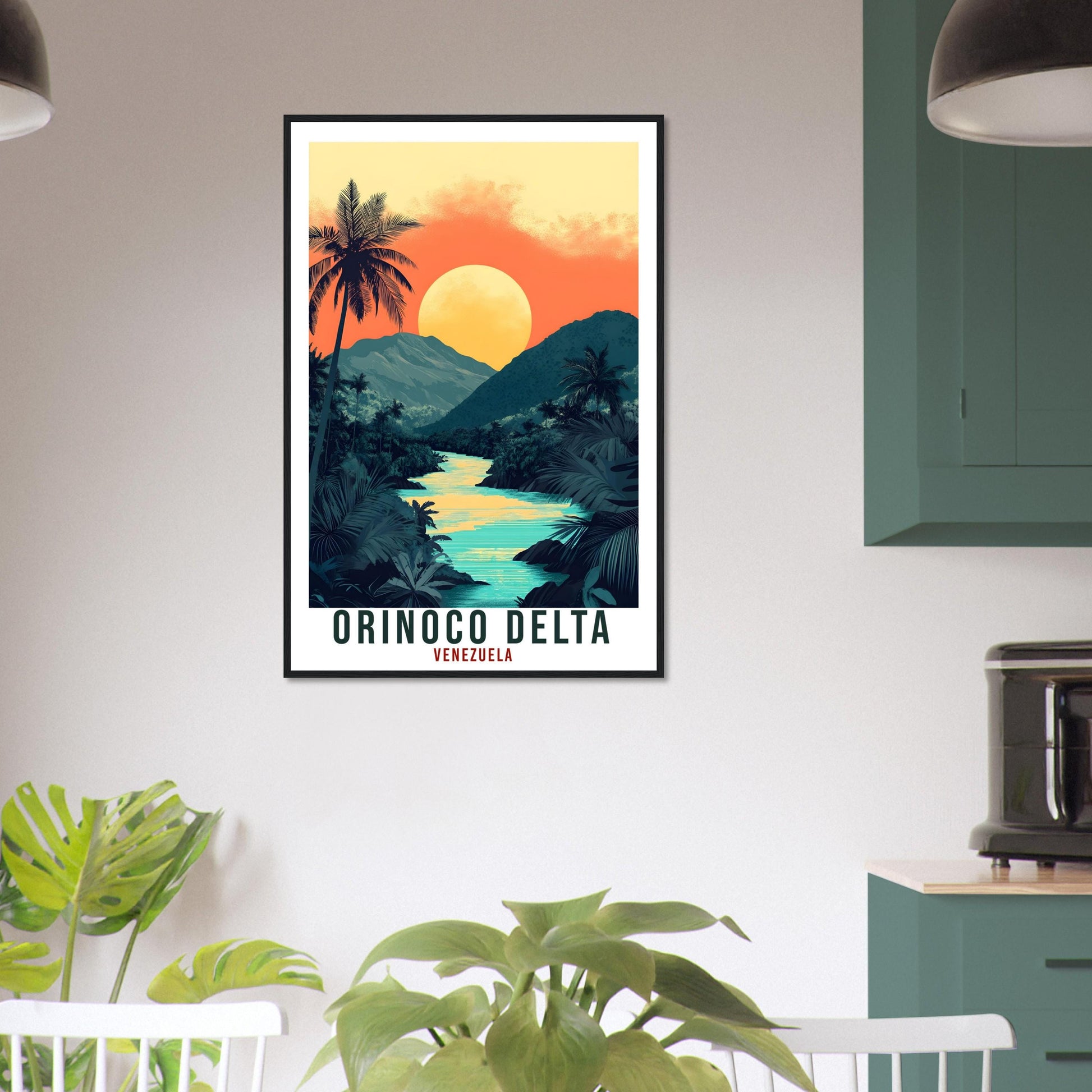 Transport yourself back to Orinoco Delta, Venezuela. Whether you lived there, visited there or are from there, travel back with this Orinoco Delta travel poster. Visit the sounds, smells, tastes, colors and culture every time you look at your new travel print. Each design is an imaginative recreation of the area to illicit memories of travelling there.