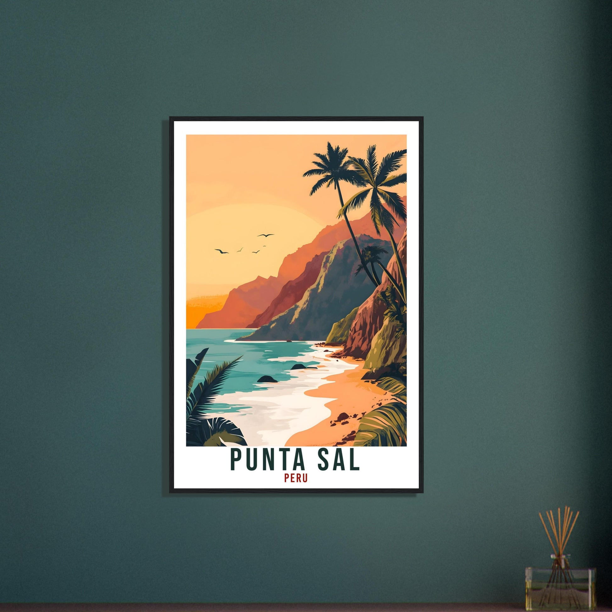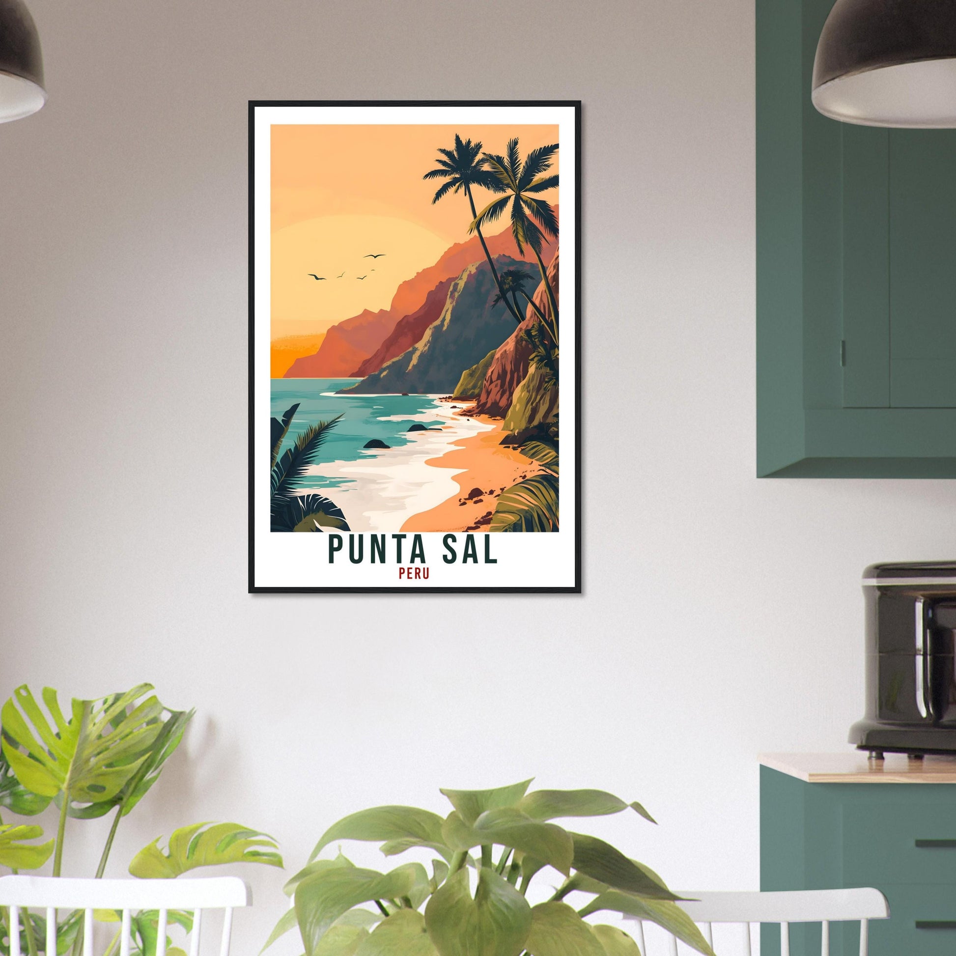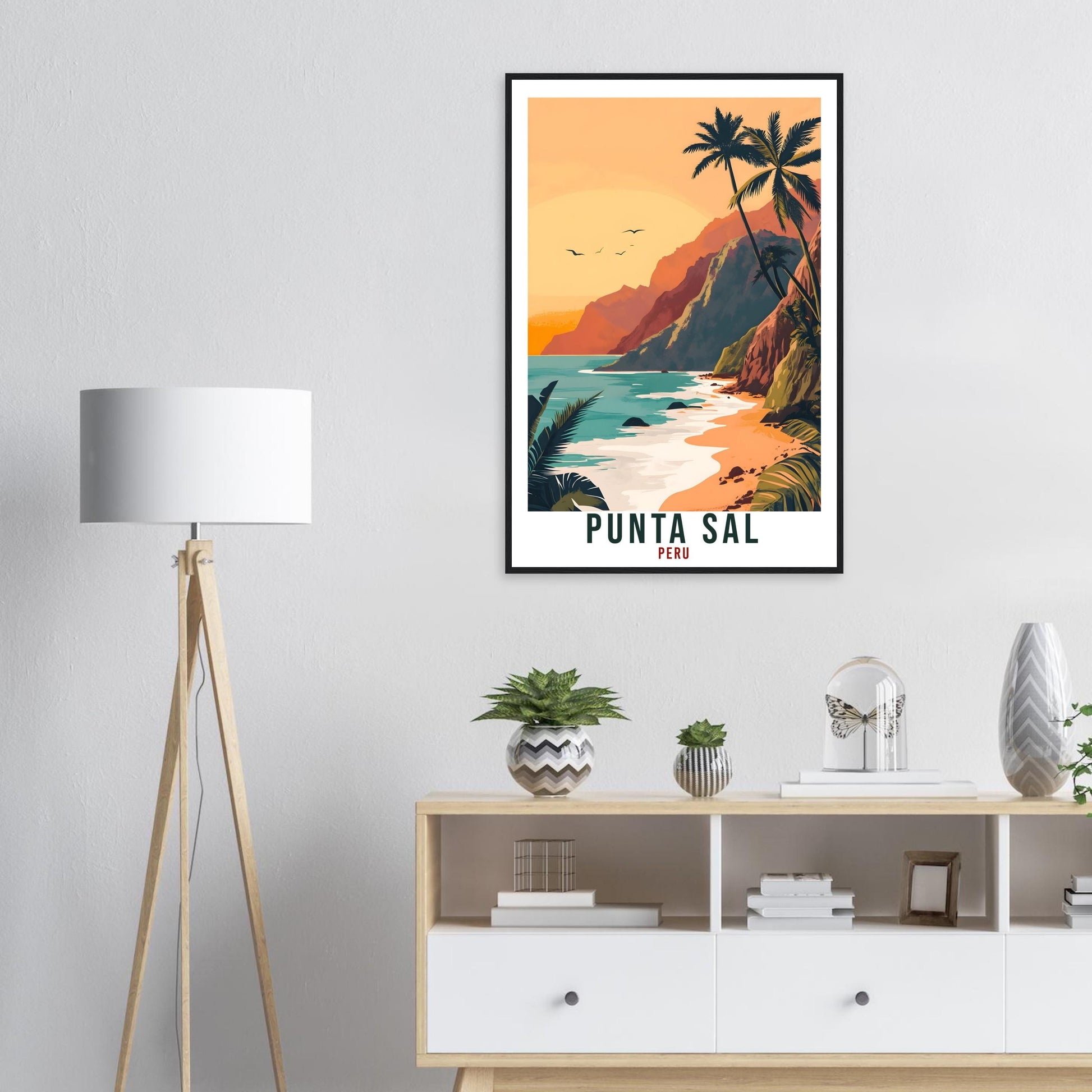Transport yourself back to Punta Sal, Peru. Whether you lived there, visited there or are from there, travel back with this Punta Sal travel poster. Visit the sounds, smells, tastes, colors and culture every time you look at your new travel print. Each design is an imaginative recreation of the area to illicit memories of travelling there.