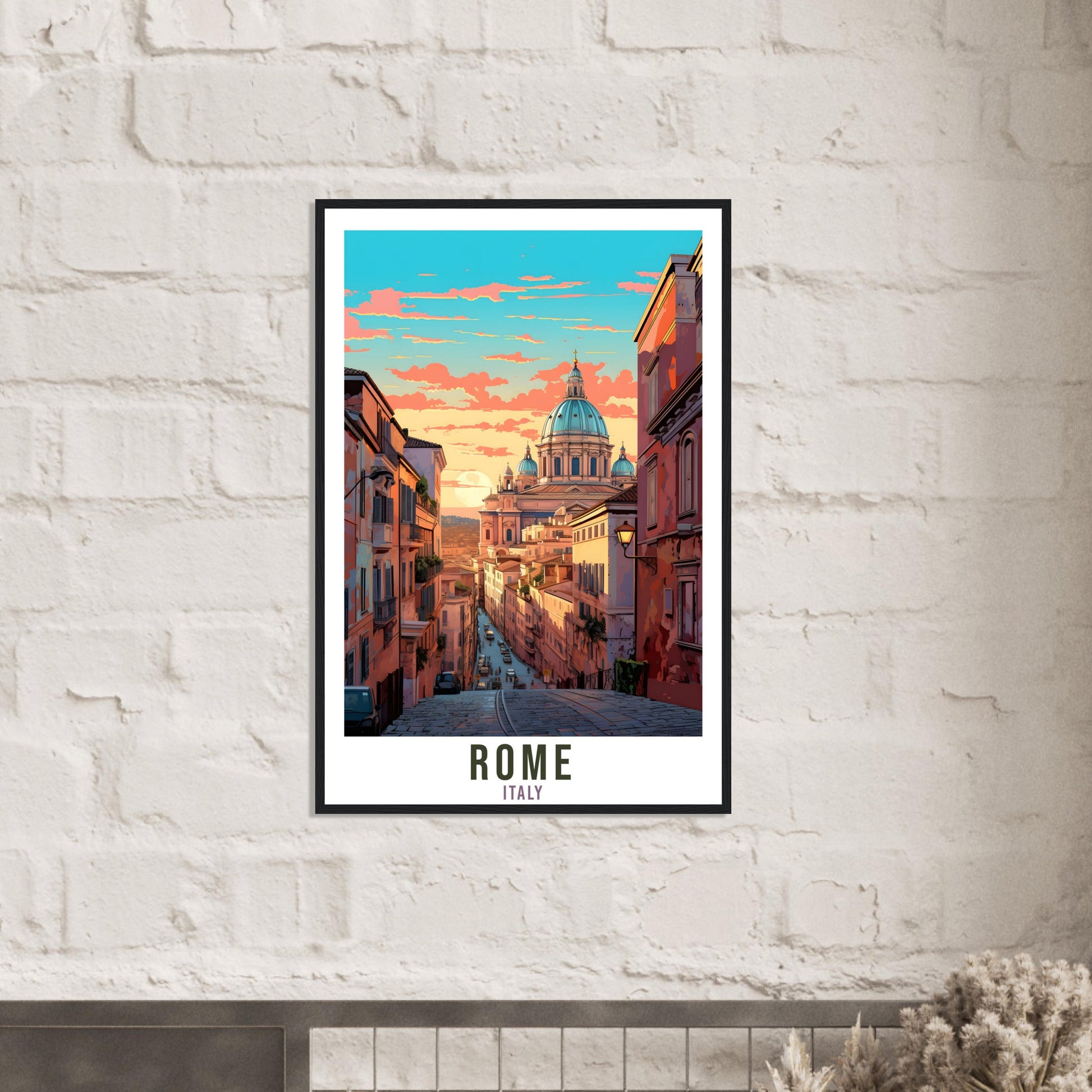 Transport yourself back to Rome, Italy. Whether you lived there, visited there or are from there, travel back with this Rome travel poster. Visit the sounds, smells, tastes, colors and culture every time you look at your new travel print.