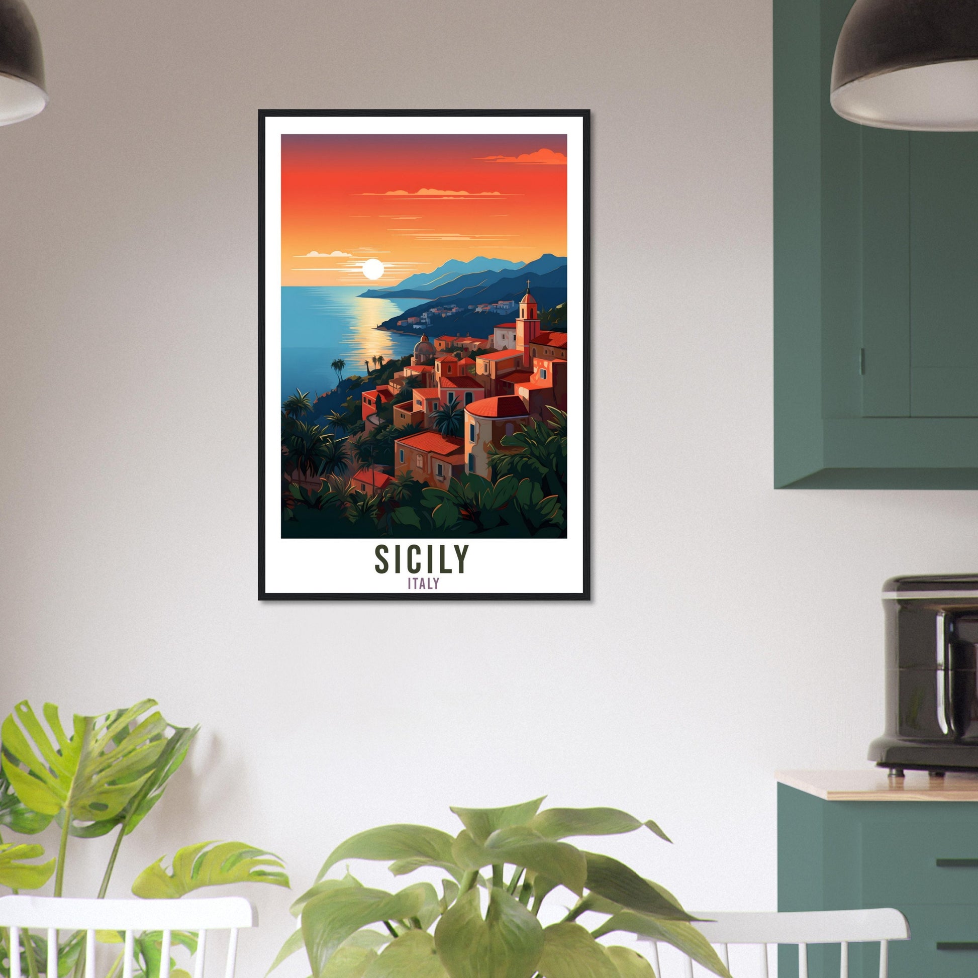 Transport yourself back to Sicily, Italy. Whether you lived there, visited there or are from there, travel back with this Sicily travel poster. Visit the sounds, smells, tastes, colors and culture every time you look at your new travel print.