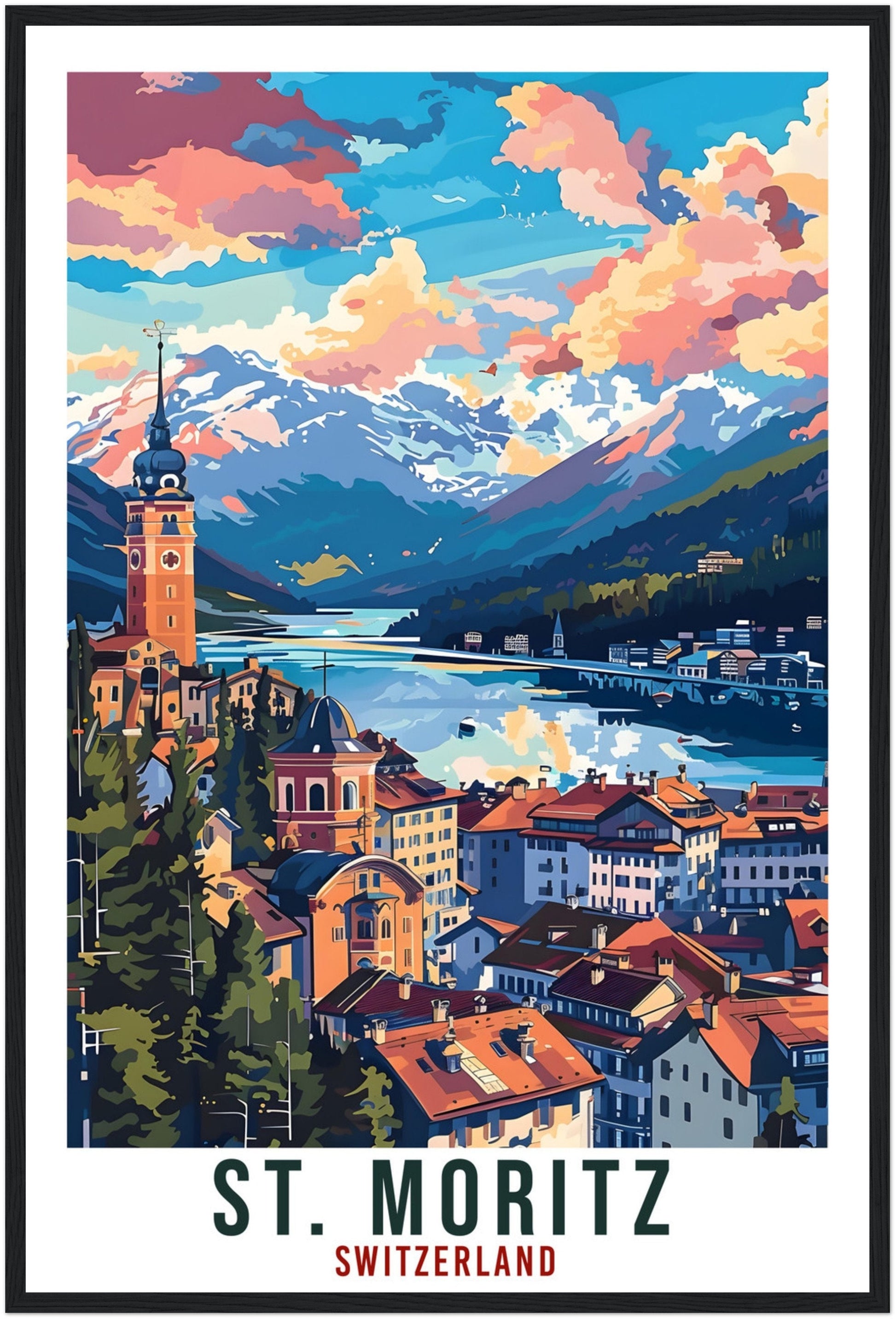 Transport yourself back to St Moritz, Switzerland. Whether you lived there, visited there or are from there, travel back with this St Moritz travel poster. Visit the sounds, smells, tastes, colors and culture every time you look at your new travel print.
