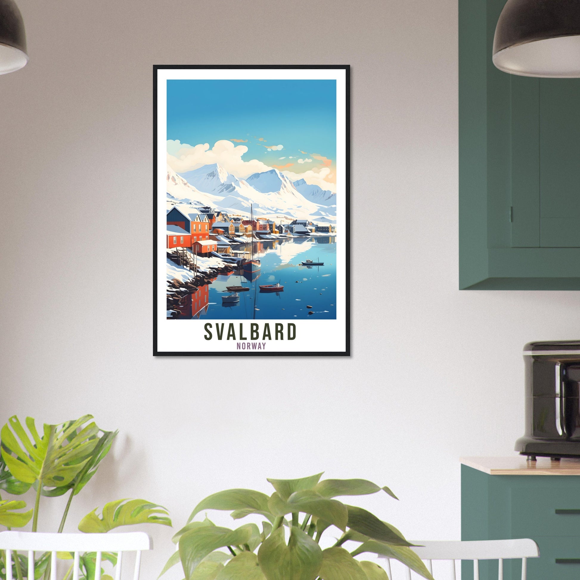 Transport yourself back to Svalbard, Norway. Whether you lived there, visited there or are from there, travel back with this Svalbard travel poster. Visit the sounds, smells, tastes, colors and culture every time you look at your new travel print.