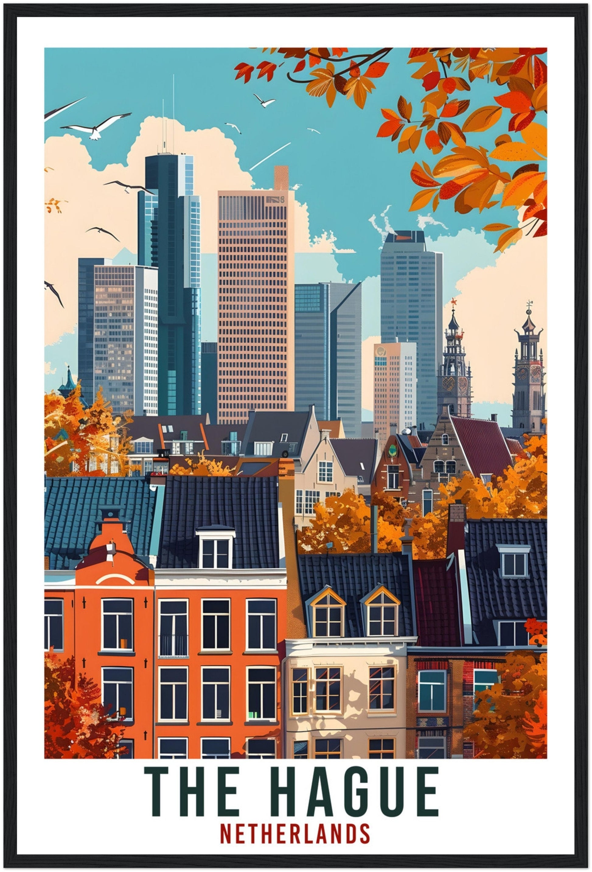 Transport yourself back to The Hague, Netherlands. Whether you lived there, visited there or are from there, travel back with this The Hague travel poster. Visit the sounds, smells, tastes, colors and culture every time you look at your new travel print.